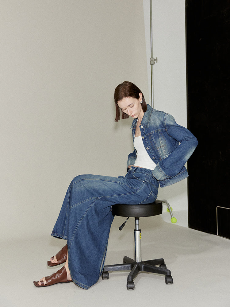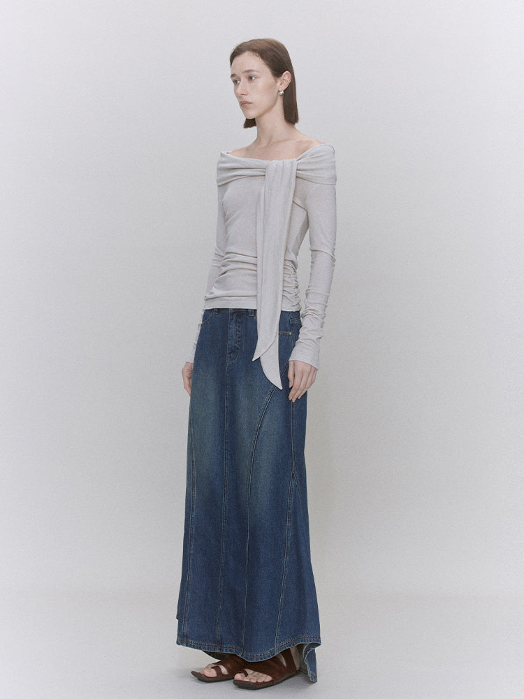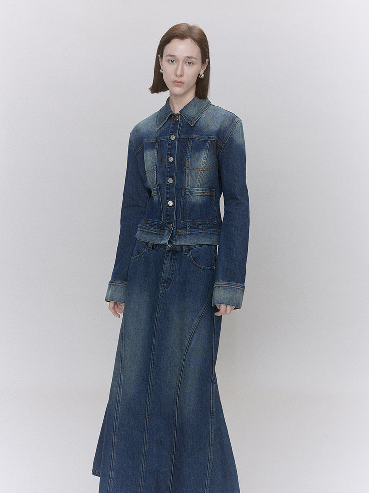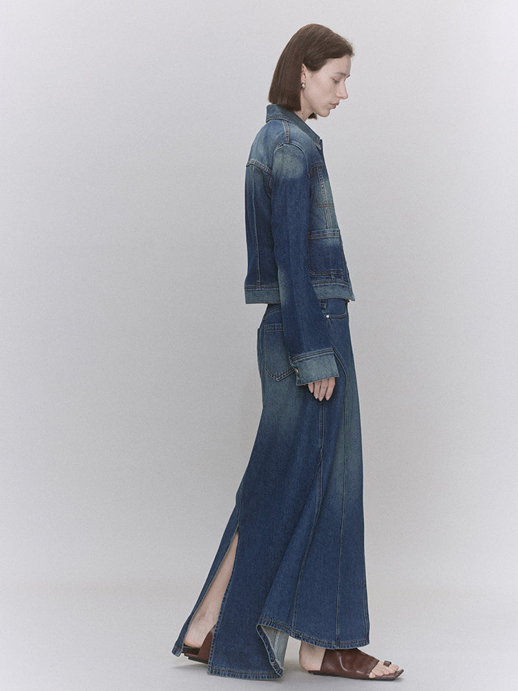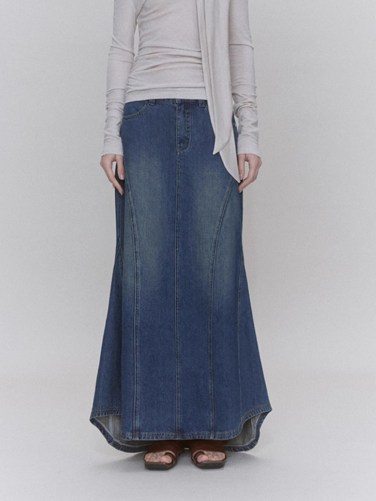 Vintage Denim Side-Slit Distressed Fishtail Skirt