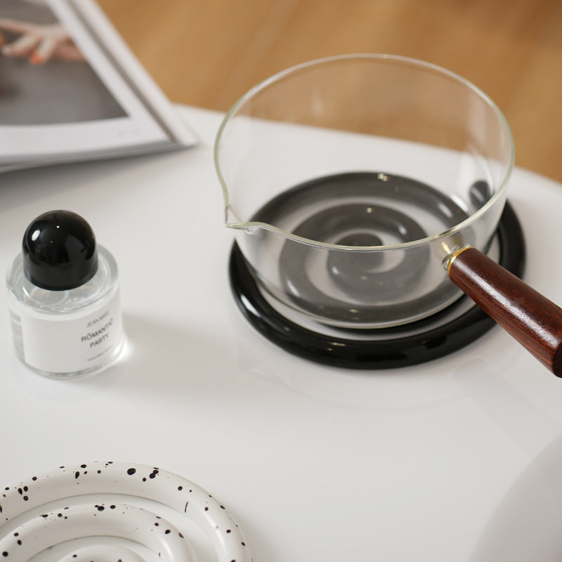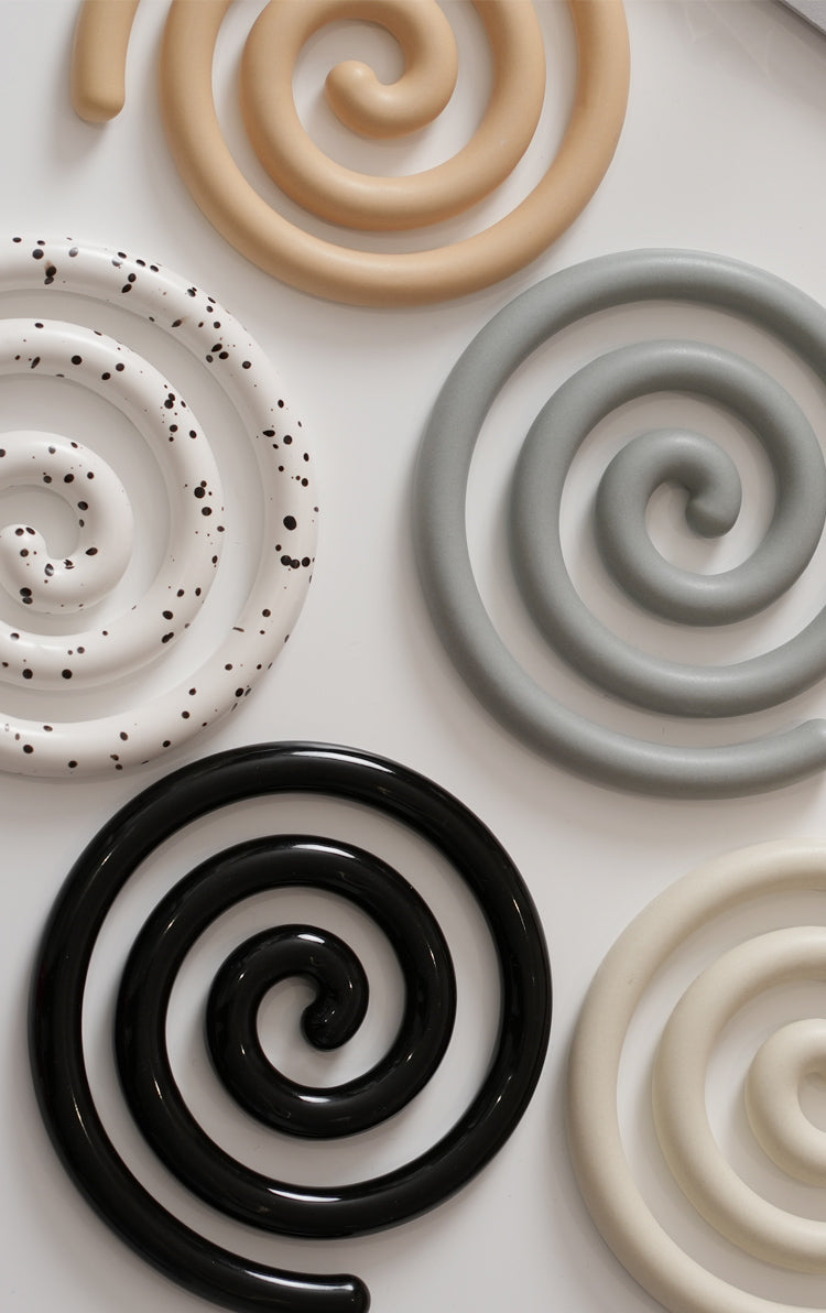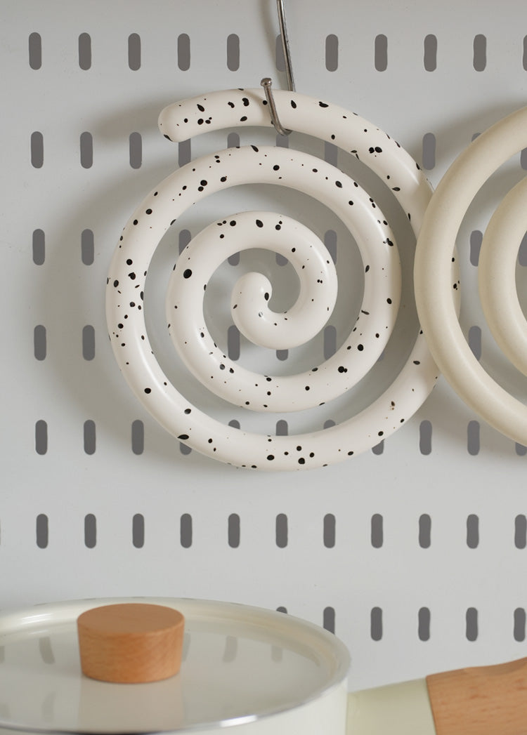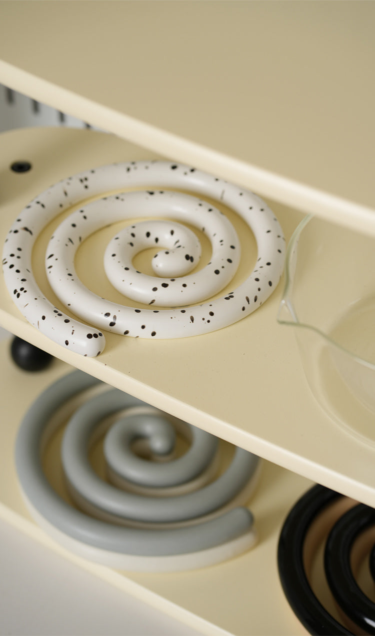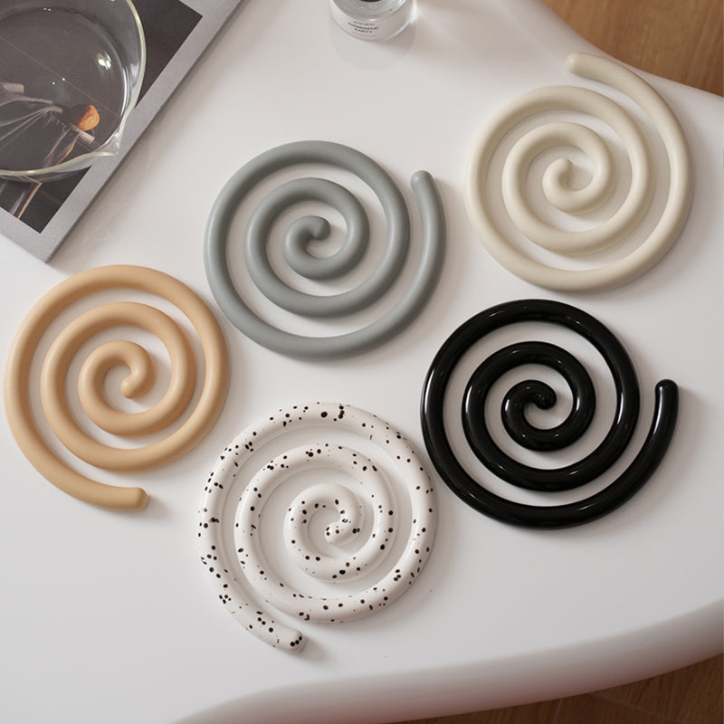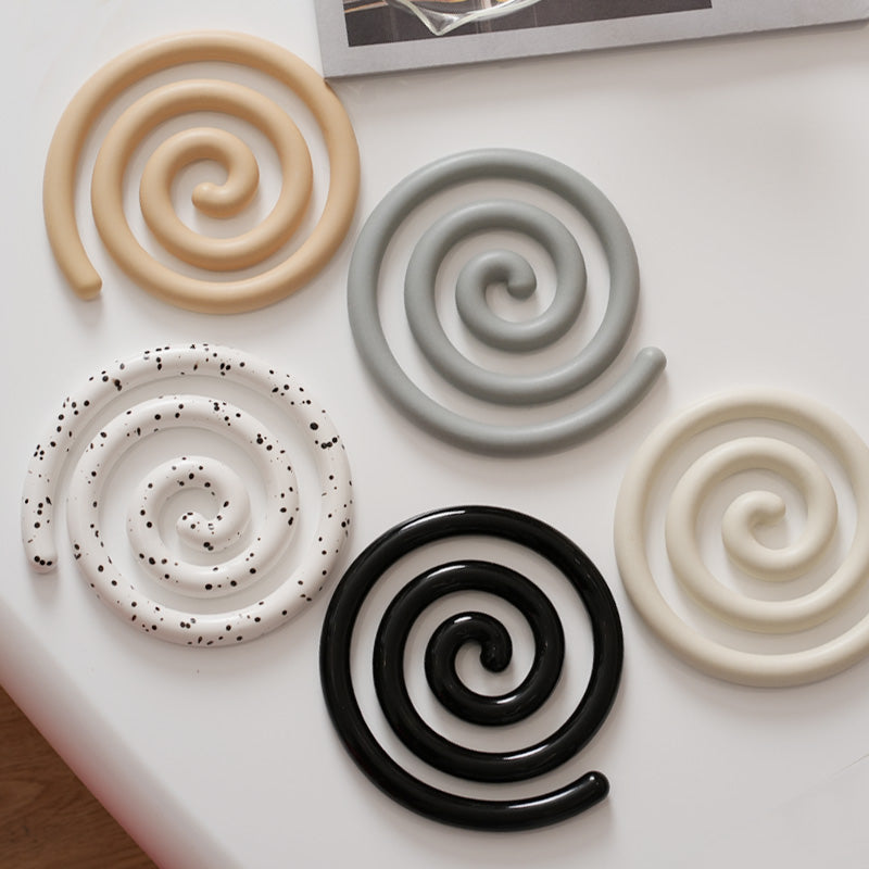 Vortex Ceramic Trivet 은 소용돌이의 자유로운 추상화에서 영감을 받은 독창적인 디자인입니다. 코일 기법으로 꼼꼼하게 수작업으로 제작된 이 세라믹 삼발이는 기능적인 주방 도구이자 예술적인 가정 장식 역할을 합니다. 미니멀한 우아함은 조리대를 보호할 뿐만 아니라 예술적인 표현이기도 합니다. 곰팡이에 강하고 청소가 쉬우며 스타일과 실용성이 결합되어 주방에서 기능성과 미학의 융합을 높이 평가하는 사람들에게 완벽한 선물이 됩니다.