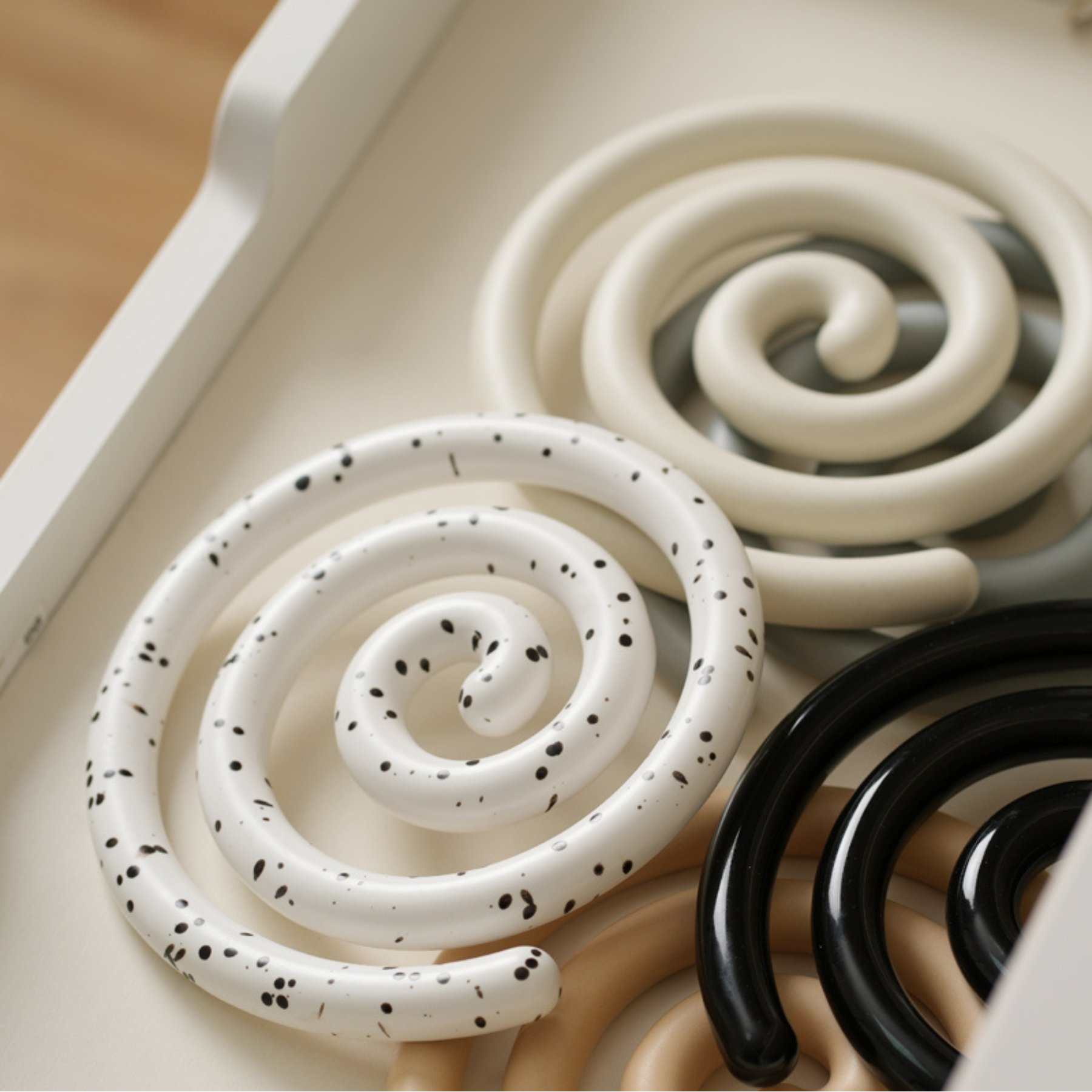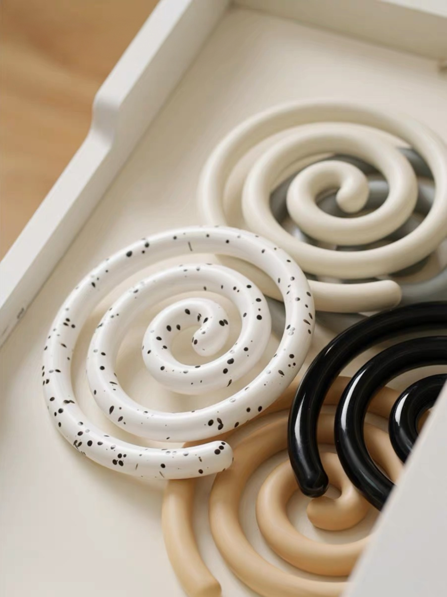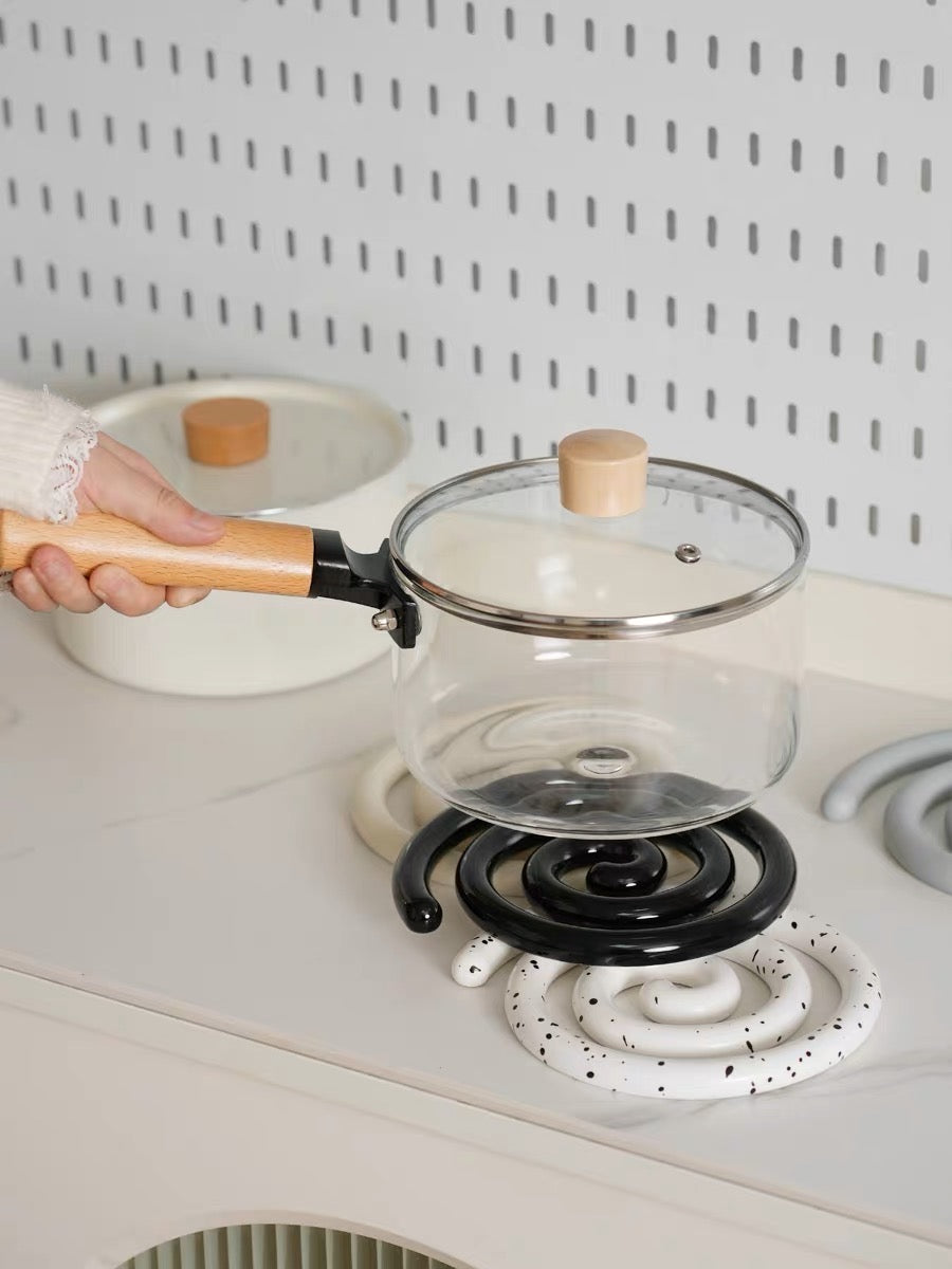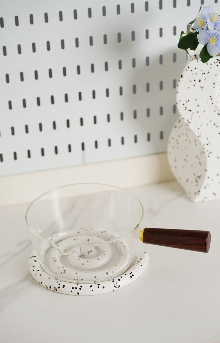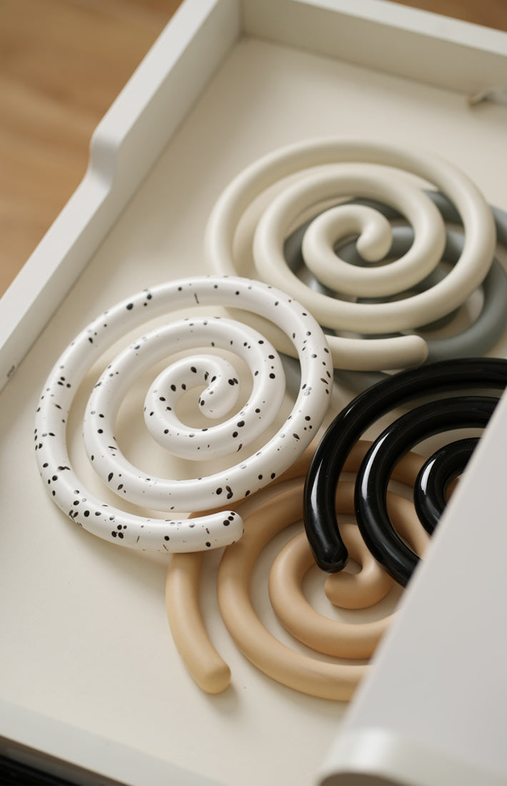 Vortex Ceramic Trivet 은 소용돌이의 자유로운 추상화에서 영감을 받은 독창적인 디자인입니다. 코일 기법으로 꼼꼼하게 수작업으로 제작된 이 세라믹 삼발이는 기능적인 주방 도구이자 예술적인 가정 장식 역할을 합니다. 미니멀한 우아함은 조리대를 보호할 뿐만 아니라 예술적인 표현이기도 합니다. 곰팡이에 강하고 청소가 쉬우며 스타일과 실용성이 결합되어 주방에서 기능성과 미학의 융합을 높이 평가하는 사람들에게 완벽한 선물이 됩니다.