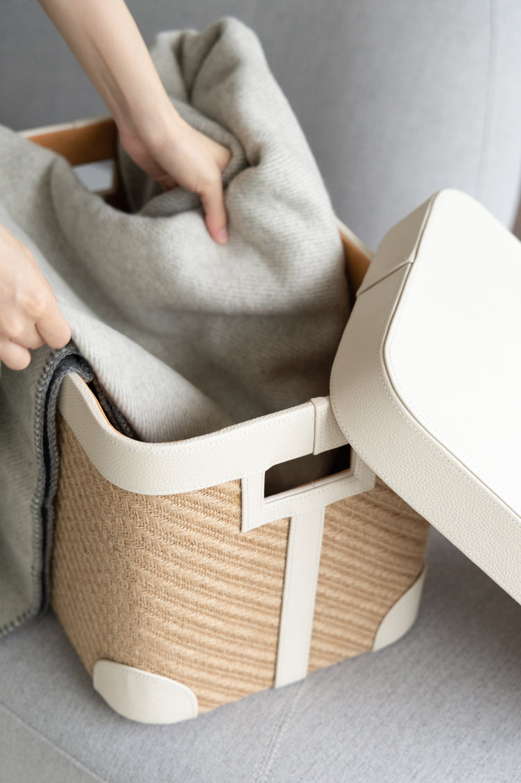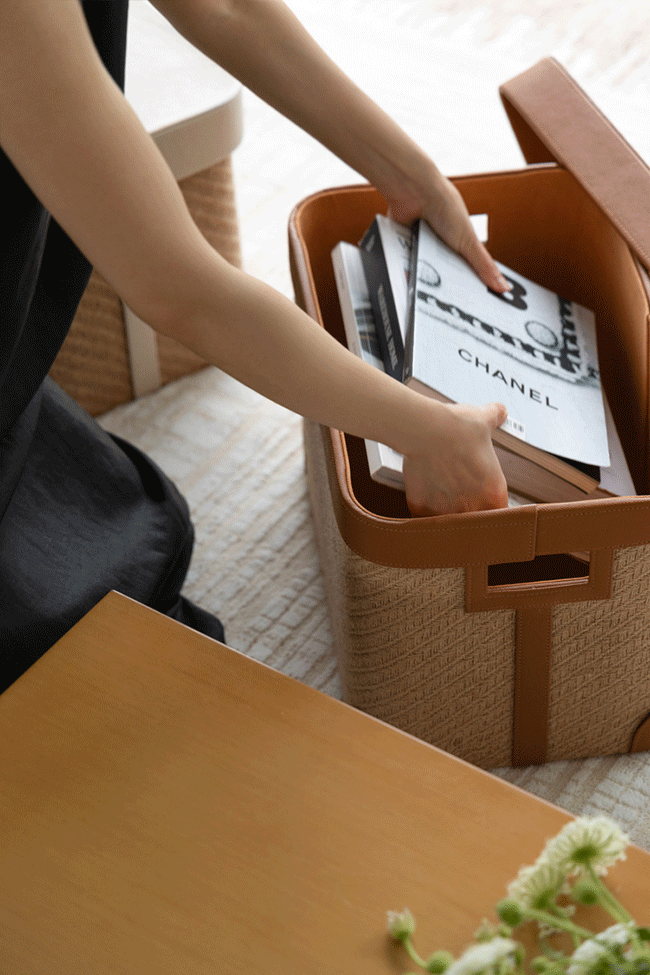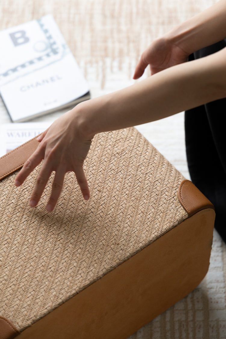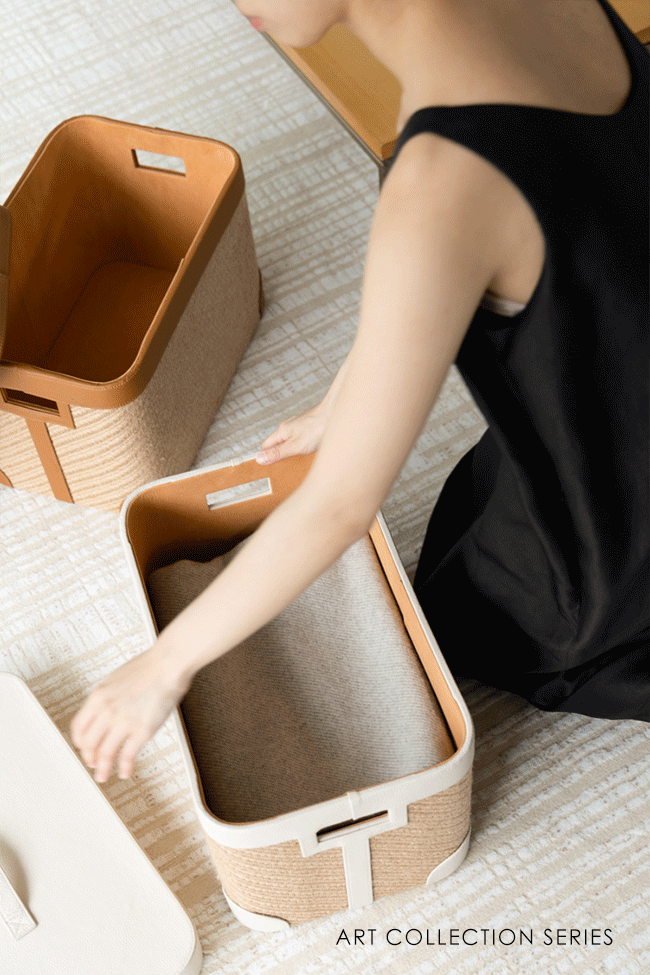 이탈리아 고급 가죽과 천연 노란색 대마를 결합하여 작업실의 예술성을 경험해 보세요. 각 작품은 3차원 디자인으로 꼼꼼하게 손으로 엮어 제작되어 복잡한 장인정신과 디테일에 대한 관심을 보여줍니다.