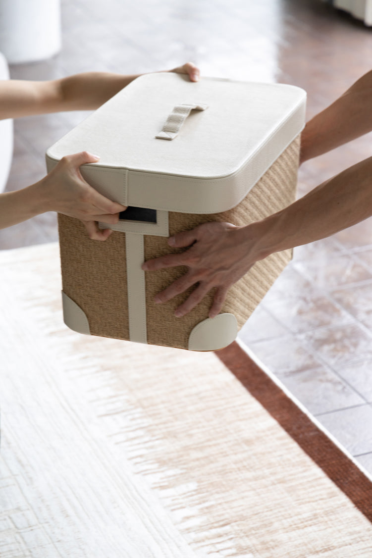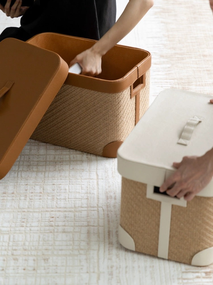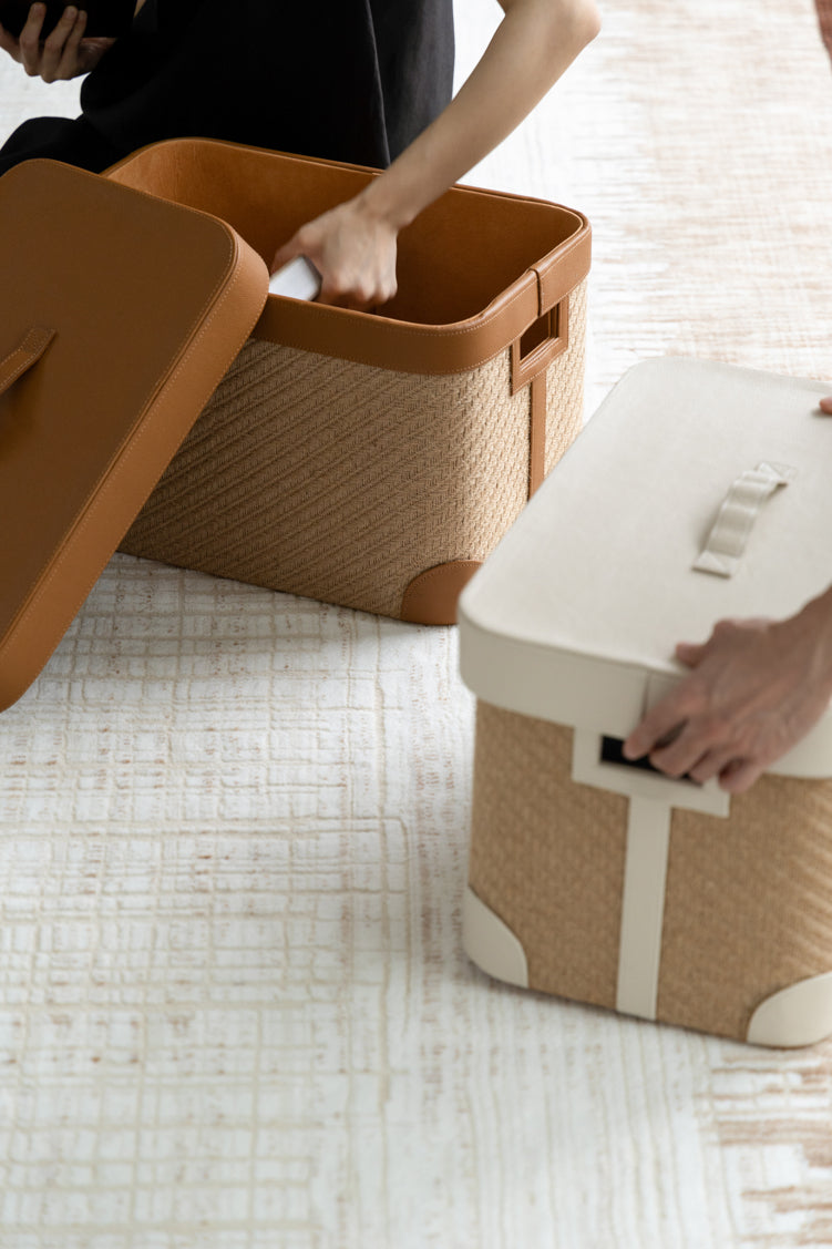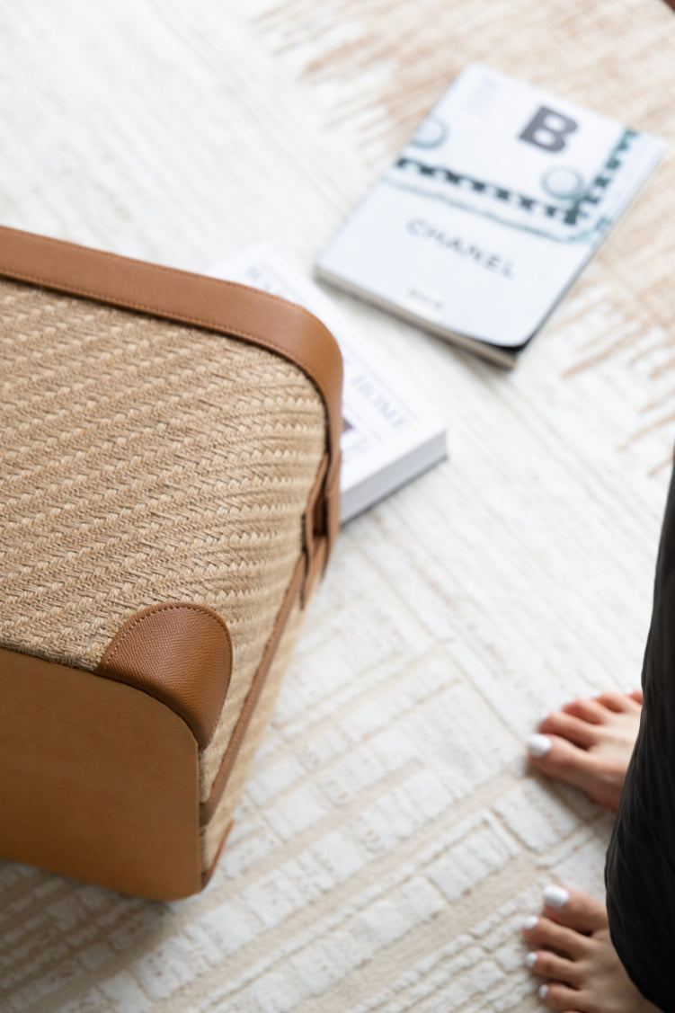 이탈리아 고급 가죽과 천연 노란색 대마를 결합하여 작업실의 예술성을 경험해 보세요. 각 작품은 3차원 디자인으로 꼼꼼하게 손으로 엮어 제작되어 복잡한 장인정신과 디테일에 대한 관심을 보여줍니다.