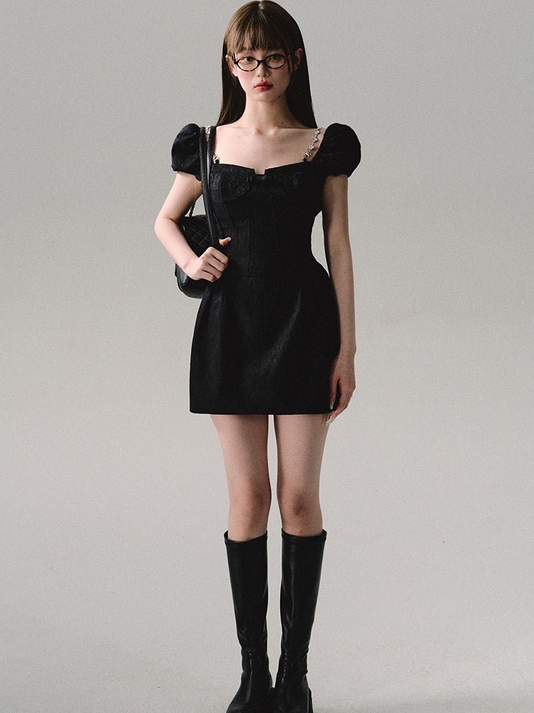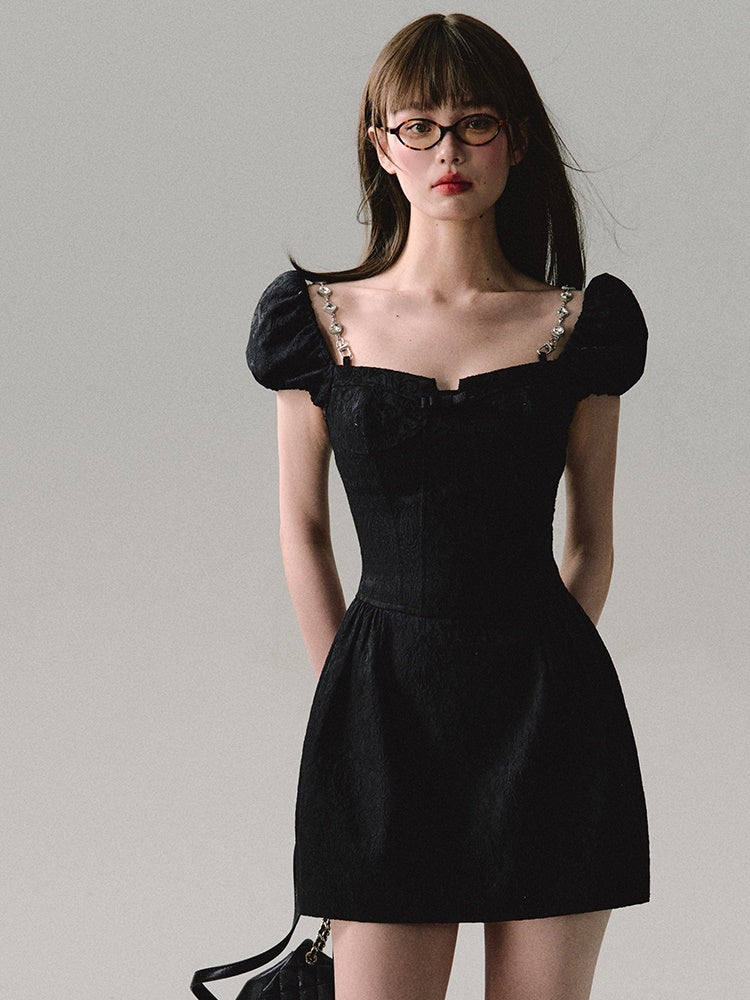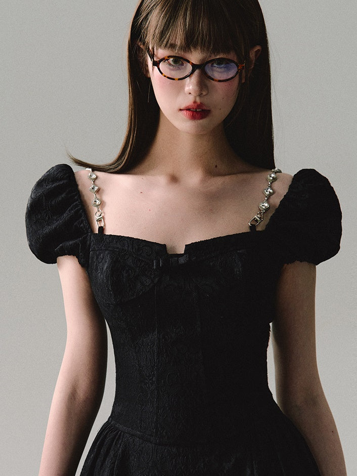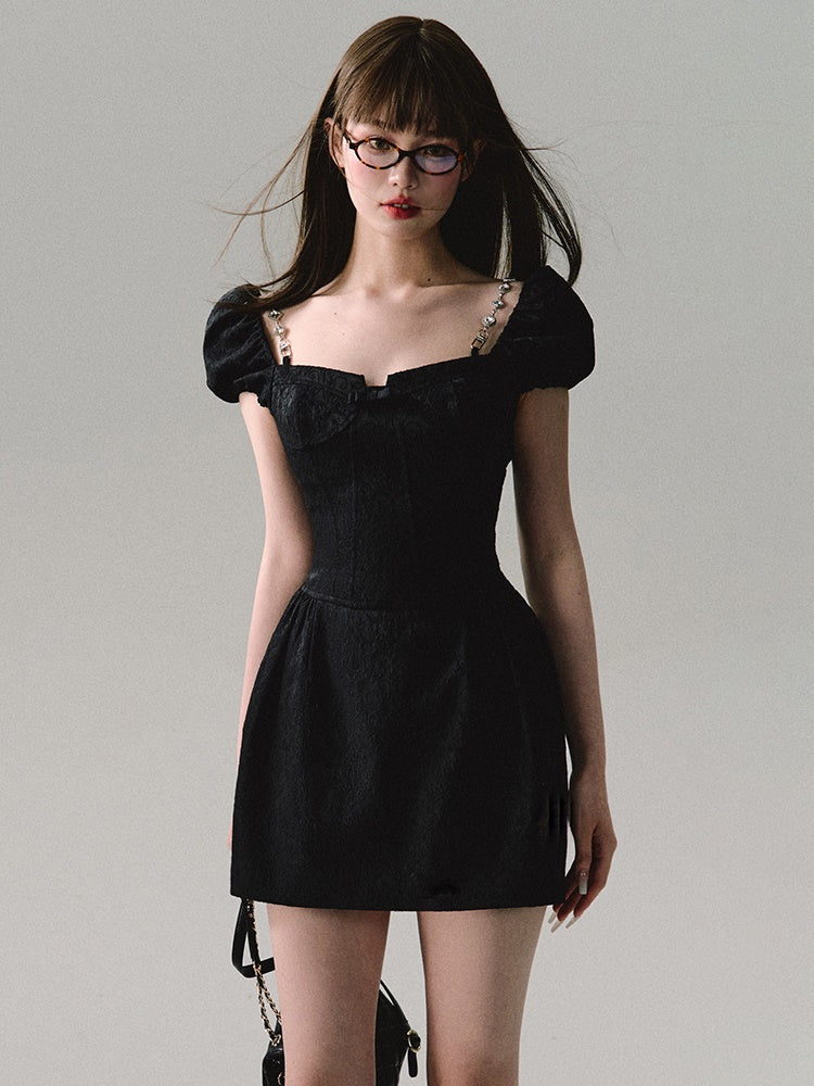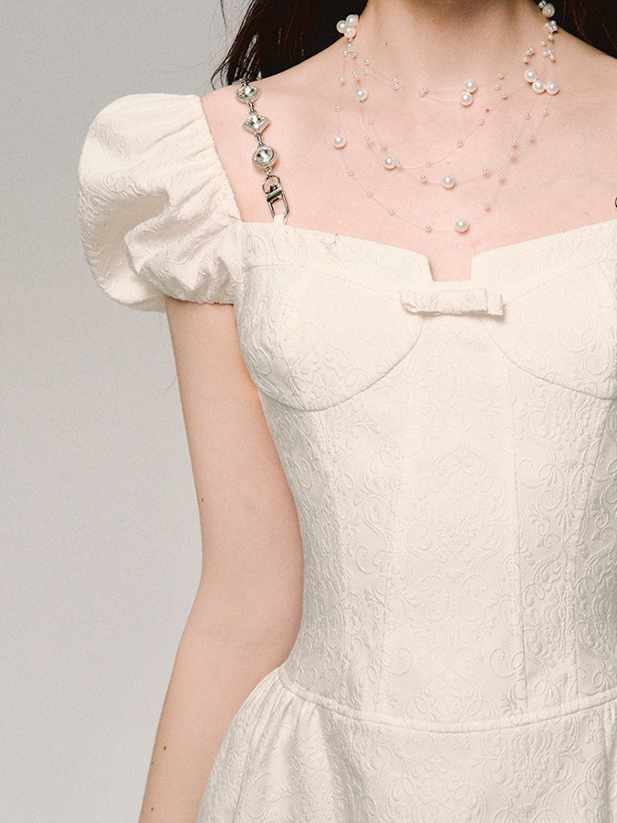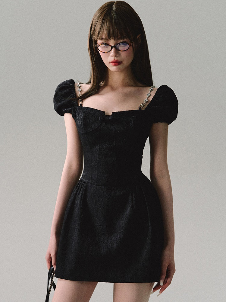 2Type Puff-Sleeve Girly Embroidery Bijou One-Piece