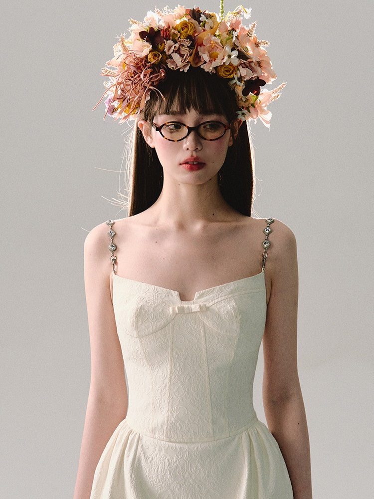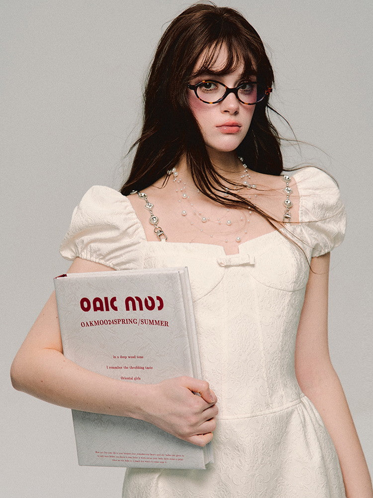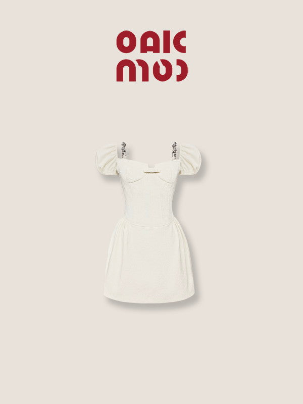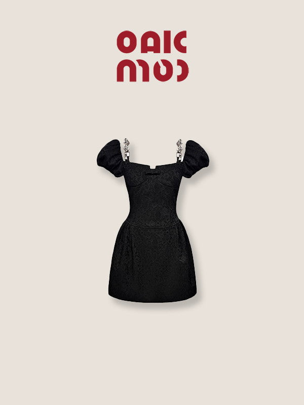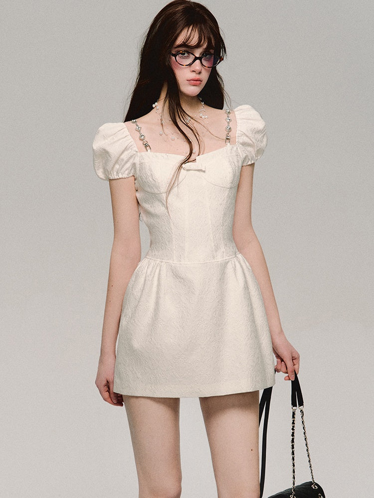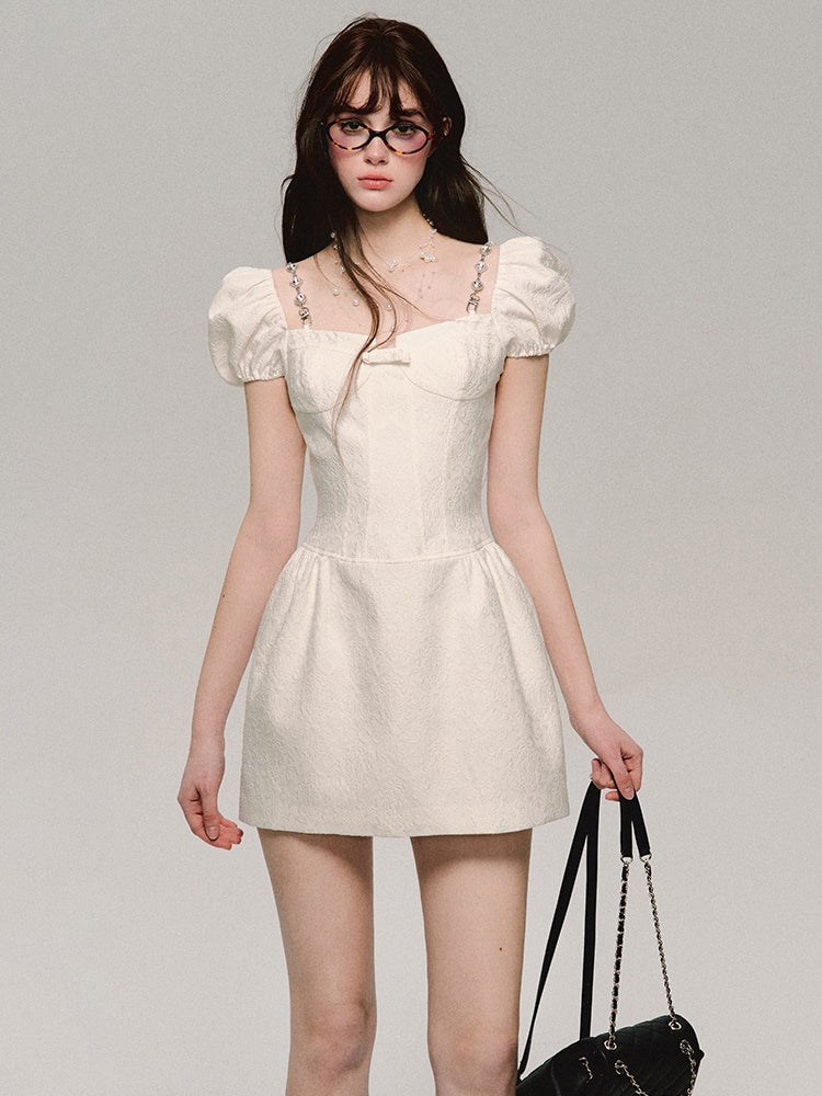 2Type Puff-Sleeve Girly Embroidery Bijou One-Piece