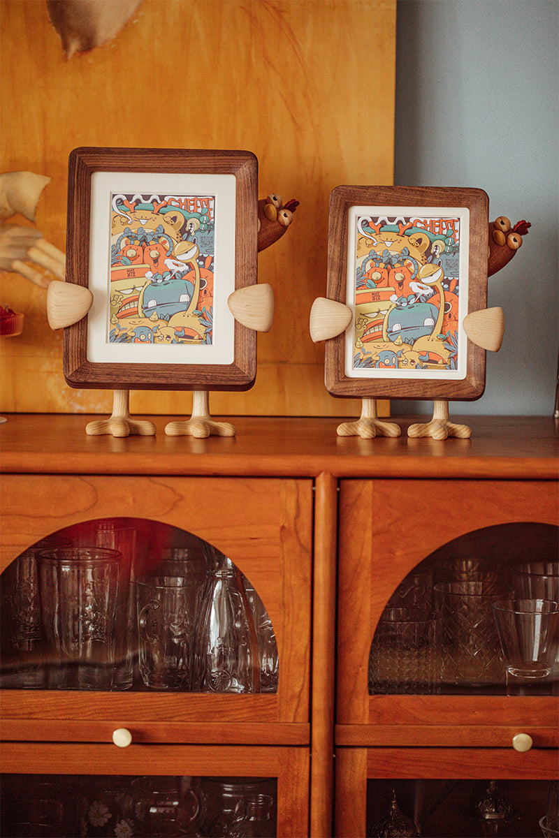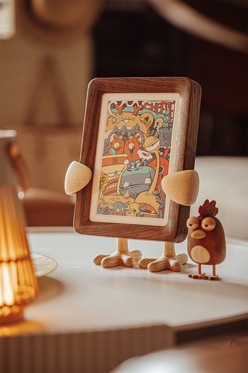 Introducing "EcoChick Snap", a delightful and original decorative chicken clutching a photo frame. Designed to capture hearts and encapsulate memories, this piece not only enriches your decor but also supports a sustainable world. Crafted exclusively from woods bearing the FSC (Forest Stewardship Council) certification, you're investing in a product with ecological responsibility at its core. As a testament to its safety, EcoChick Snap's formaldehyde content is <0.1, adhering to the European Union DIN EN71 standard, meaning its formaldehyde release is virtually zero. We passionately explore the language of traditional craftsmanship in modern aesthetics, and we're enamored by natural materials and the dedication of artisanal workmanship. With EcoChick Snap, we hope to offer a small starting point that brings heartwarming and well-designed touches to everyday living.
