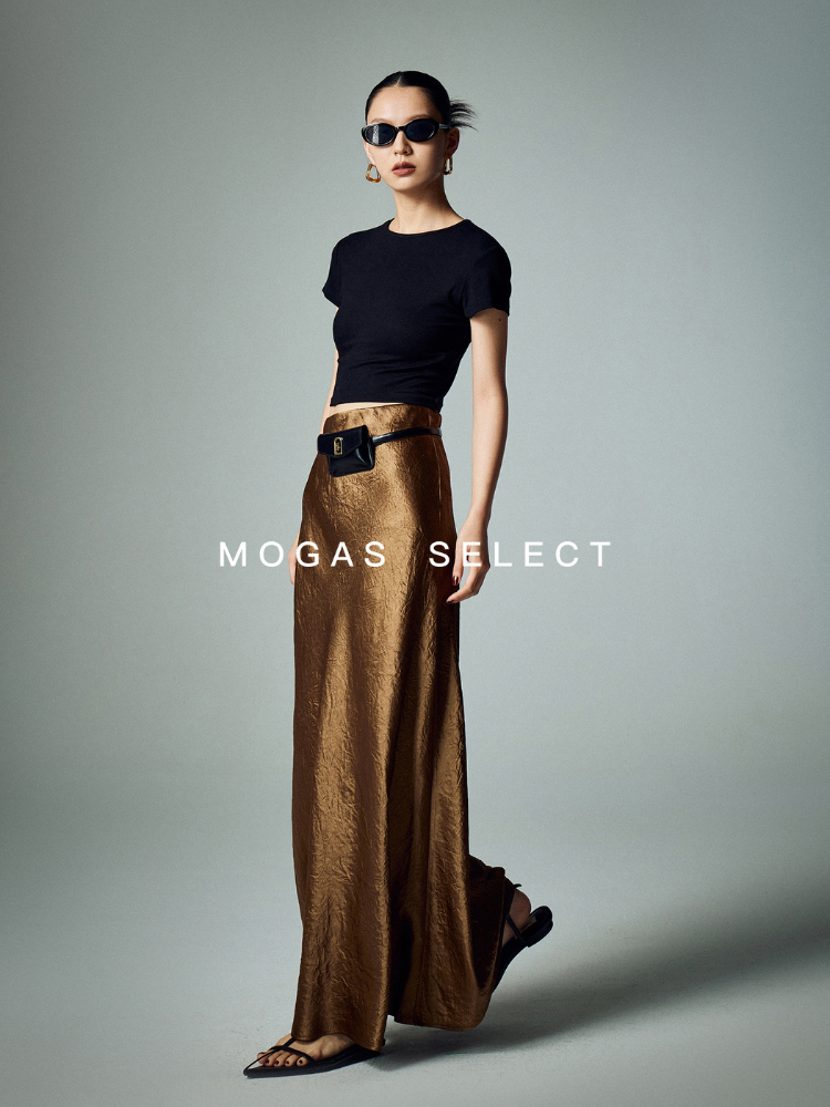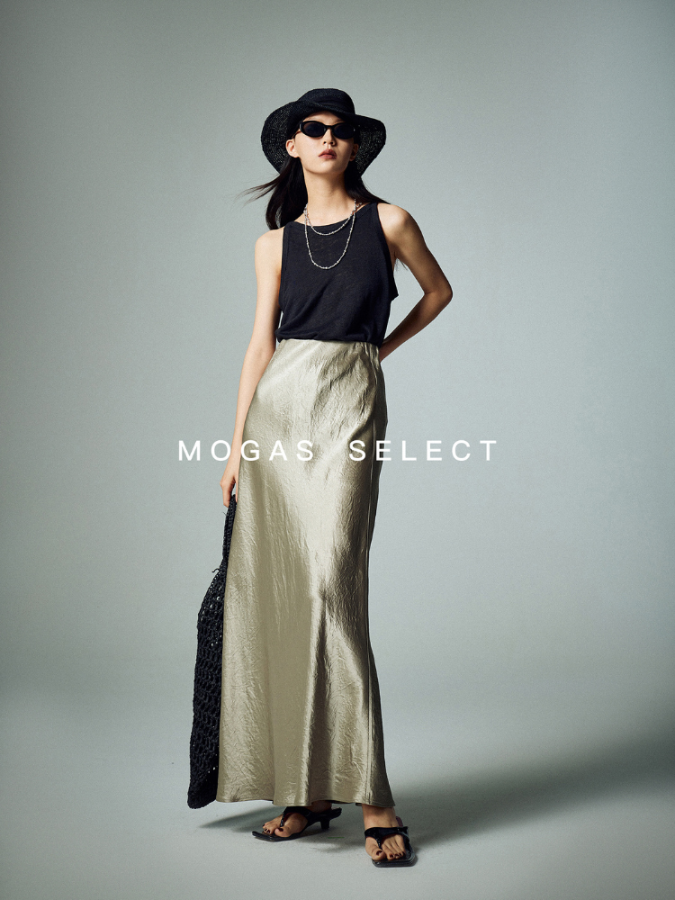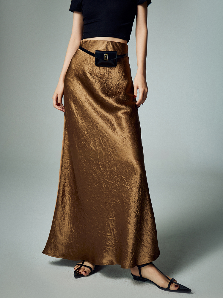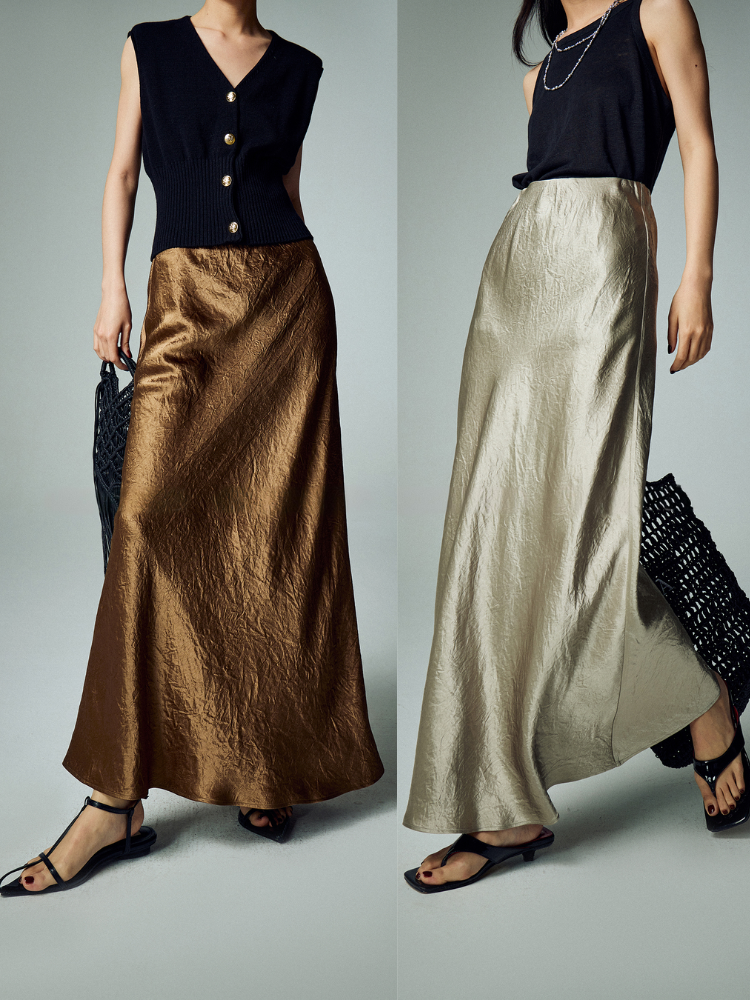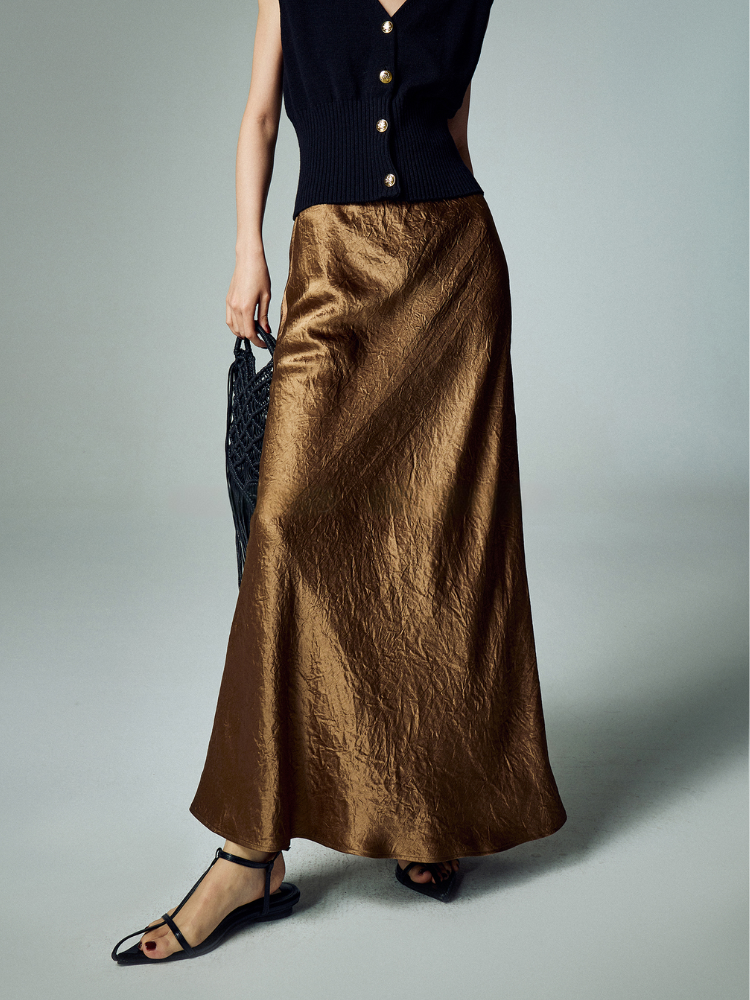 Acetate Bias Cut Elastic Waist Maxi Skirt