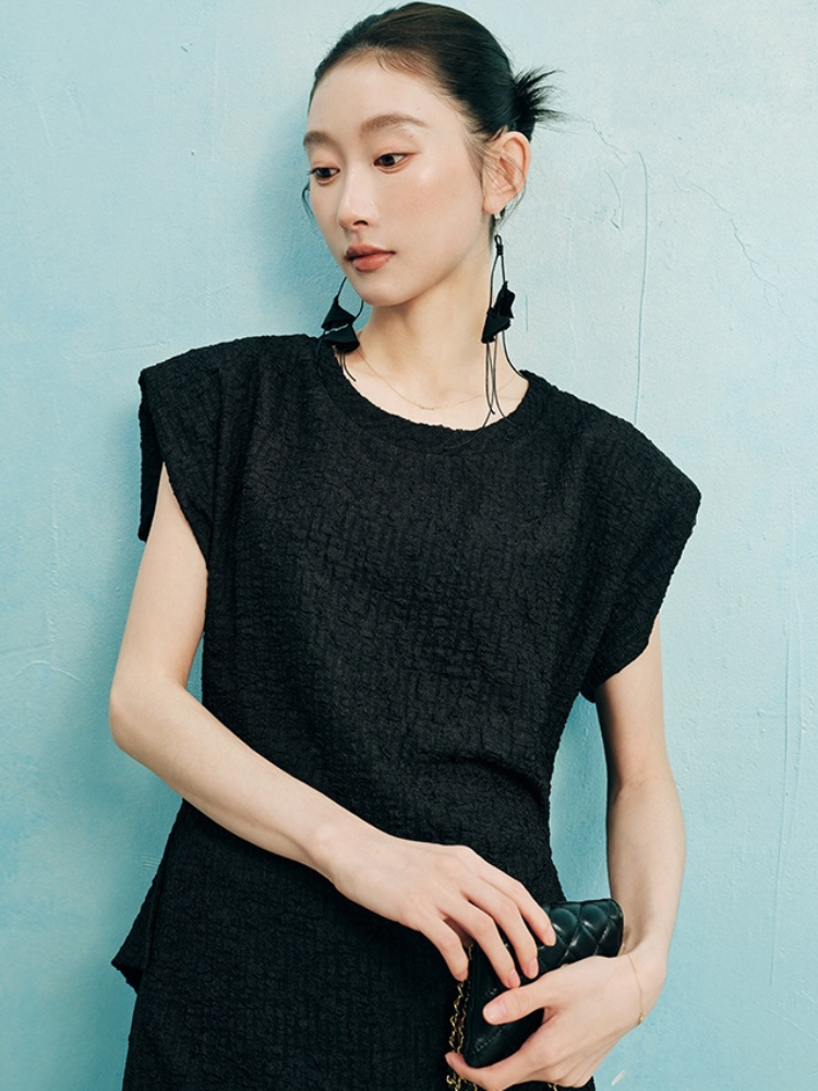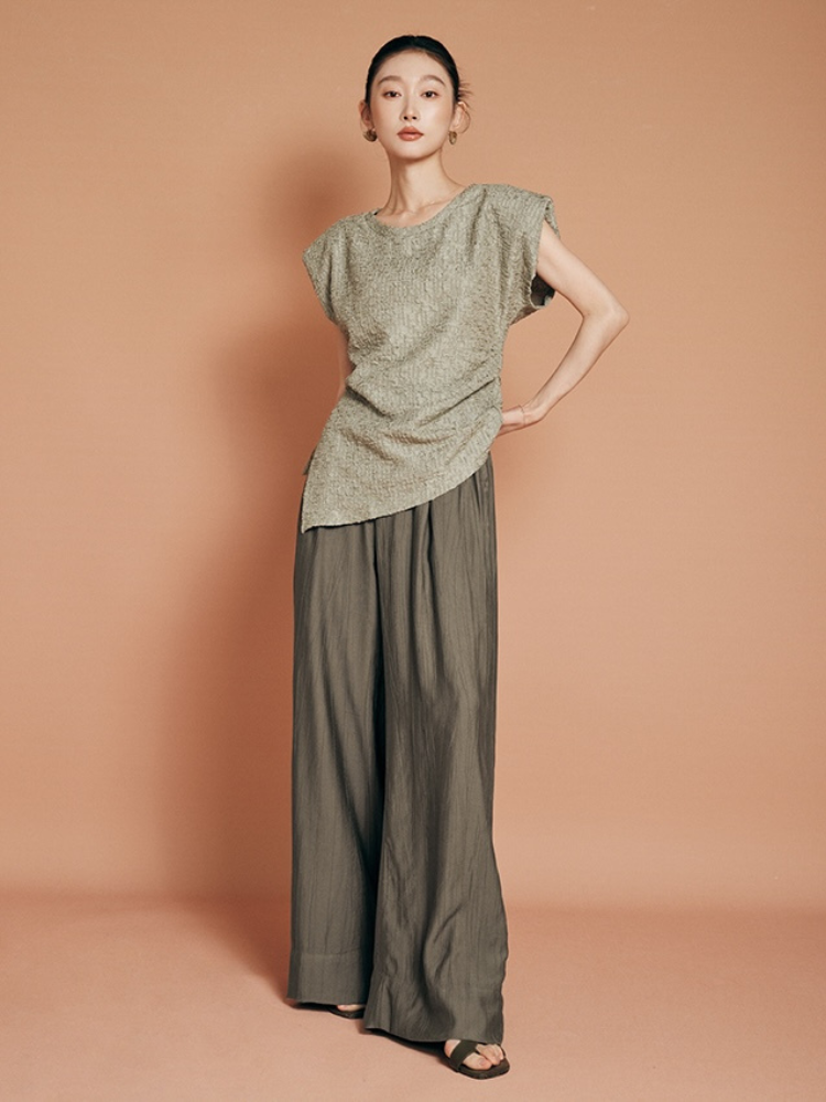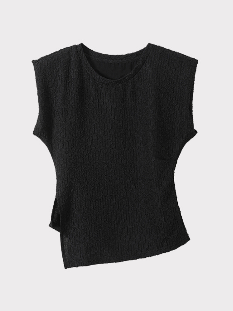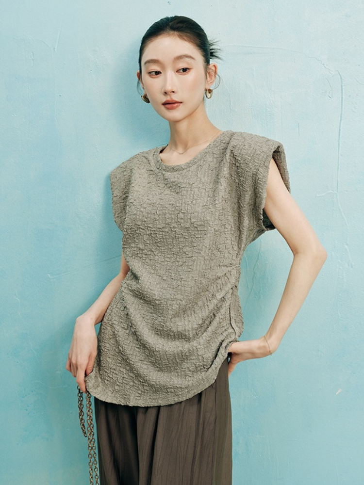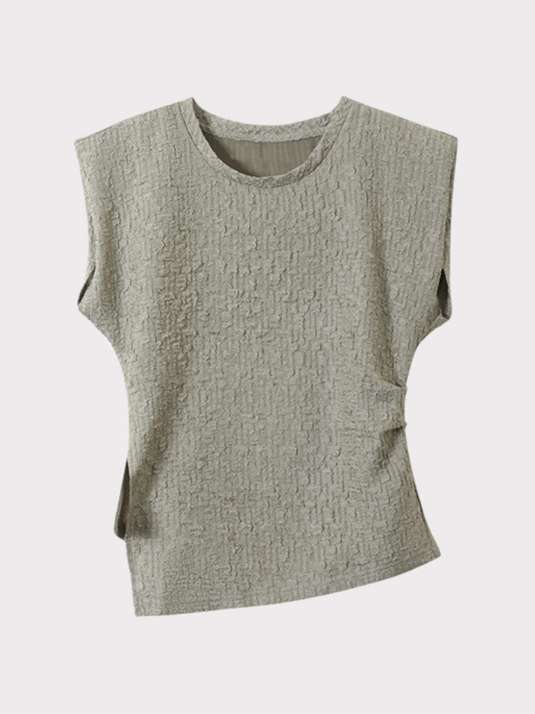 Asymmetrical Shoulder Ruched Textured Short Sleeve T-Shirt