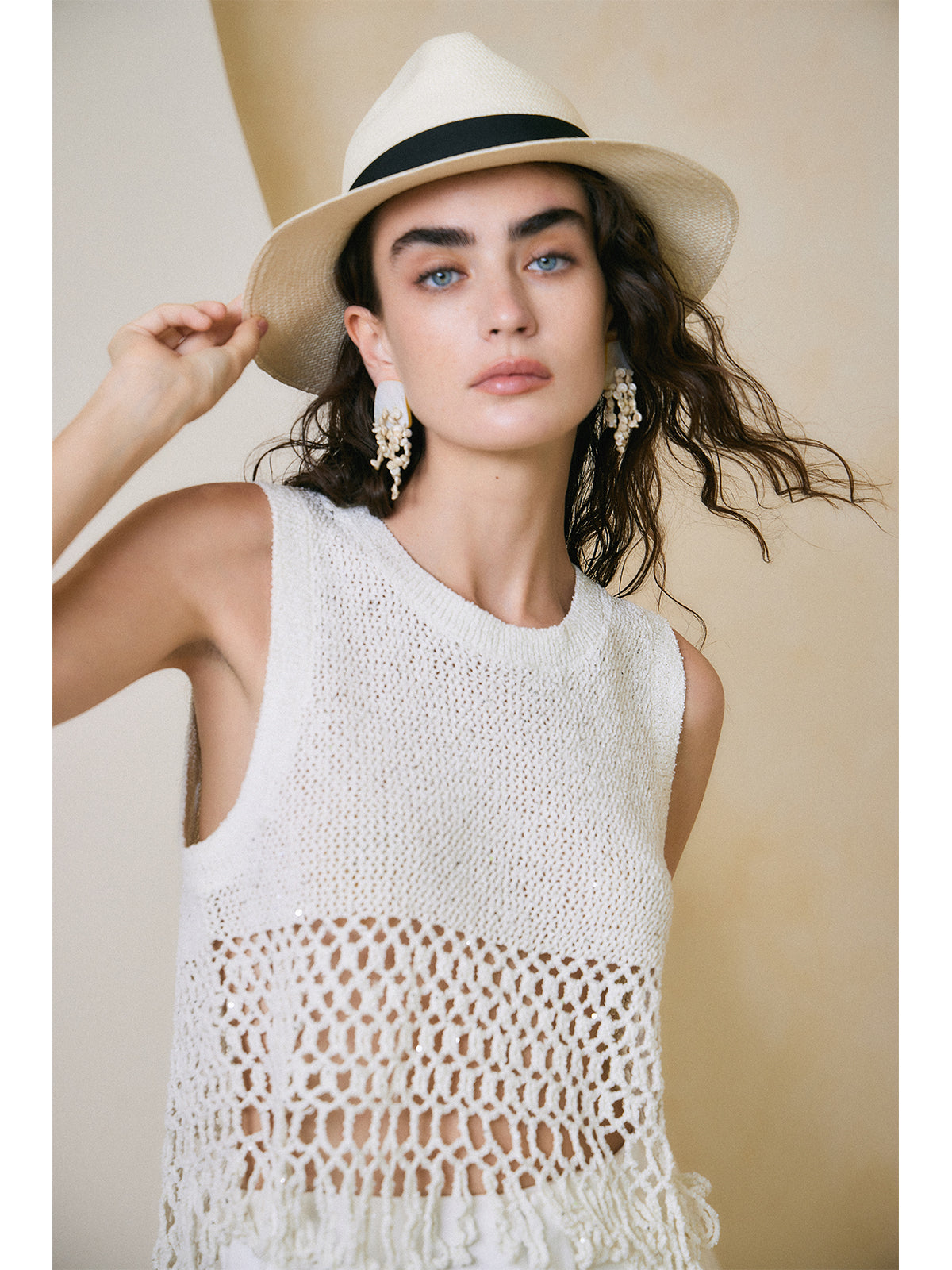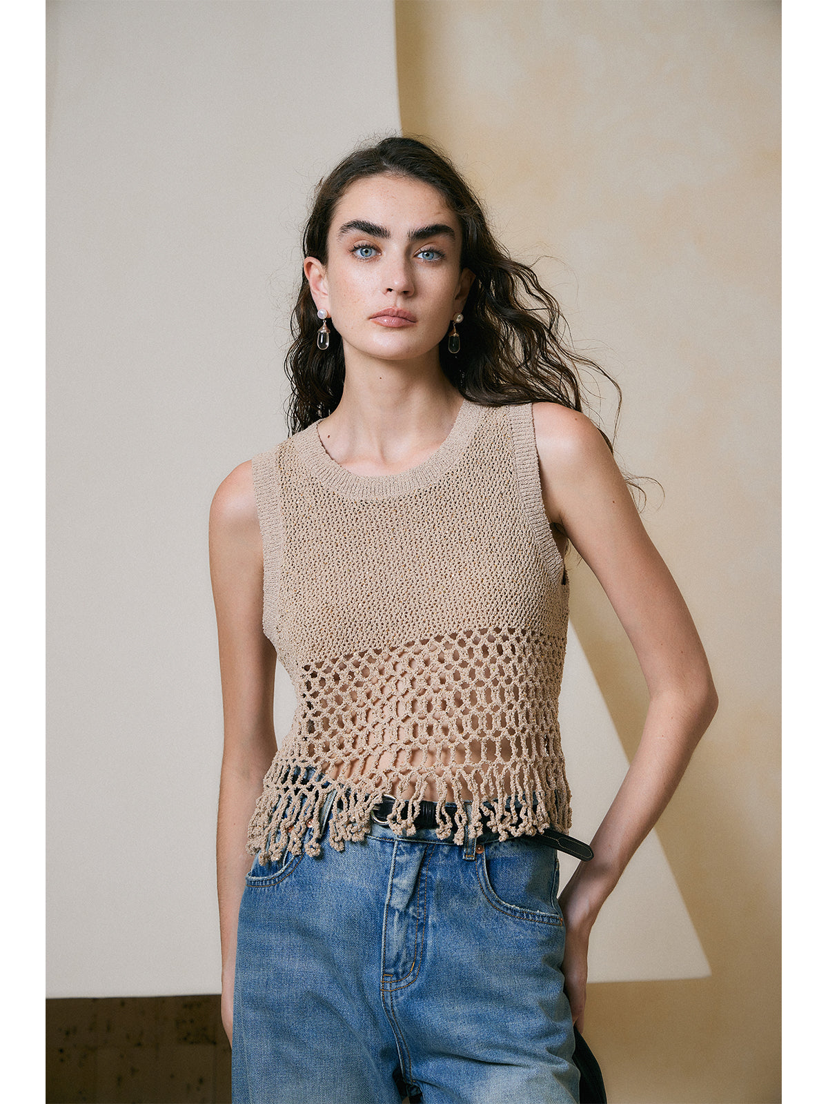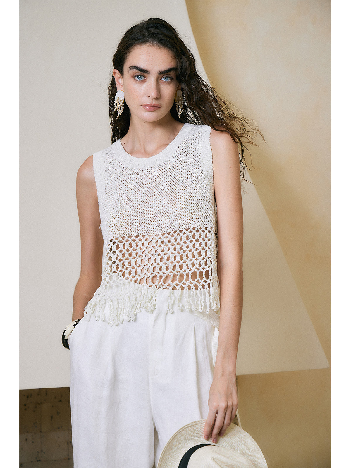Breathable Linen Cotton Sequin Fringe Top