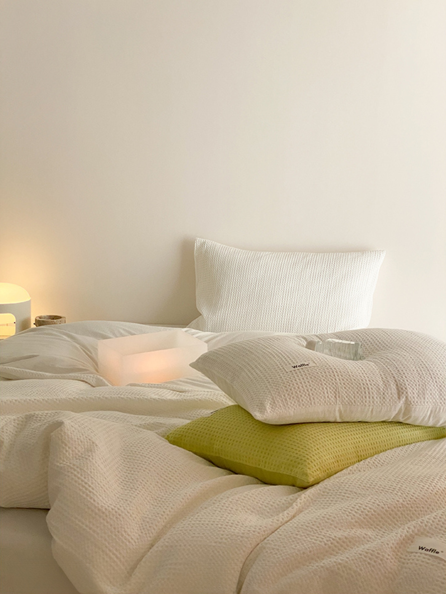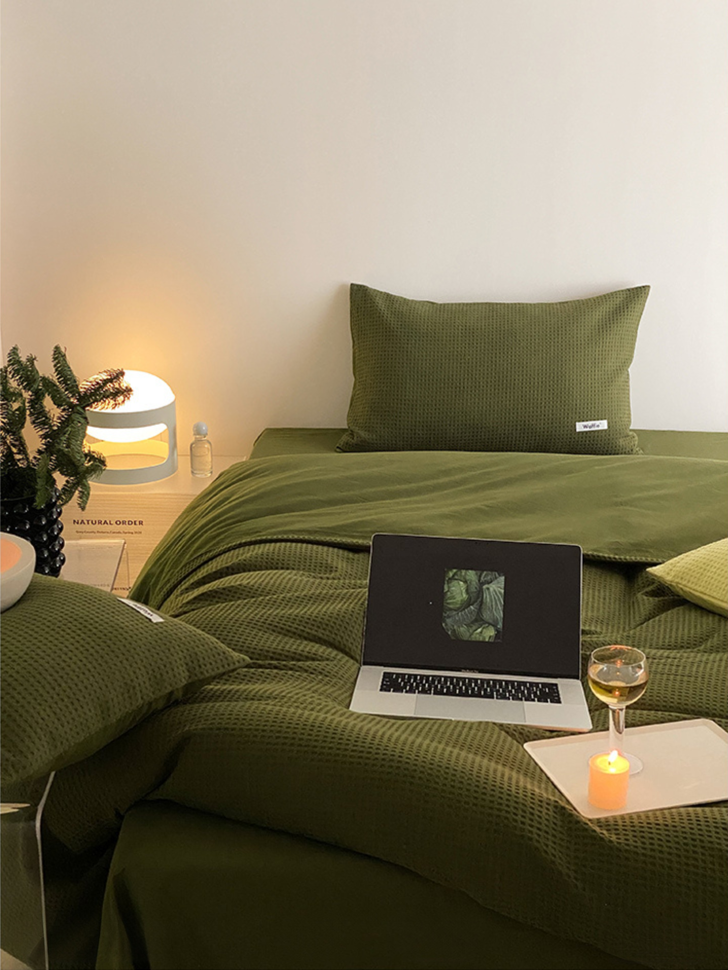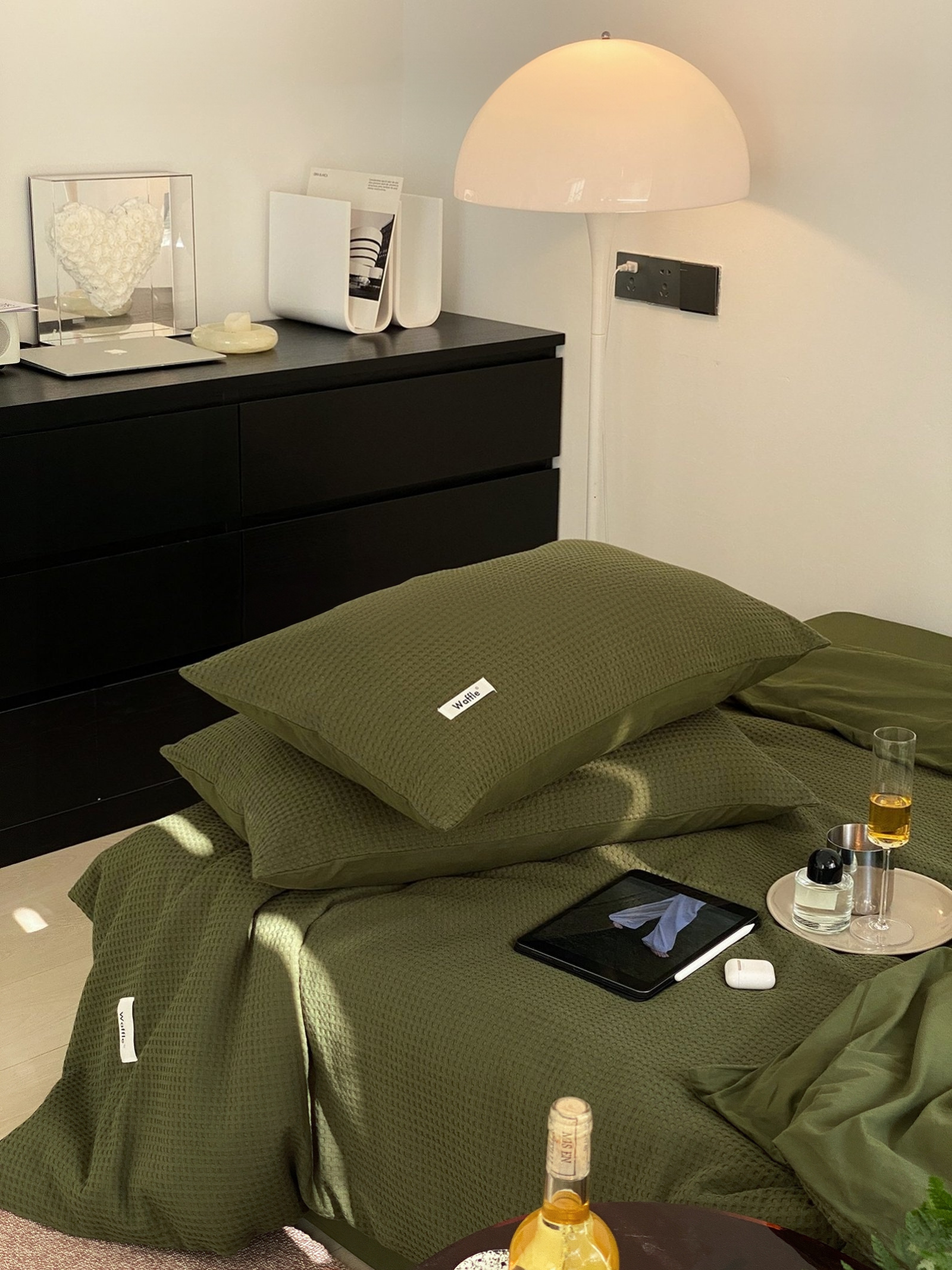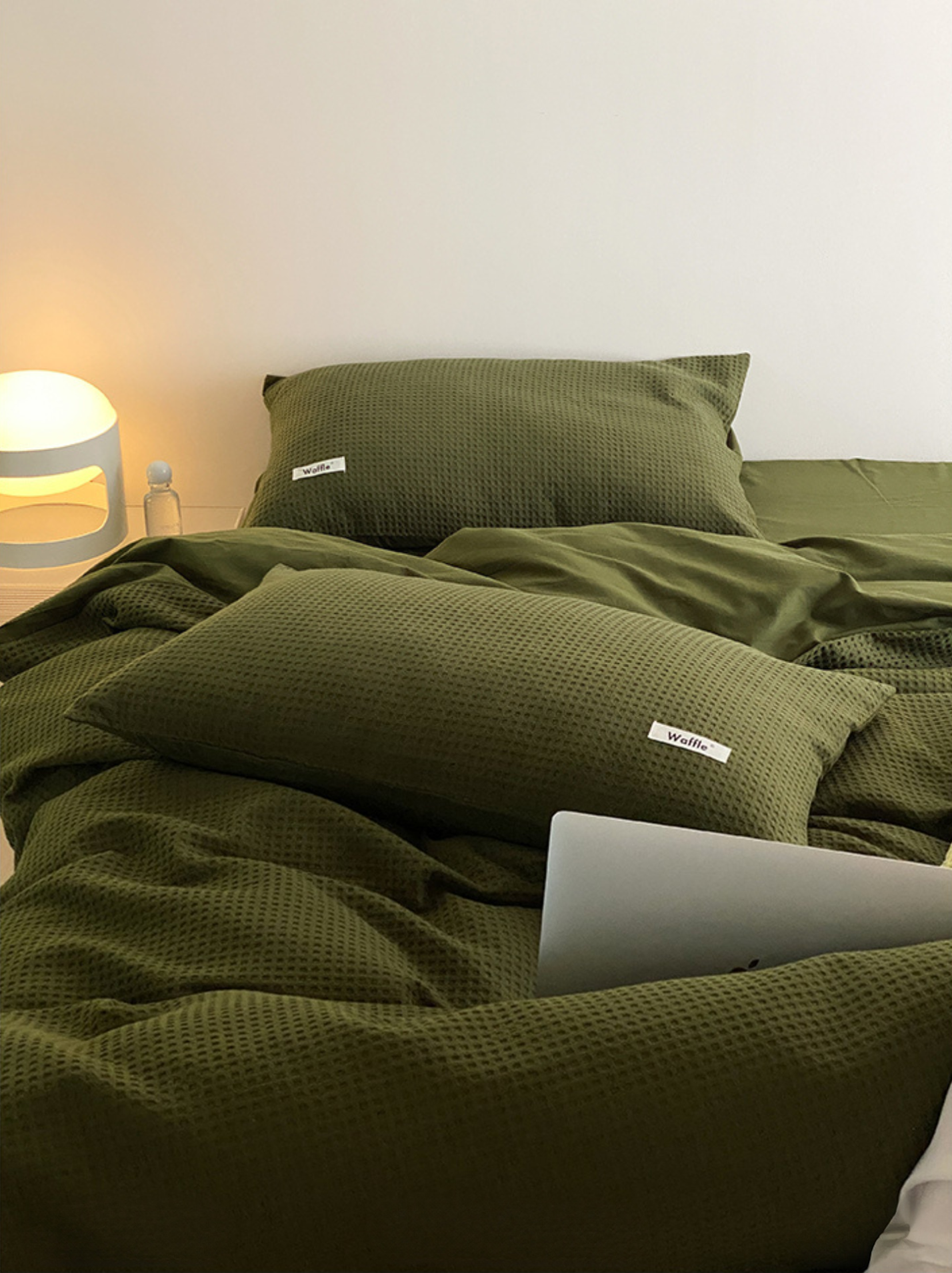 Experience the BEDDING Life Aesthetics with our Brooklyn Verdant set. Designed to cherish life's simplest moments, this set meets the "Mother & Baby" grade standard. High-density, water-washed cotton offers unparalleled softness, while the waffle design promotes enhanced breathability. Perfect for bare-sleeping, it's the essence of everyday comfort and luxury for both mother and baby.