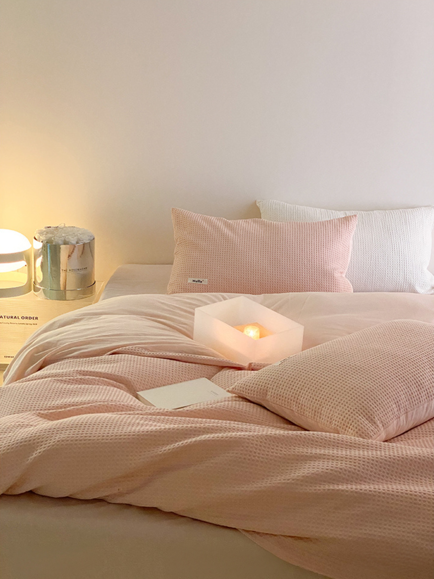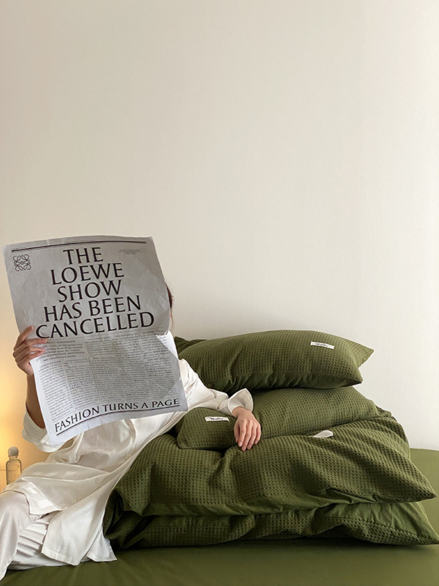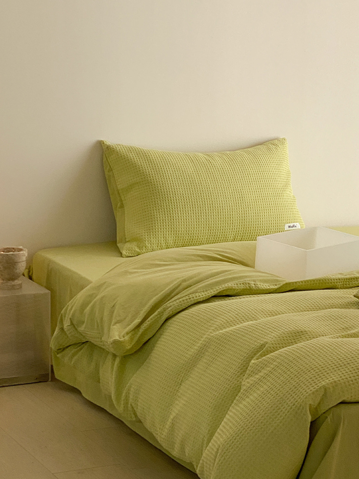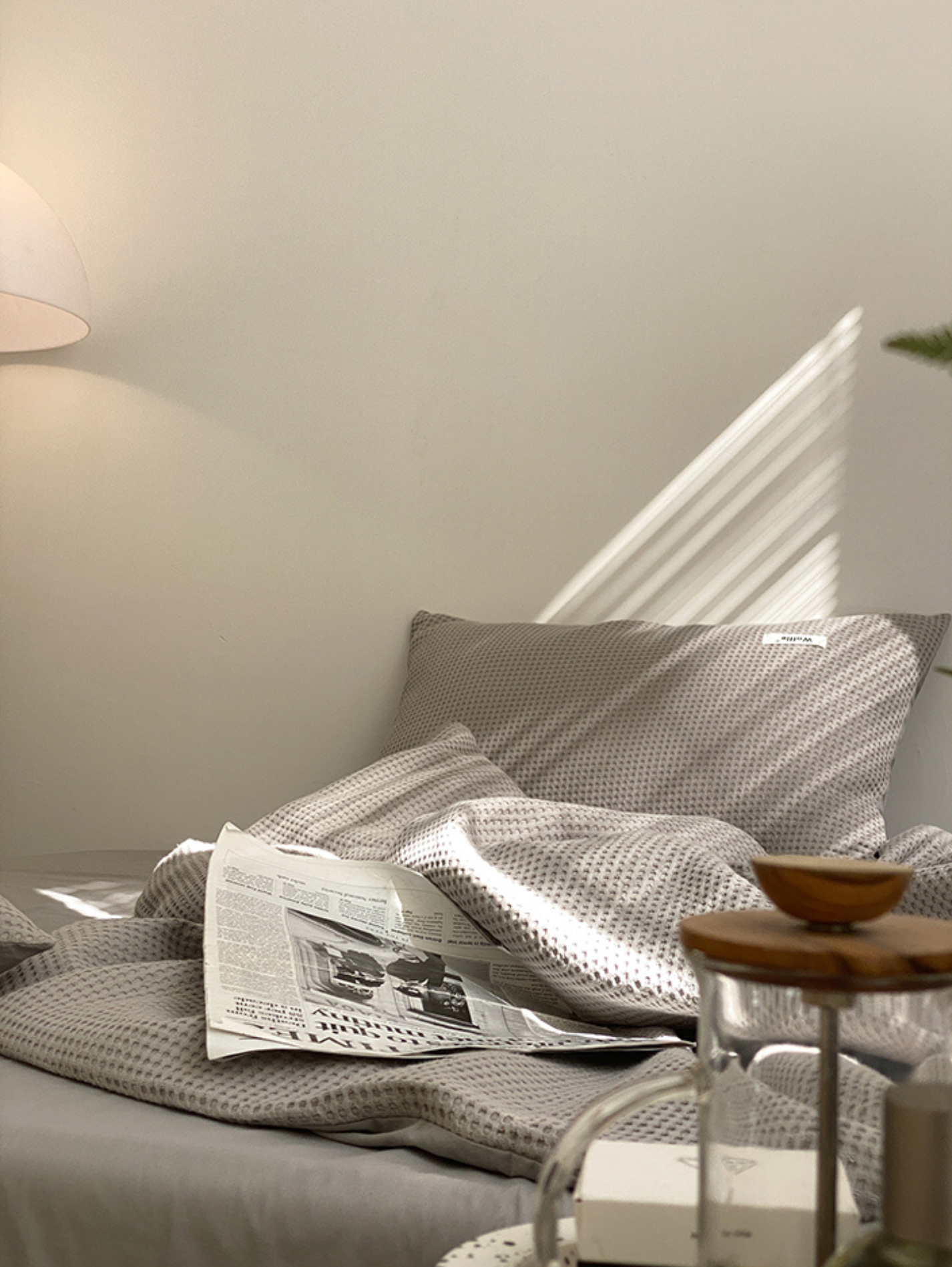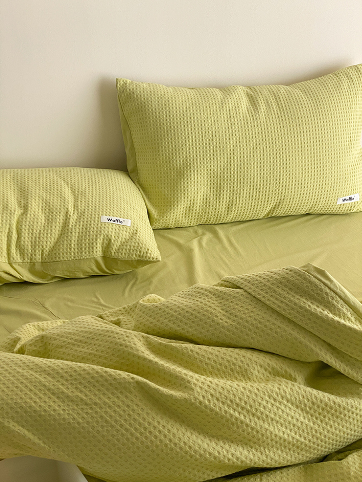 Experience the BEDDING Life Aesthetics with our Brooklyn Verdant set. Designed to cherish life's simplest moments, this set meets the "Mother & Baby" grade standard. High-density, water-washed cotton offers unparalleled softness, while the waffle design promotes enhanced breathability. Perfect for bare-sleeping, it's the essence of everyday comfort and luxury for both mother and baby.