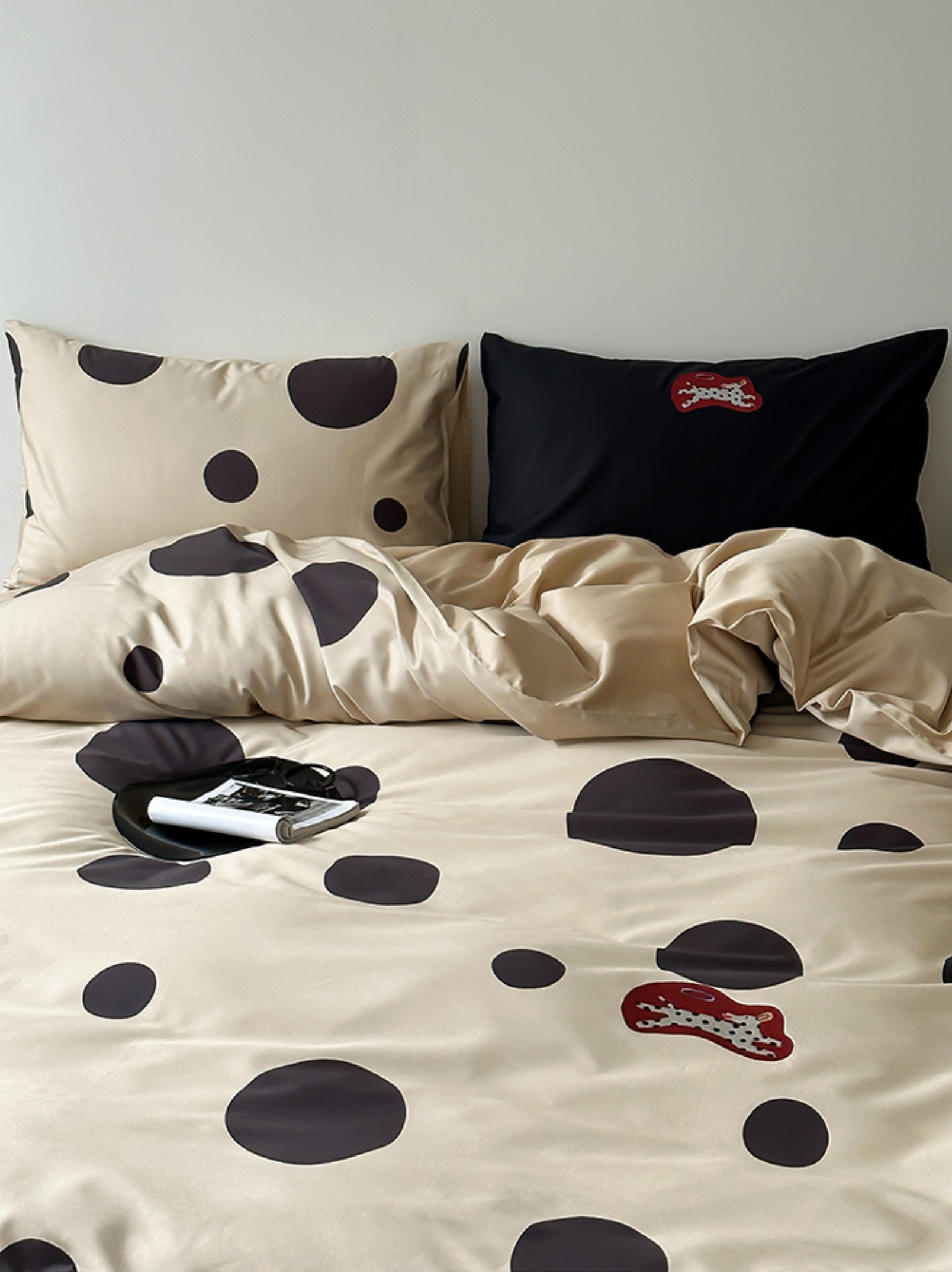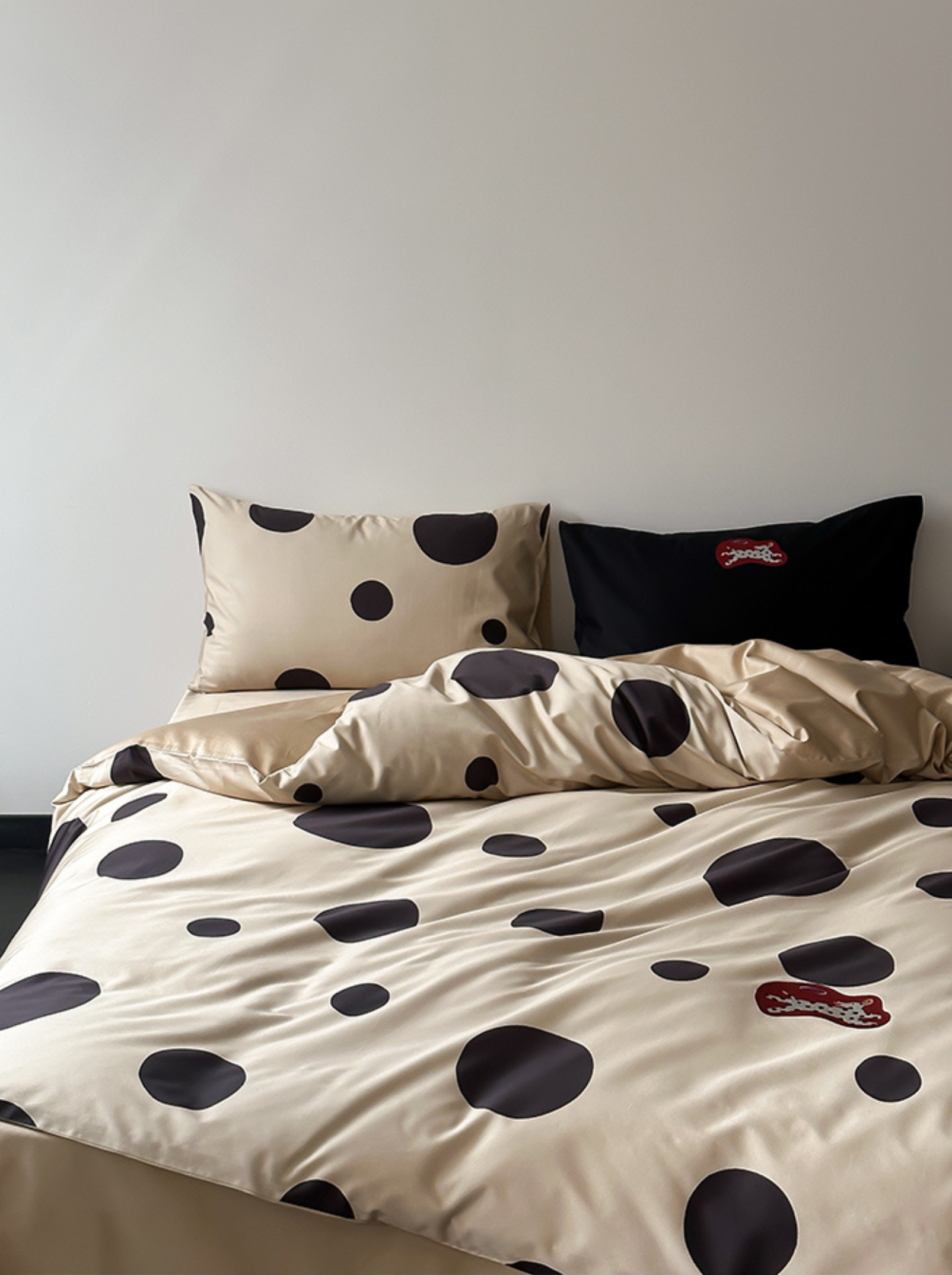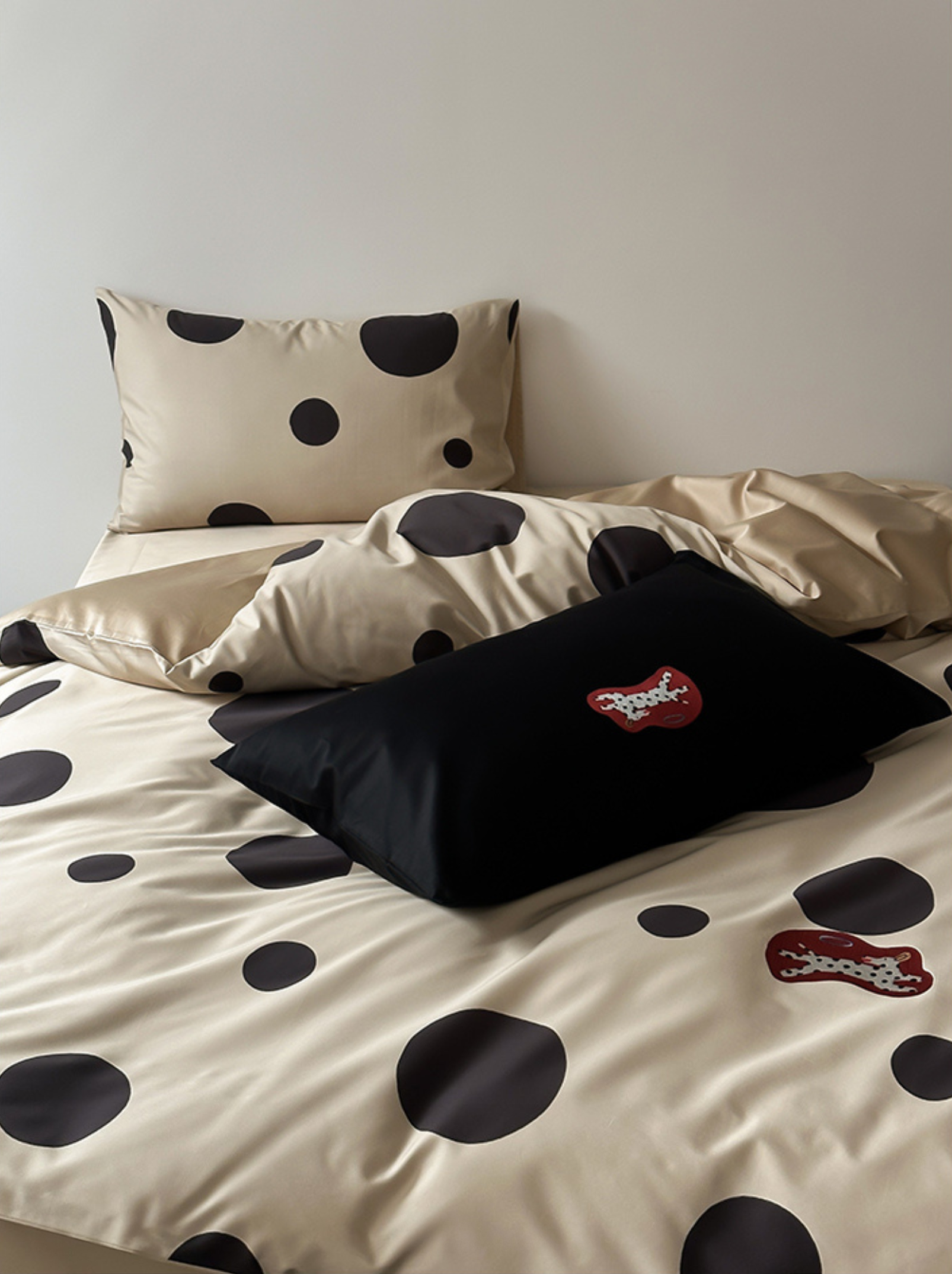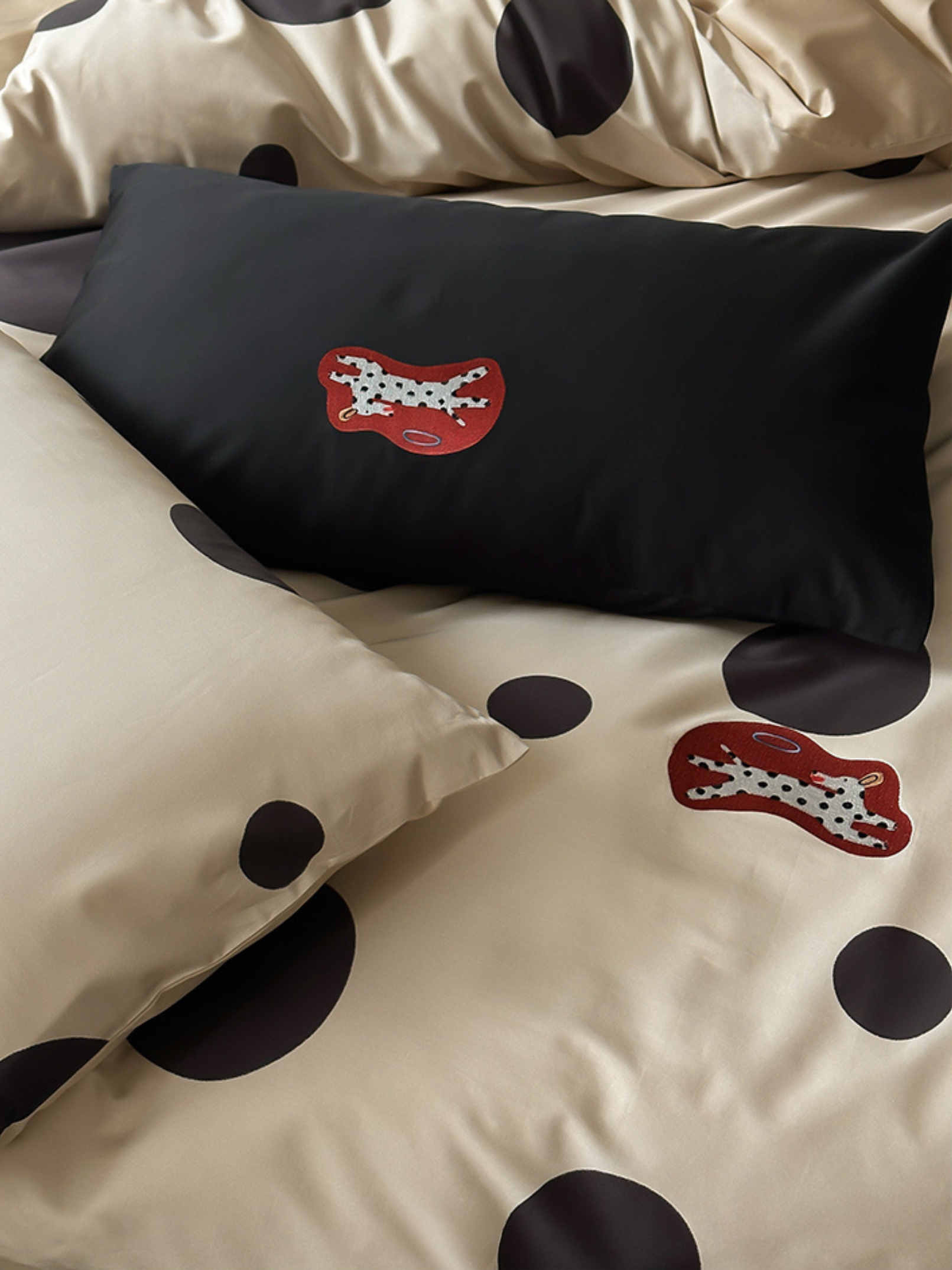Indulge in the premium touch of our "Caramel Wheatfield Luxe" bedding set, crafted from 100-count double-ply long-staple cotton. Featuring an elegant polka dot embroidery and a silky satin finish, this set ensures a refined luster and supreme comfort suitable for all seasons. Made with top-grade long-staple cotton, experience the deluxe softness and durable craftsmanship. A perfect blend of style and substance for an unparalleled night's sleep. First wash tip: Skip the detergent, just add a pinch of salt. Gentle cold machine wash recommended and avoid direct sun exposure. Dry at a cool 30°C for best results.
