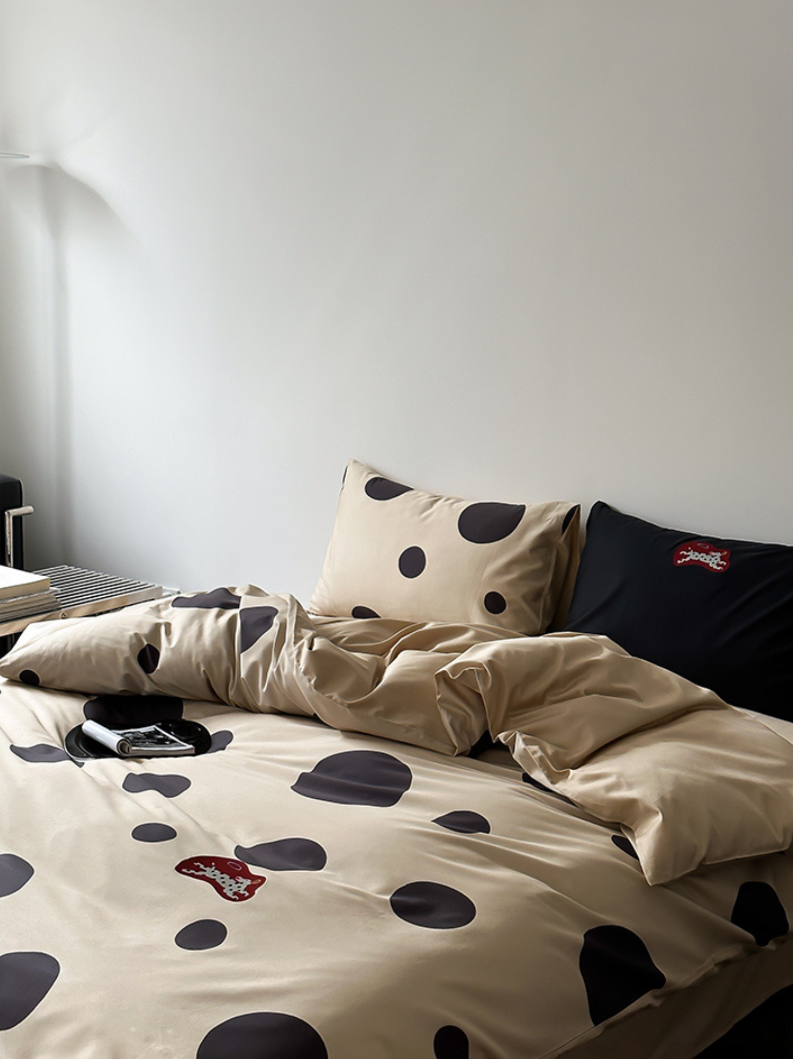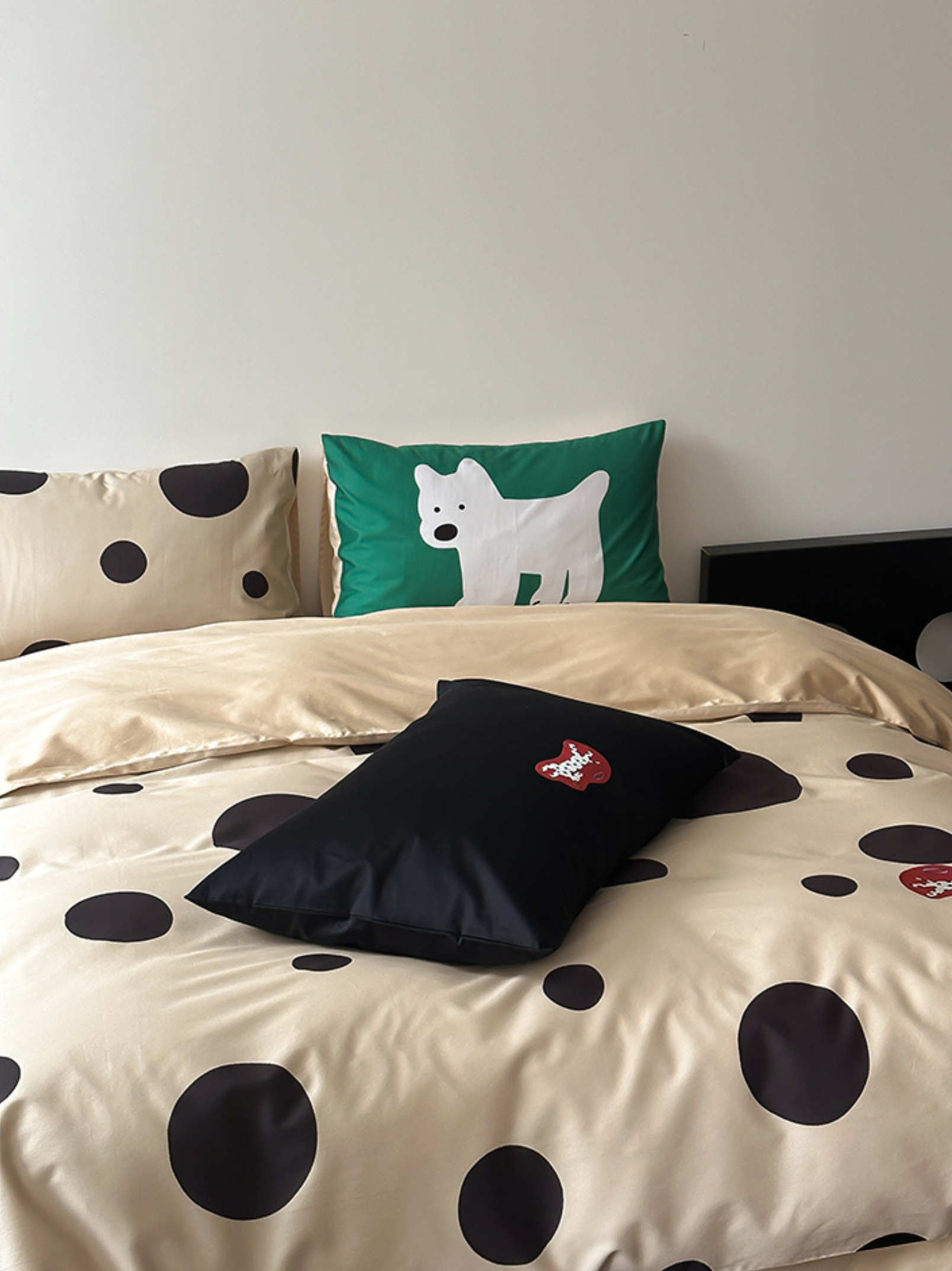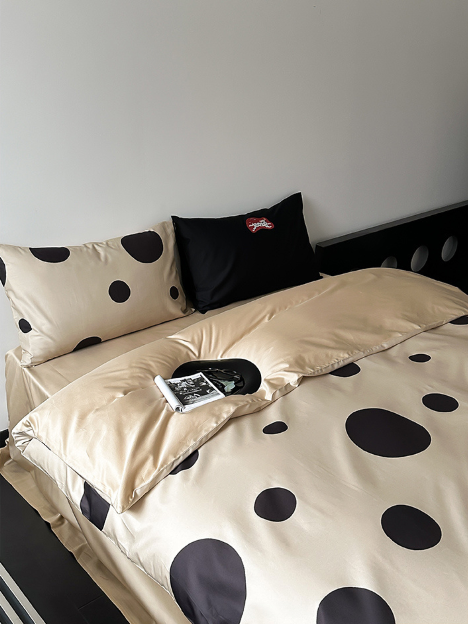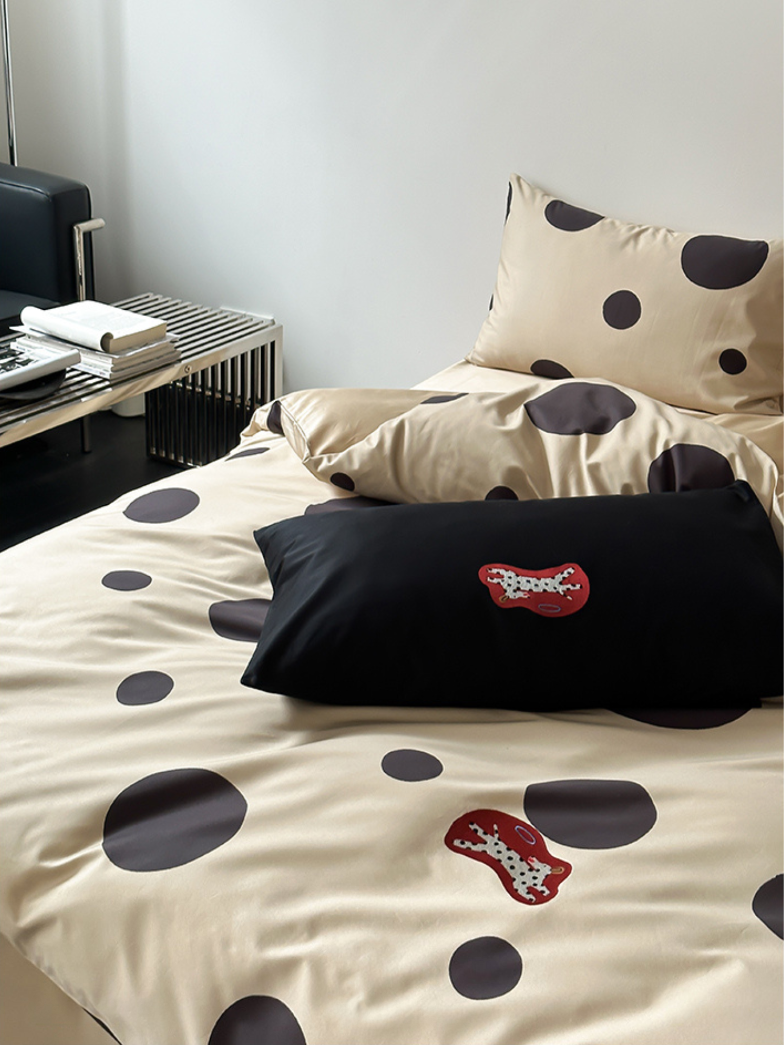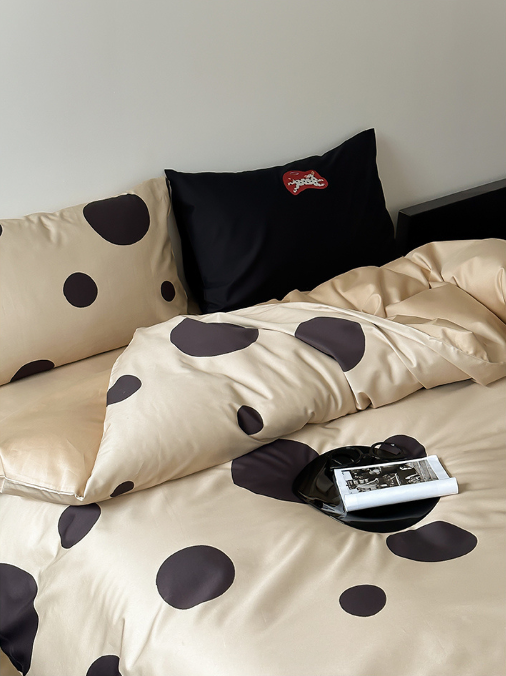 Indulge in the premium touch of our "Caramel Wheatfield Luxe" bedding set, crafted from 100-count double-ply long-staple cotton. Featuring an elegant polka dot embroidery and a silky satin finish, this set ensures a refined luster and supreme comfort suitable for all seasons. Made with top-grade long-staple cotton, experience the deluxe softness and durable craftsmanship. A perfect blend of style and substance for an unparalleled night's sleep. First wash tip: Skip the detergent, just add a pinch of salt. Gentle cold machine wash recommended and avoid direct sun exposure. Dry at a cool 30°C for best results.