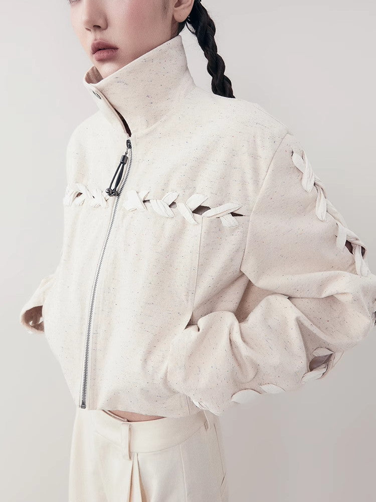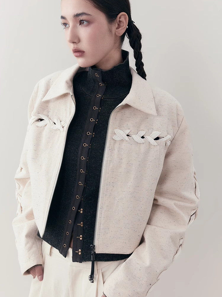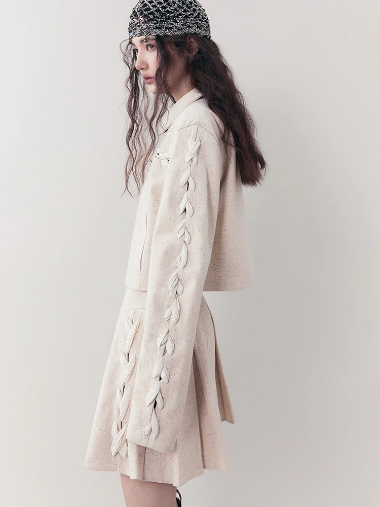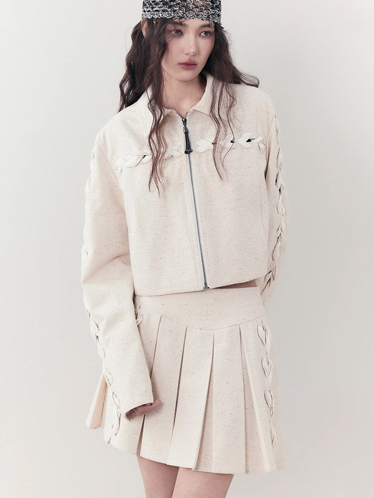 Chic Braid Cute Set-Up Zip Natural Jacket&Skirt
