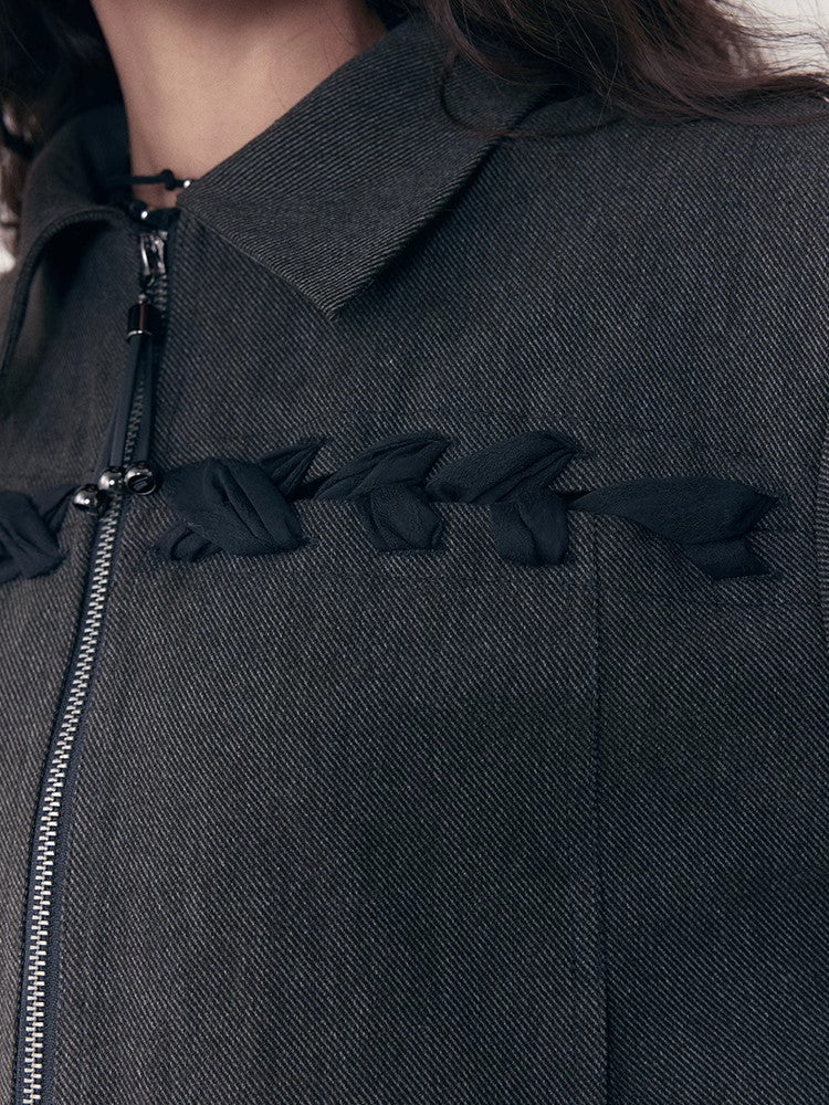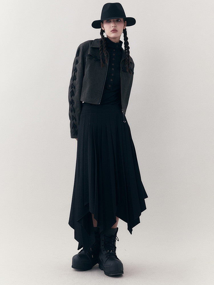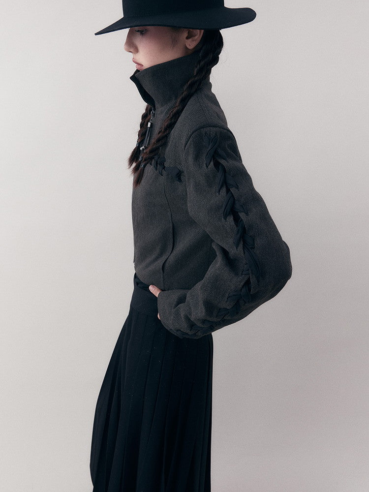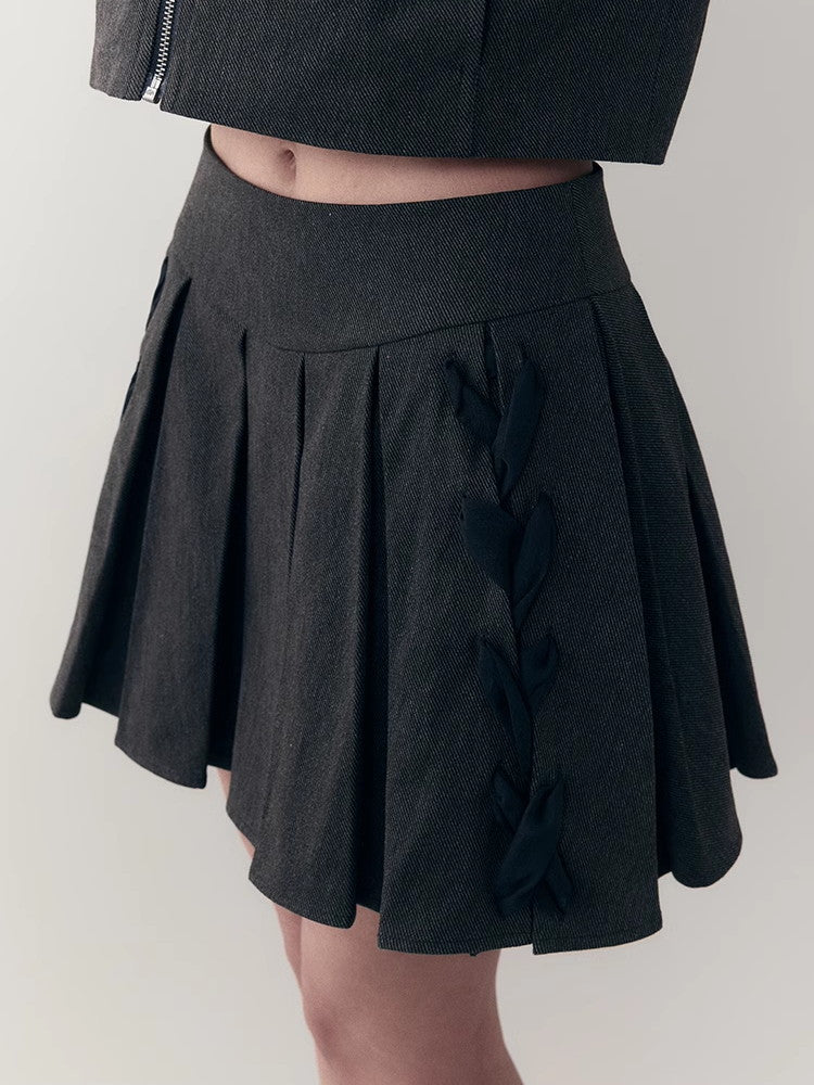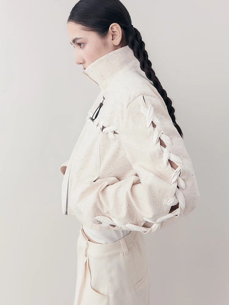 Chic Braid Cute Set-Up Zip Natural Jacket&Skirt