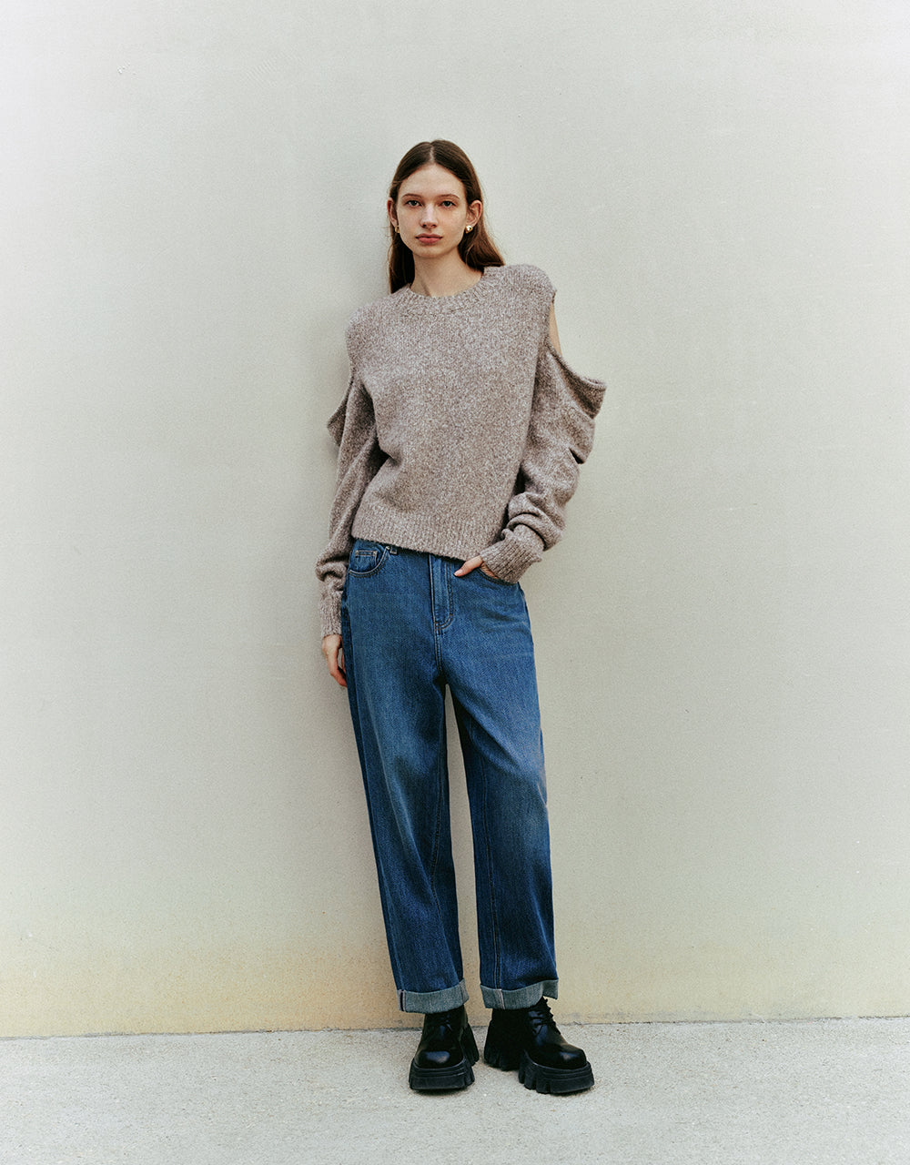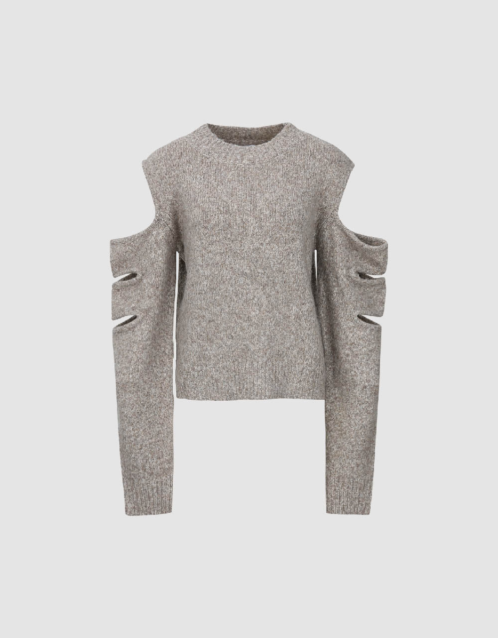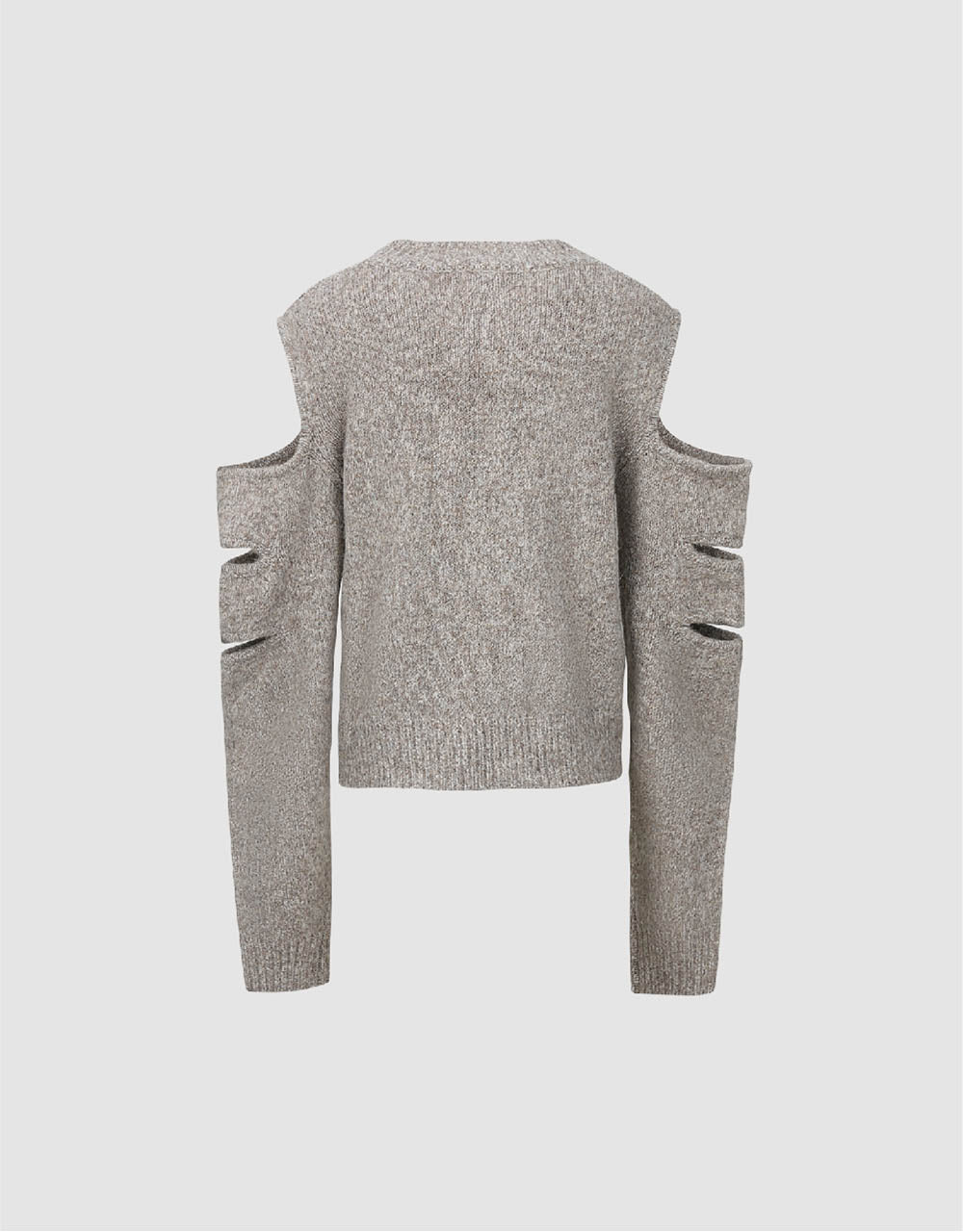 Cold Shoulder Crew Neck Knitted T-Shirt