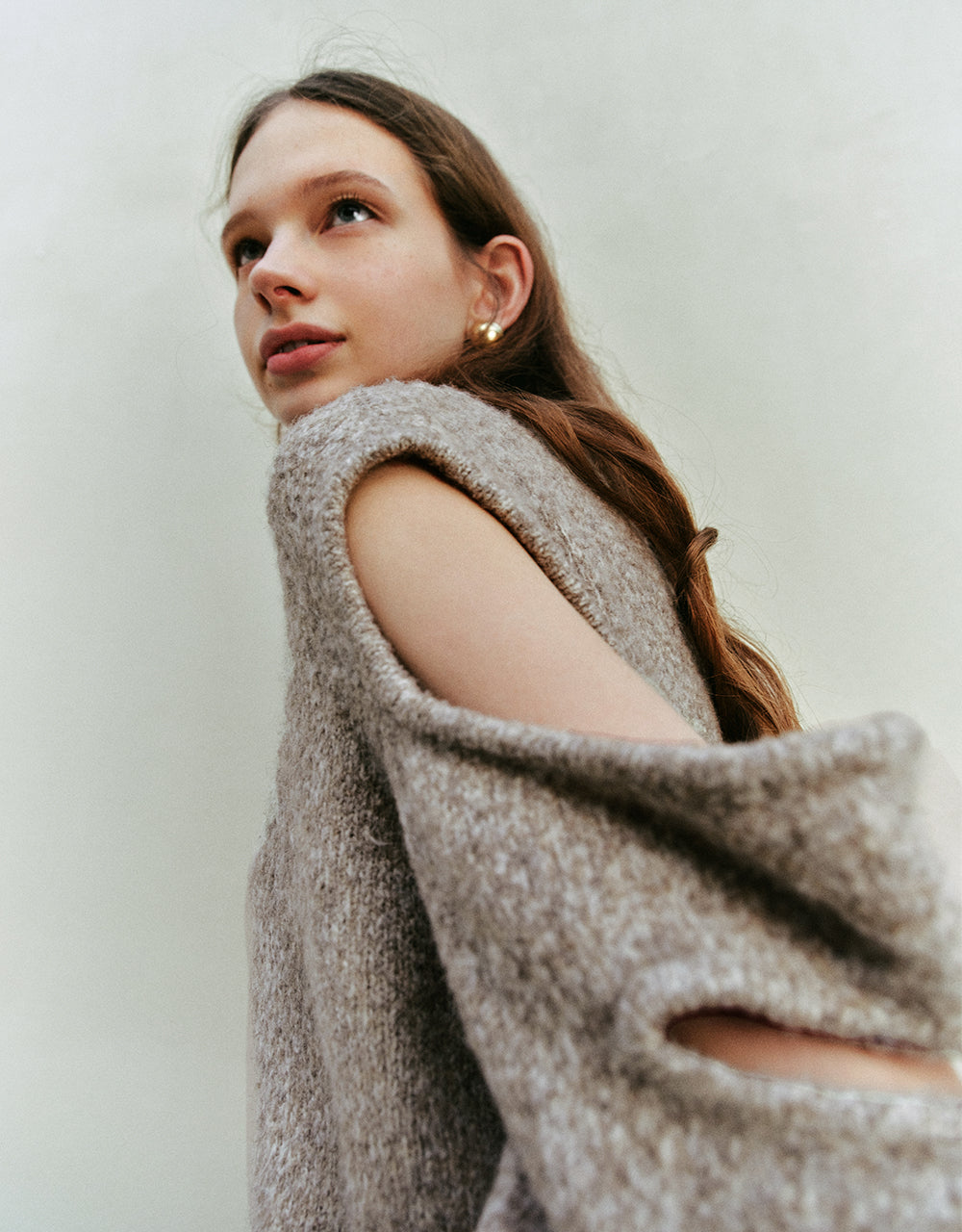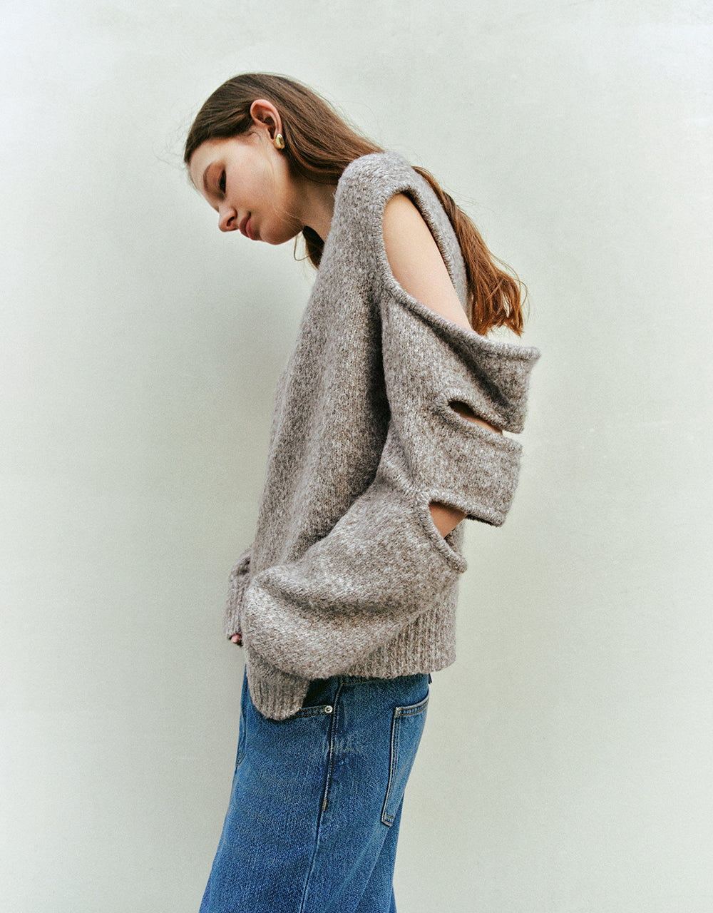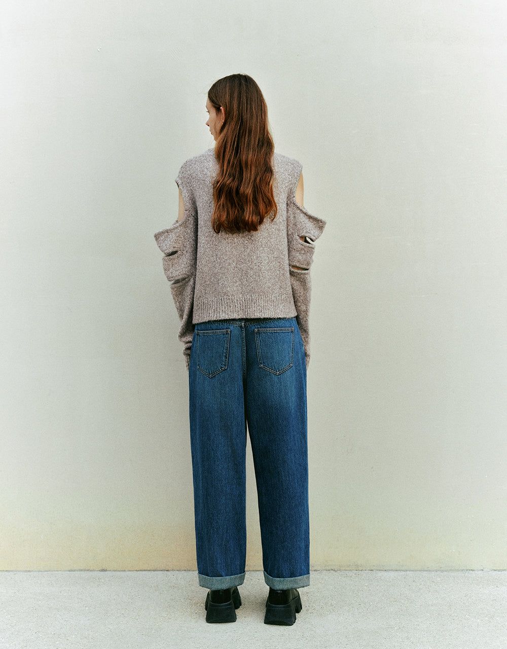 Cold Shoulder Crew Neck Knitted T-Shirt
