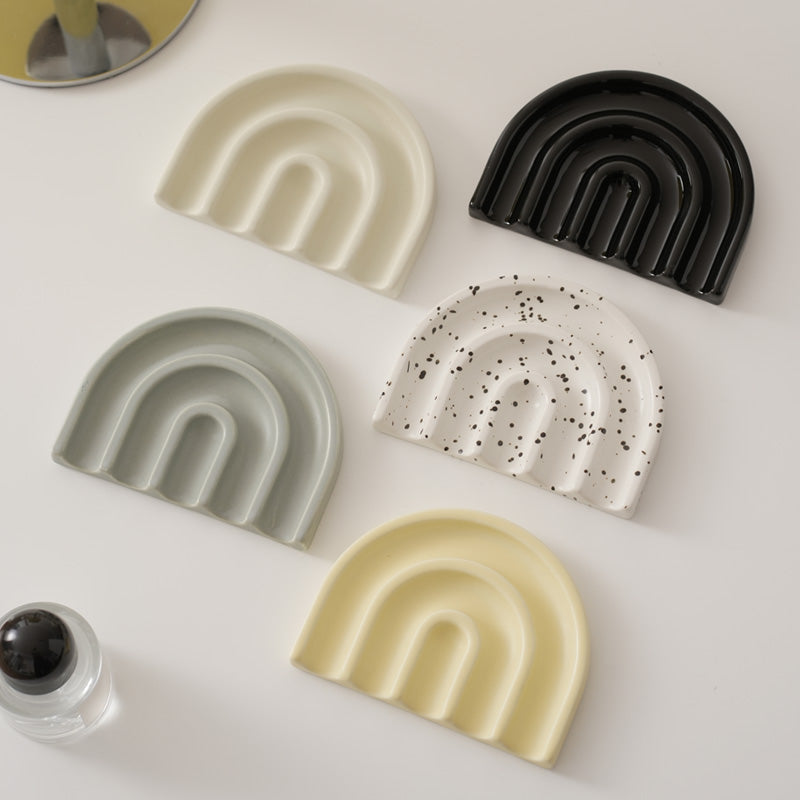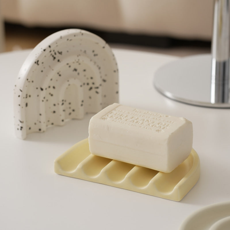 Inspired by the delightful curve of donuts, this Luxe Ceramic Soap Dish boasts an original design with full, rounded lines. Crafted from the essence of simple geometry, it not only elevates your daily routine but also redefines an ideal lifestyle. Every piece is a testament to a refined reinterpretation of everyday essentials.