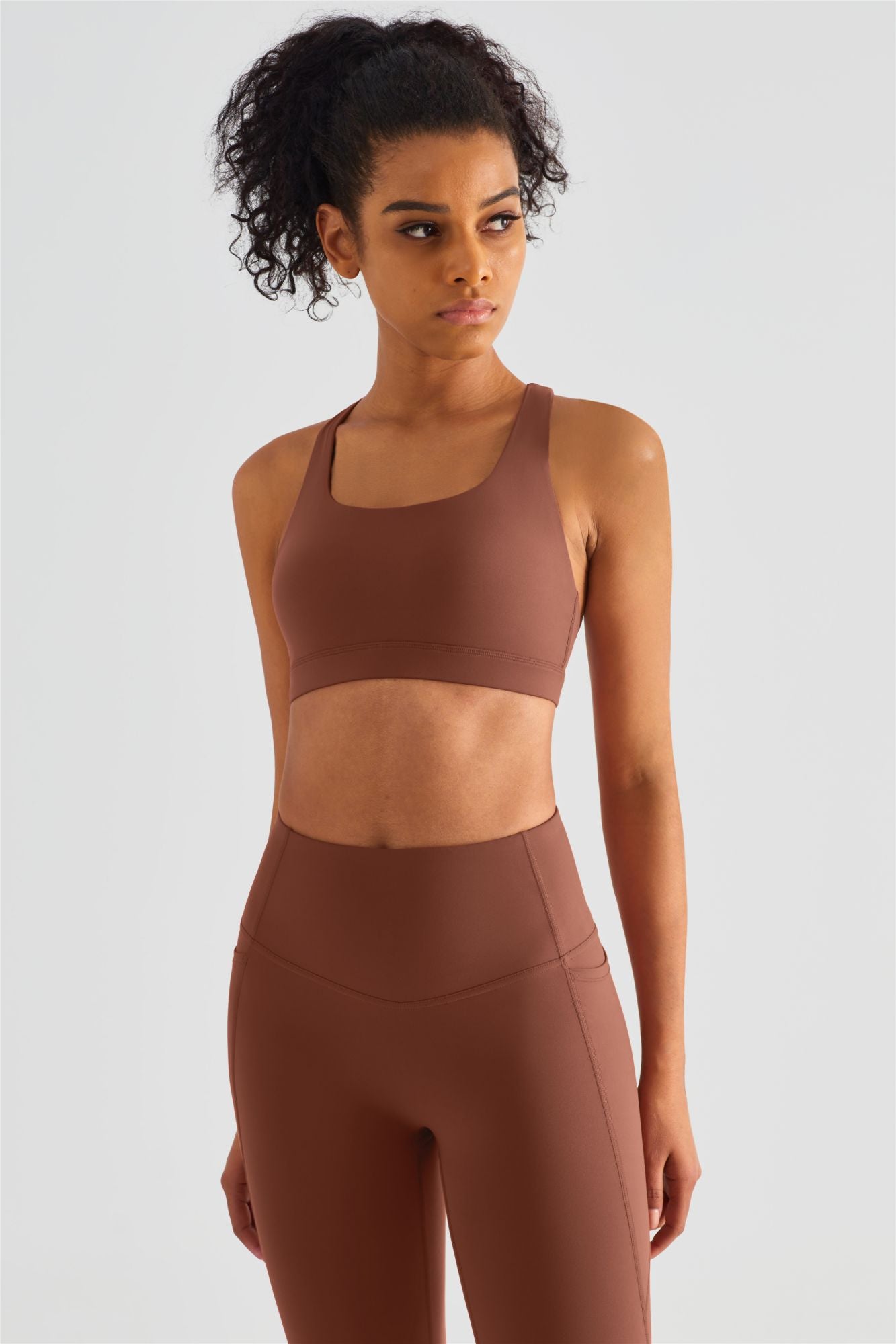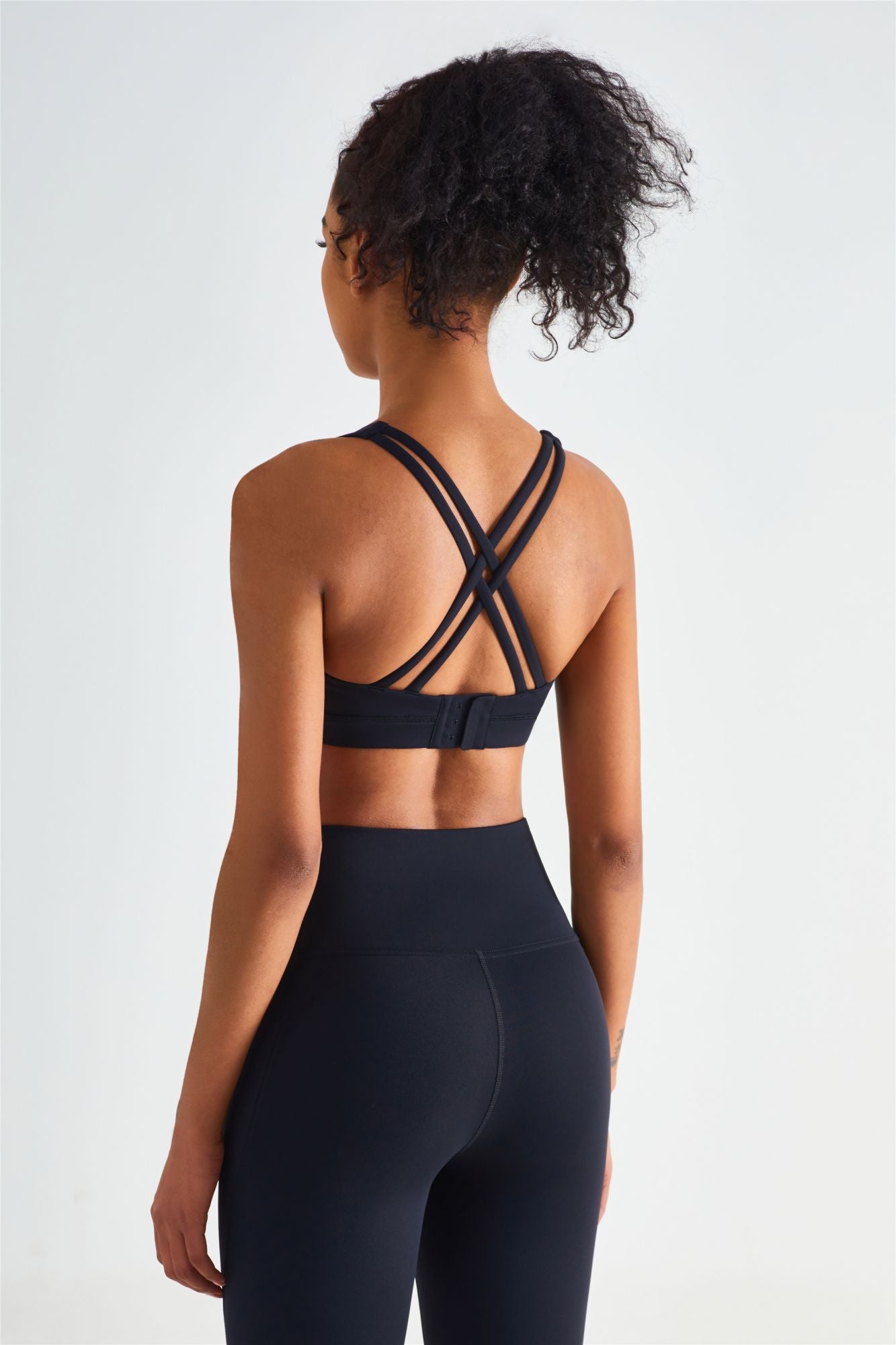 The strappy sports bra for additional support with removable pads, Great for low to medium impacts. The sexy crisscross straps provide stretch fit and extra back support, allows you to twist easily and won’t digging in. With underband design offers the stability and long enough support during exercise.