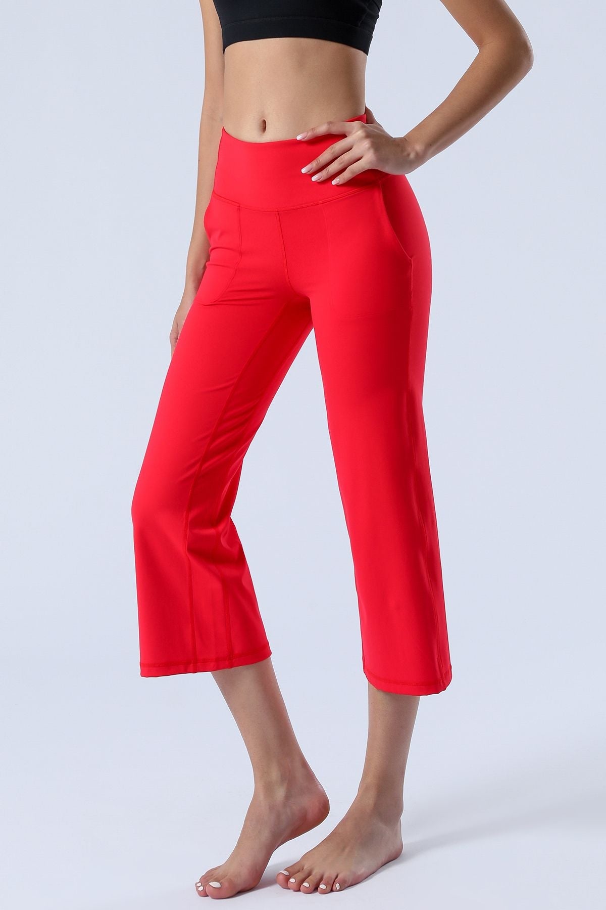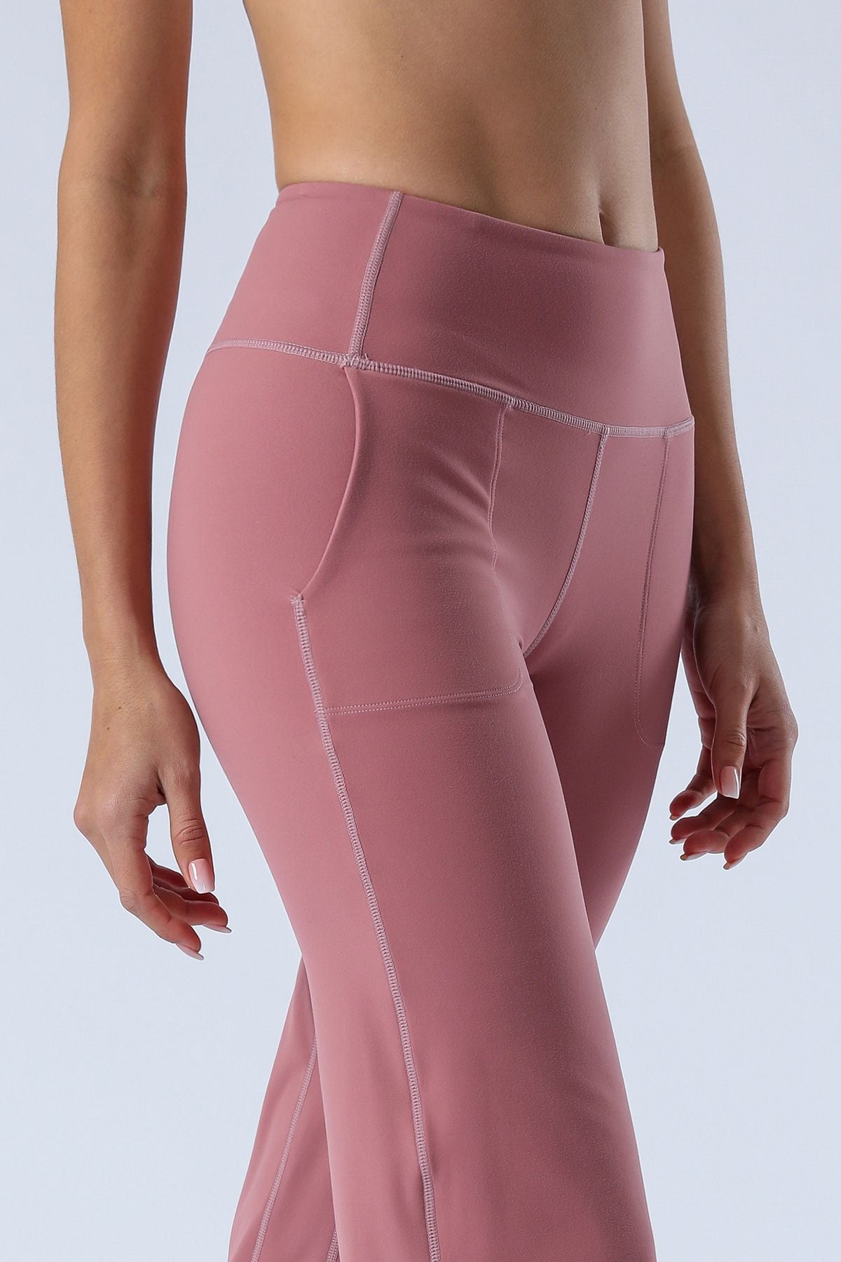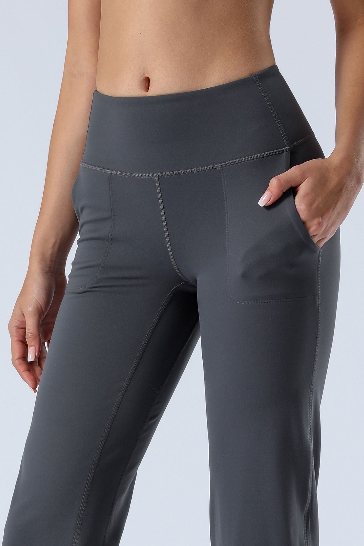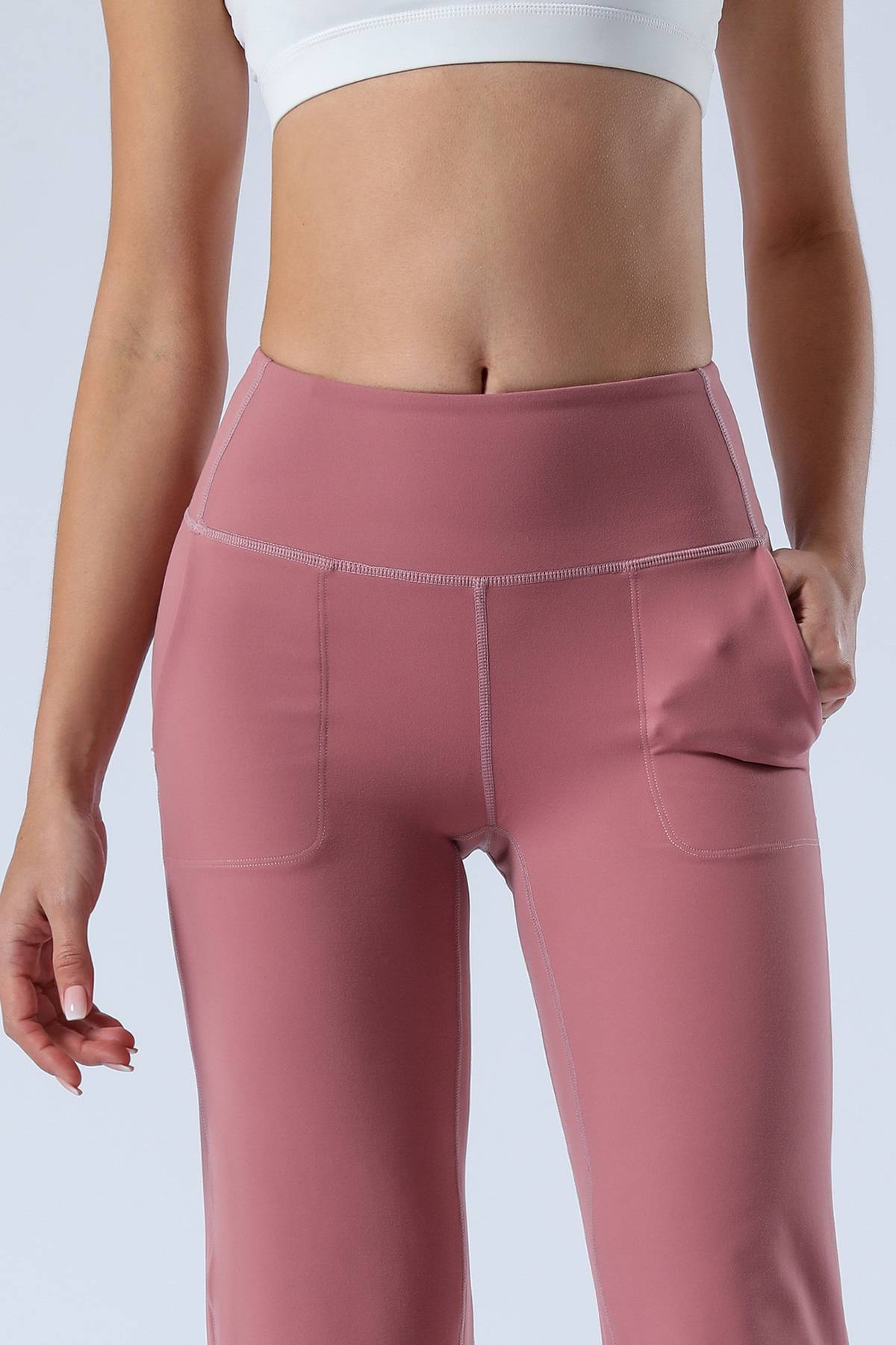 Unique Bootcut Design, featuring both high-rise and tummy control, suitable for every body type and shape. The wide waistband fits the body curves for a streamlined shape. Design of side pockets that can hold simple objects such as cell phone or credit cards and other essentials.