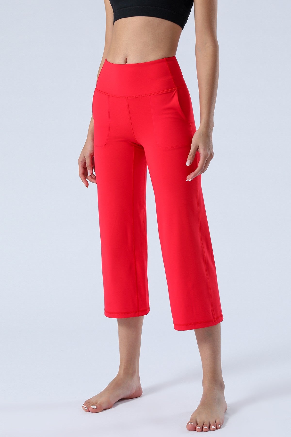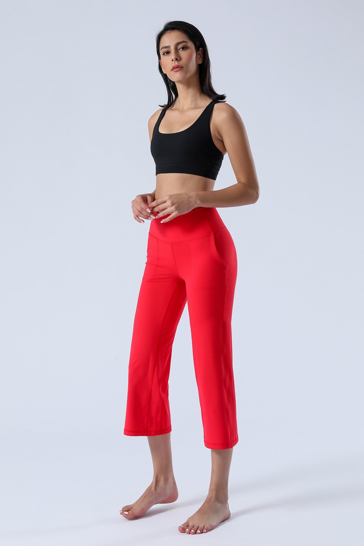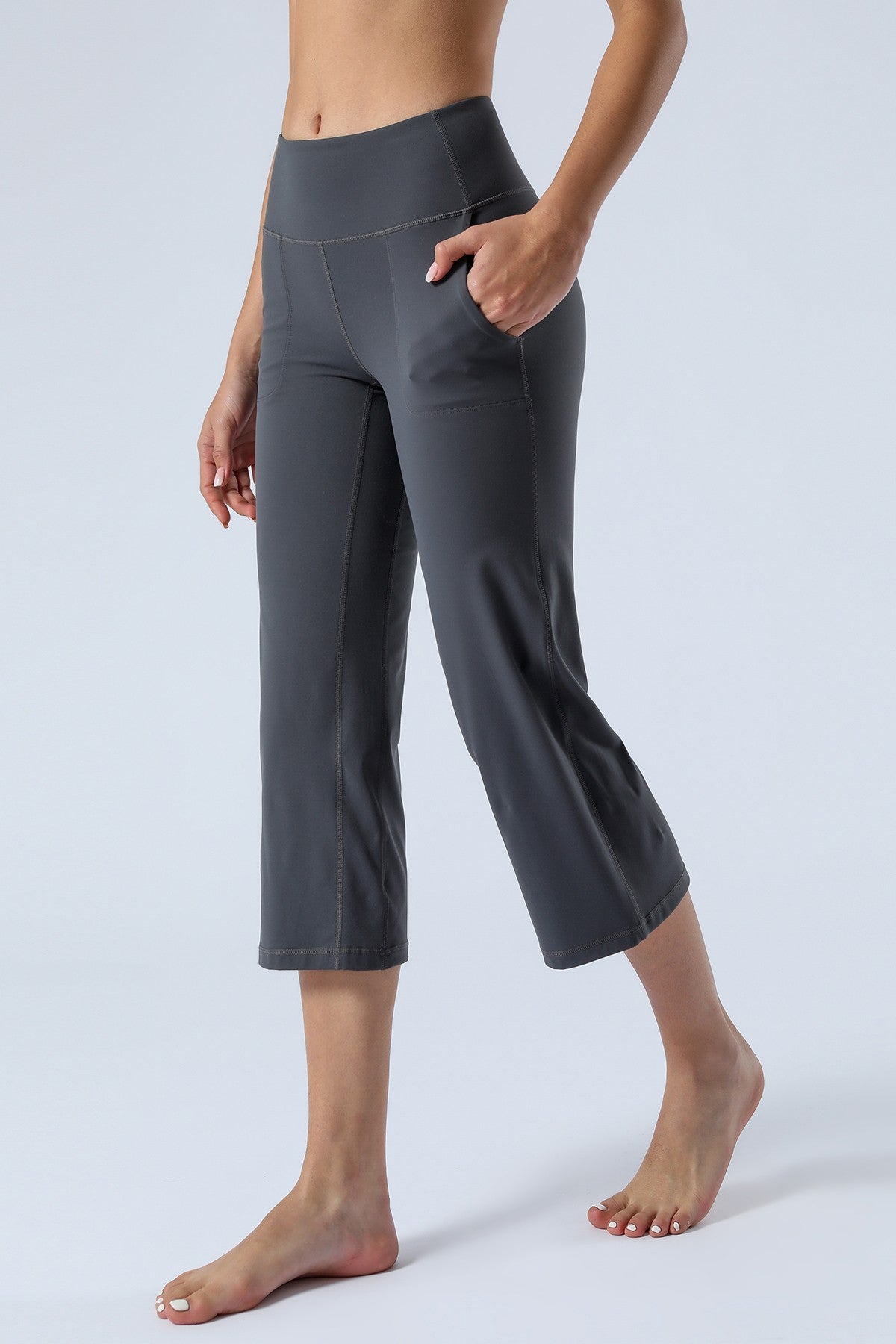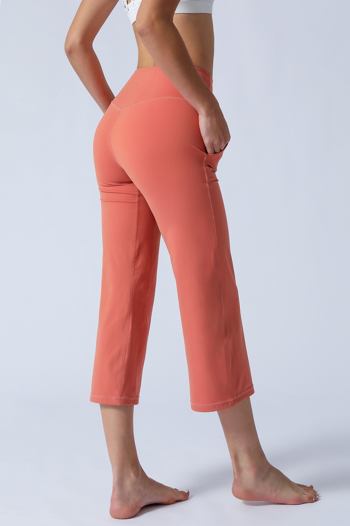 Unique Bootcut Design, featuring both high-rise and tummy control, suitable for every body type and shape. The wide waistband fits the body curves for a streamlined shape. Design of side pockets that can hold simple objects such as cell phone or credit cards and other essentials.