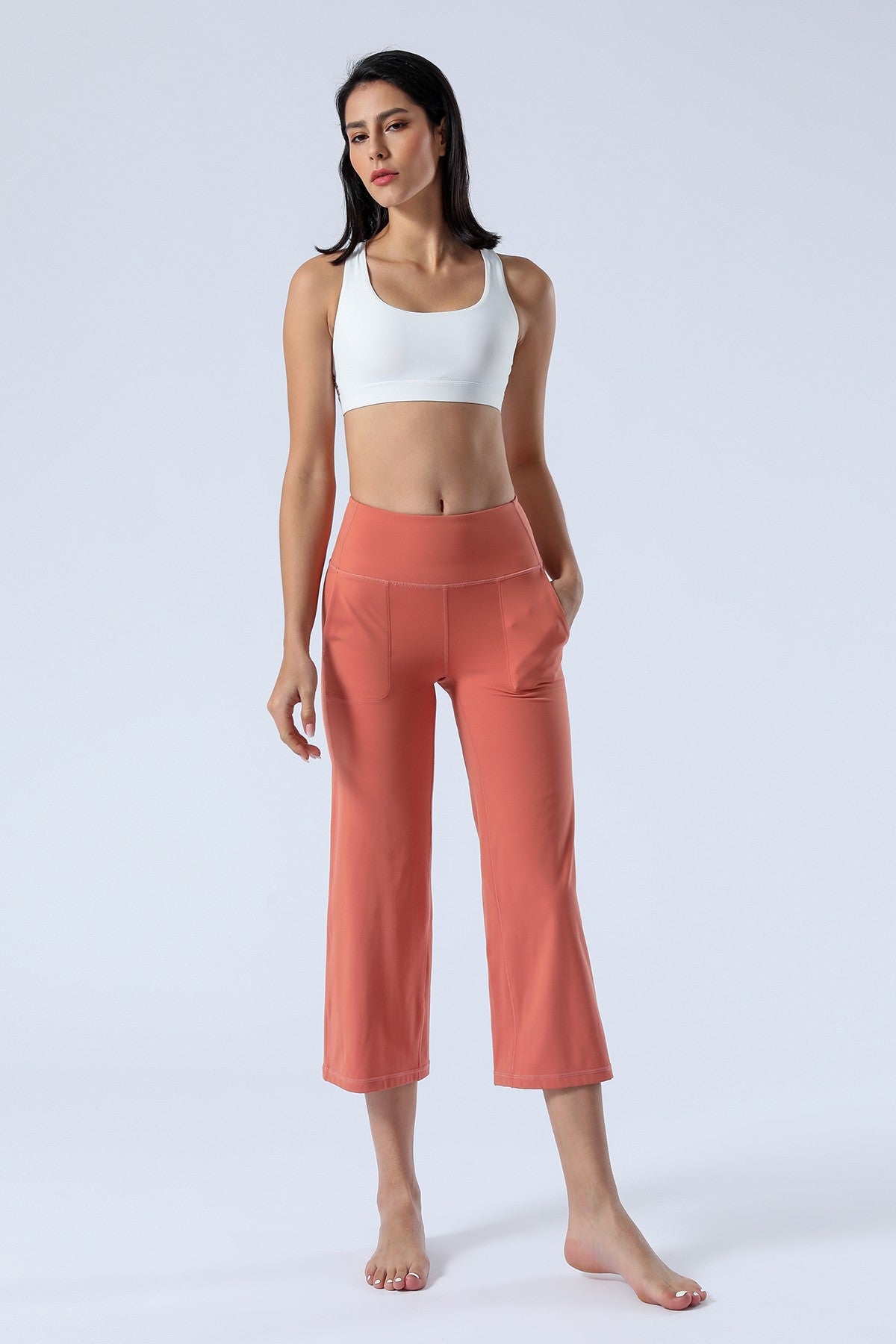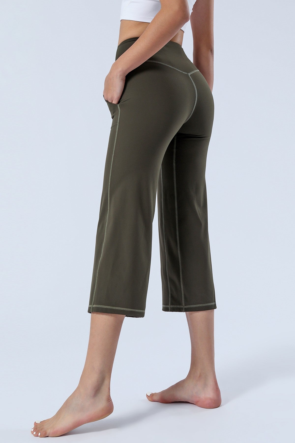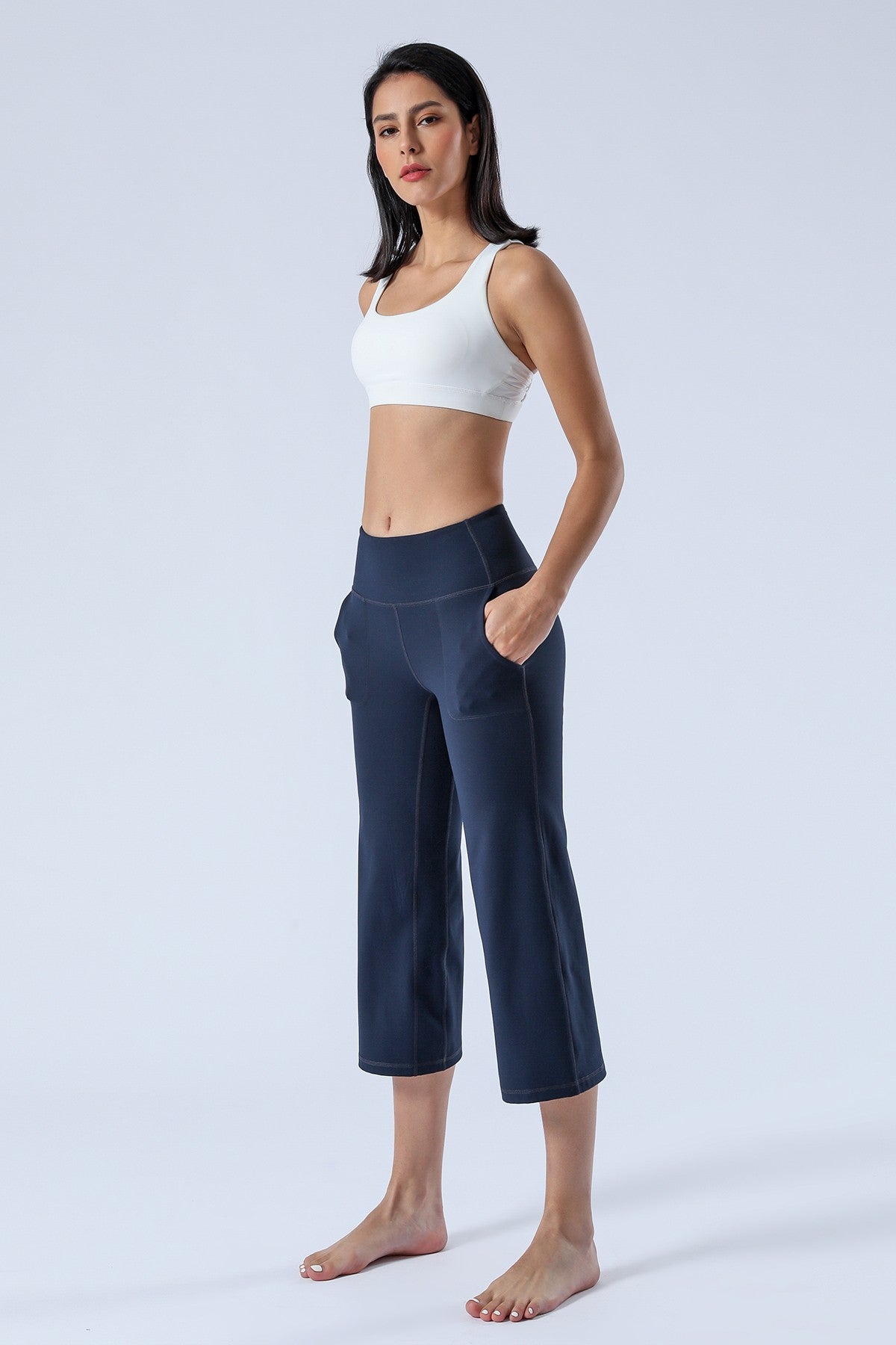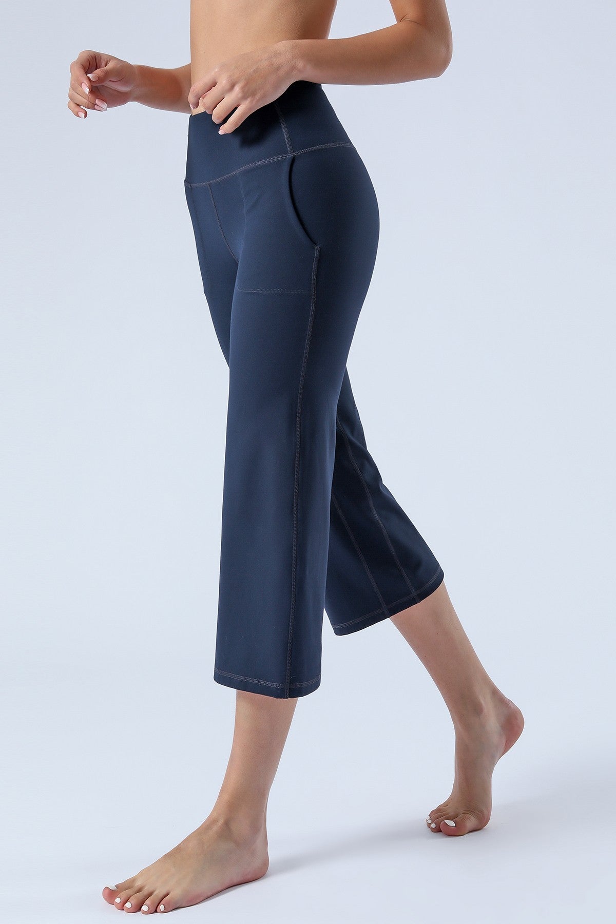 Unique Bootcut Design, featuring both high-rise and tummy control, suitable for every body type and shape. The wide waistband fits the body curves for a streamlined shape. Design of side pockets that can hold simple objects such as cell phone or credit cards and other essentials.