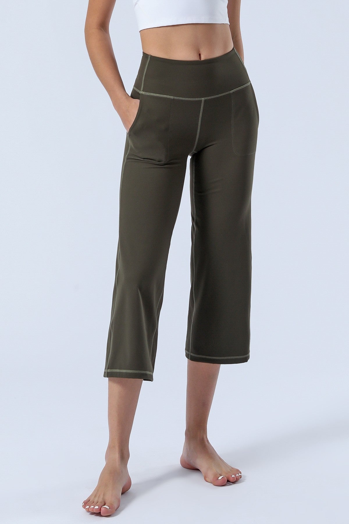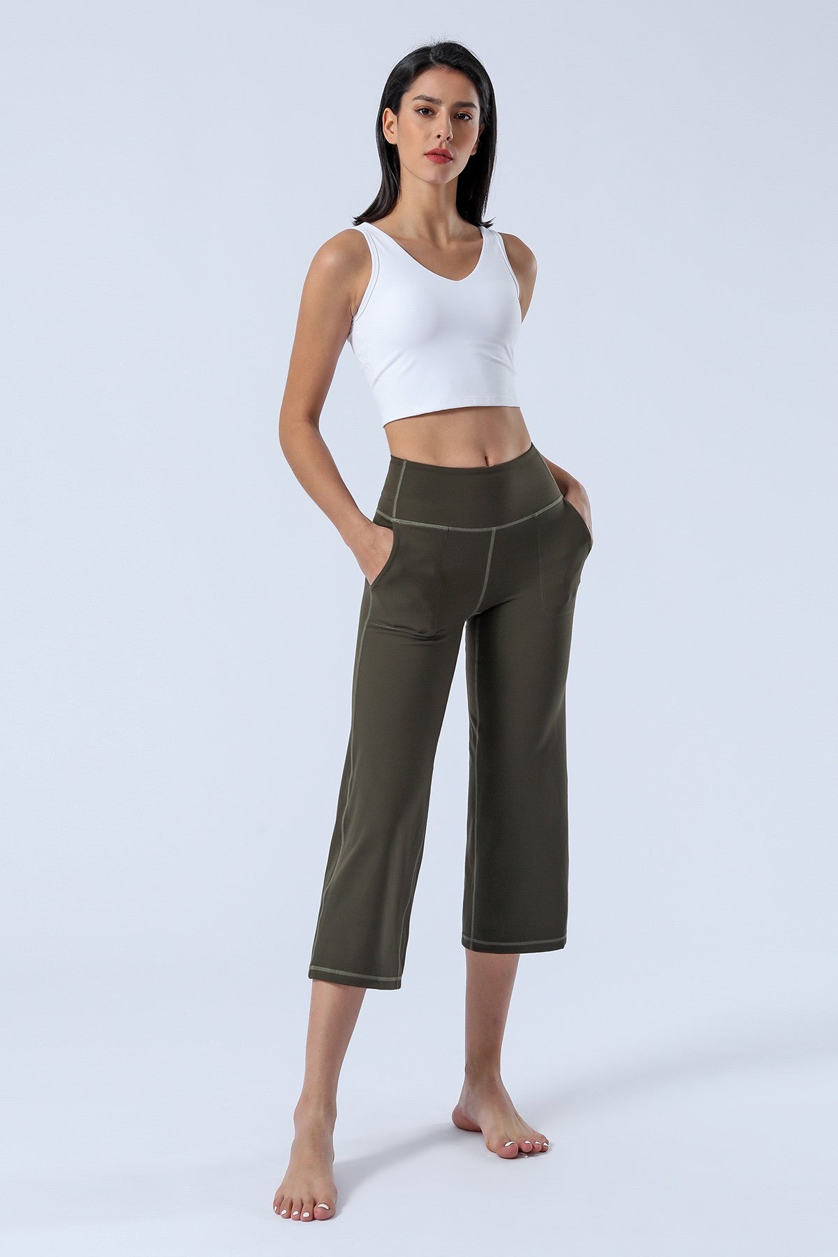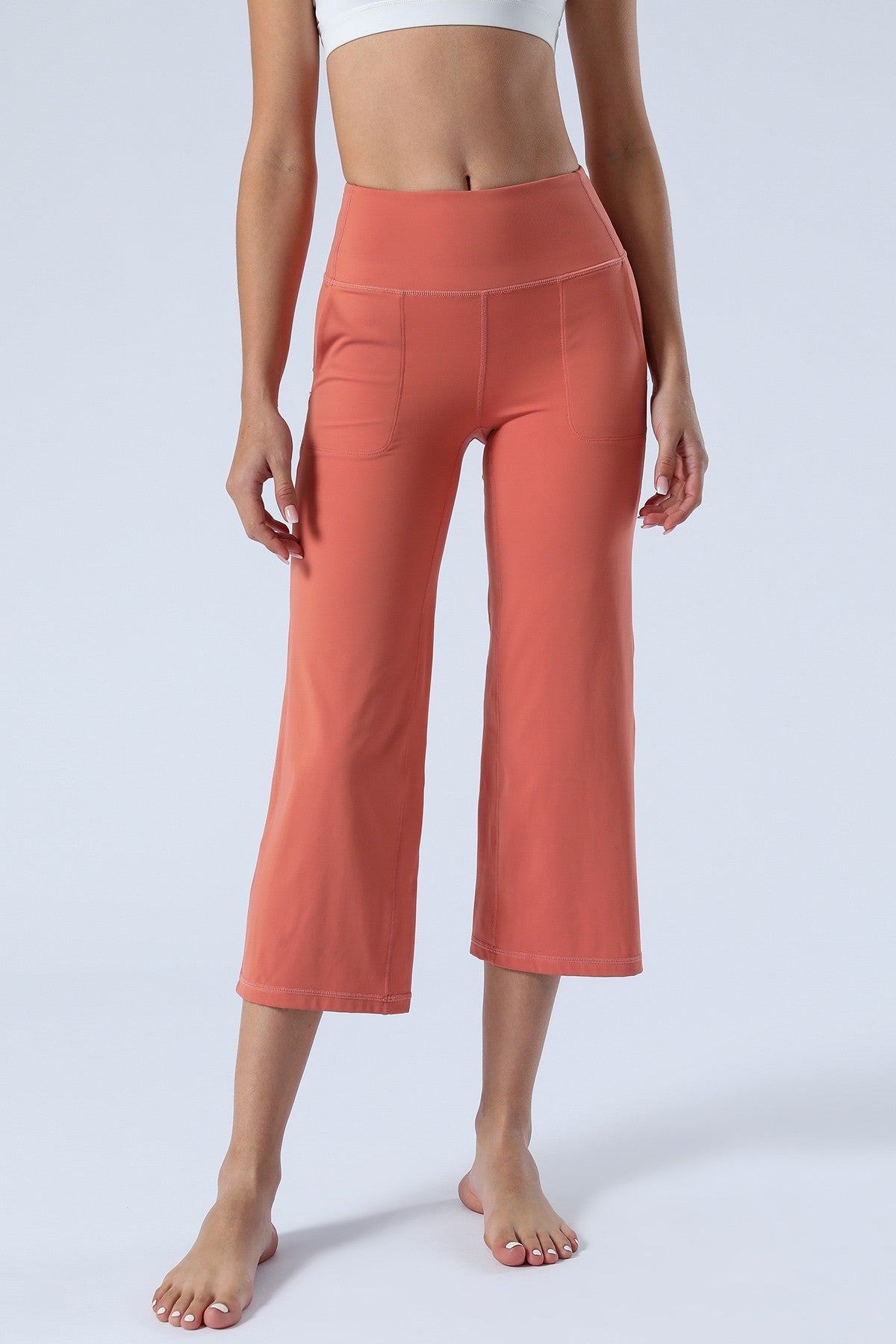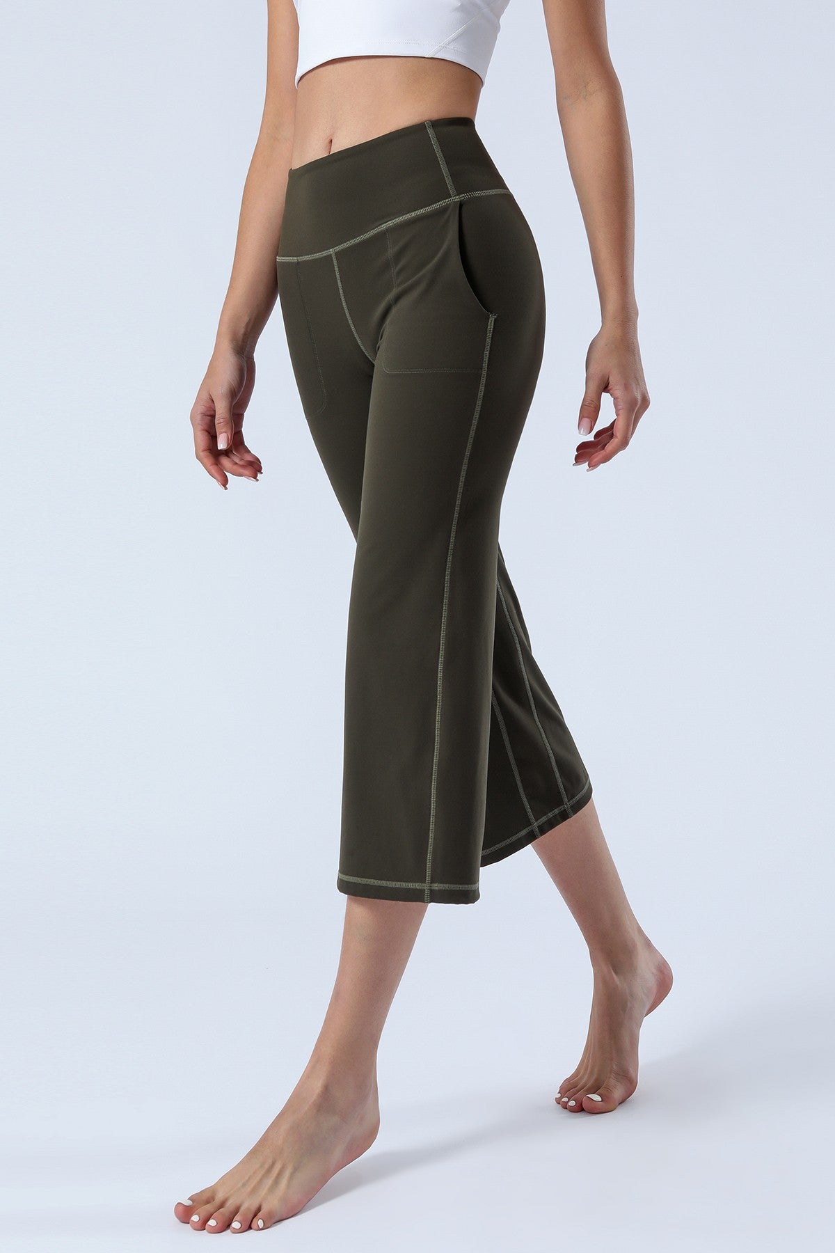 Unique Bootcut Design, featuring both high-rise and tummy control, suitable for every body type and shape. The wide waistband fits the body curves for a streamlined shape. Design of side pockets that can hold simple objects such as cell phone or credit cards and other essentials.