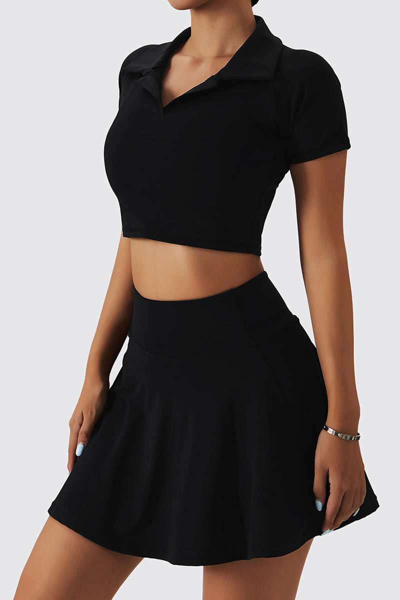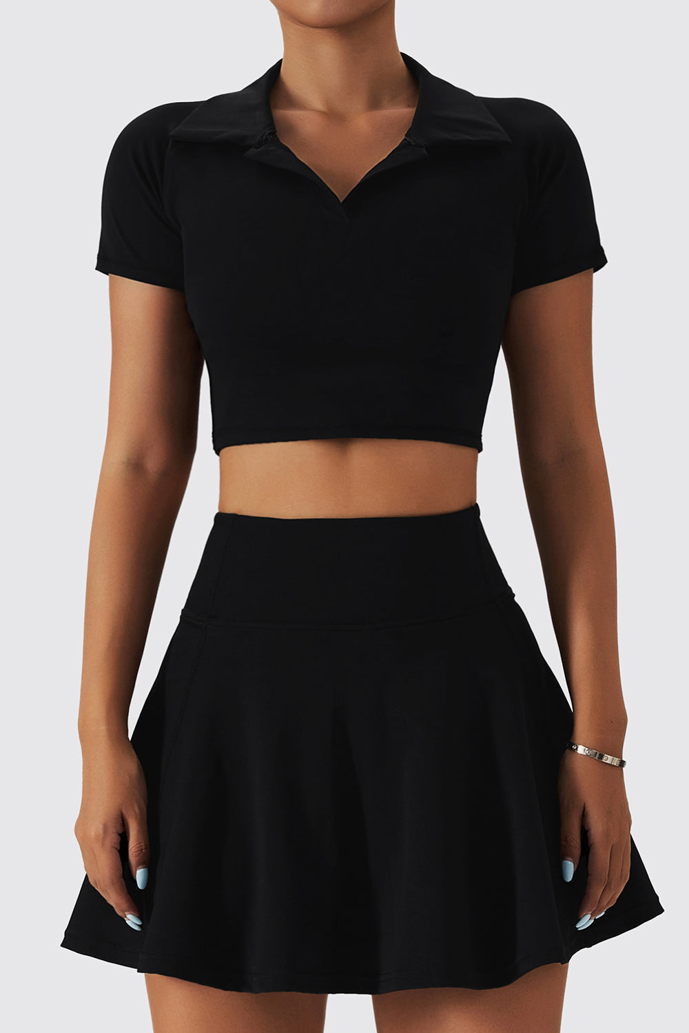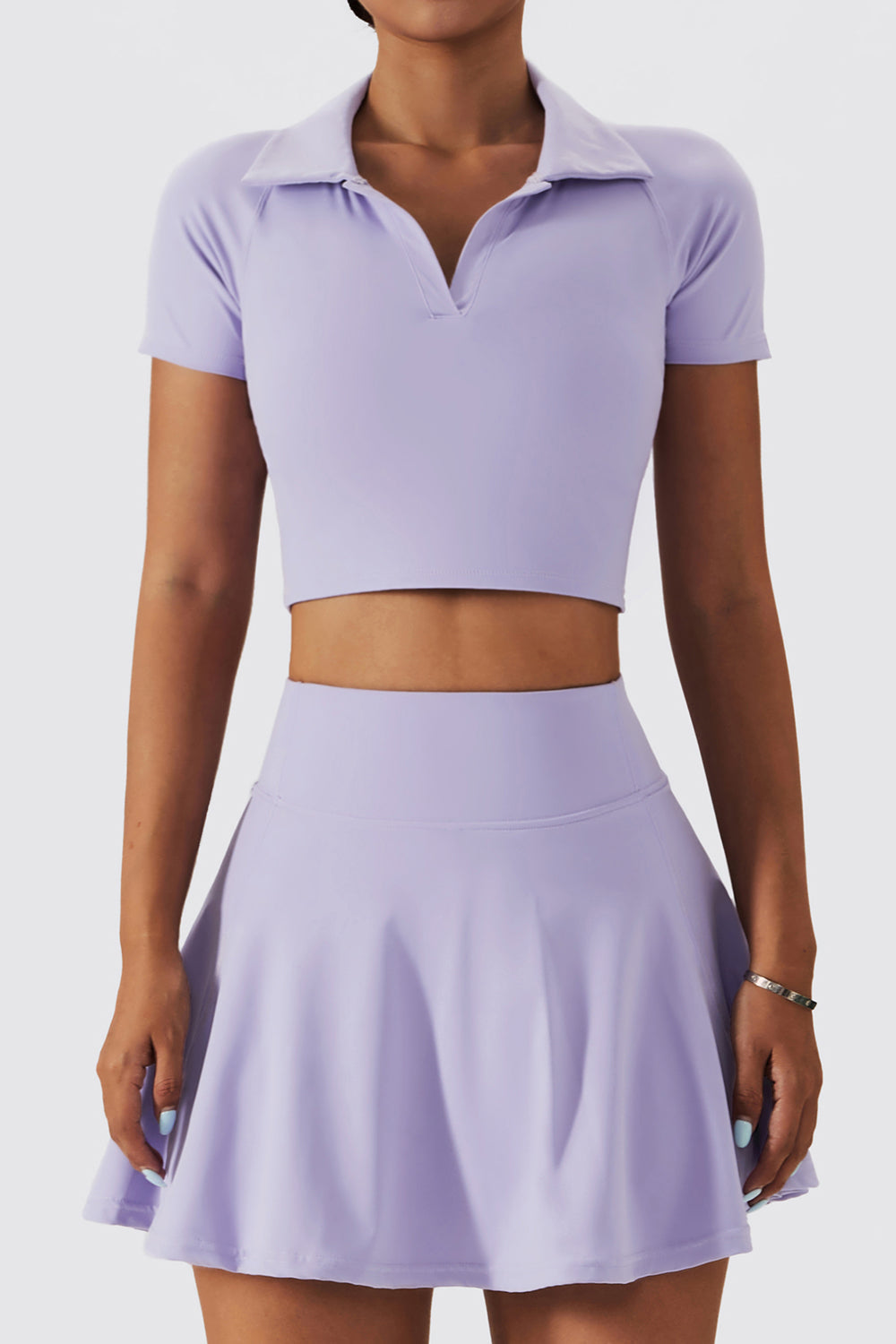 Your tennis skirt’s new BFF. The lightweight Polo shirt is cropped just right, with a classic lapel collar and fitted silhouette.