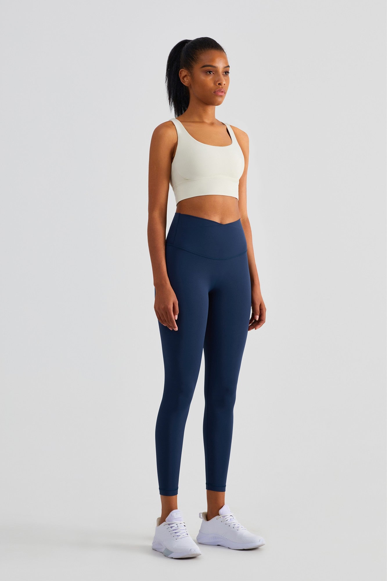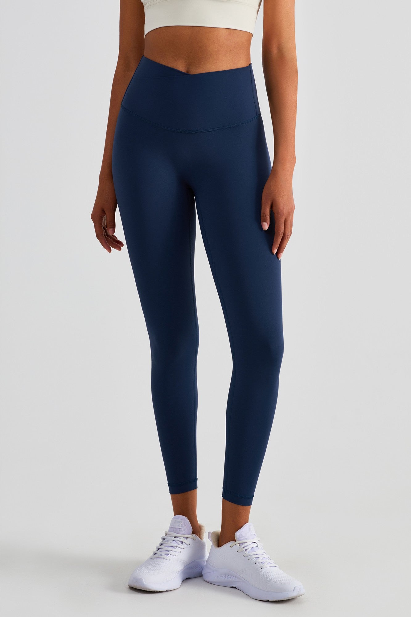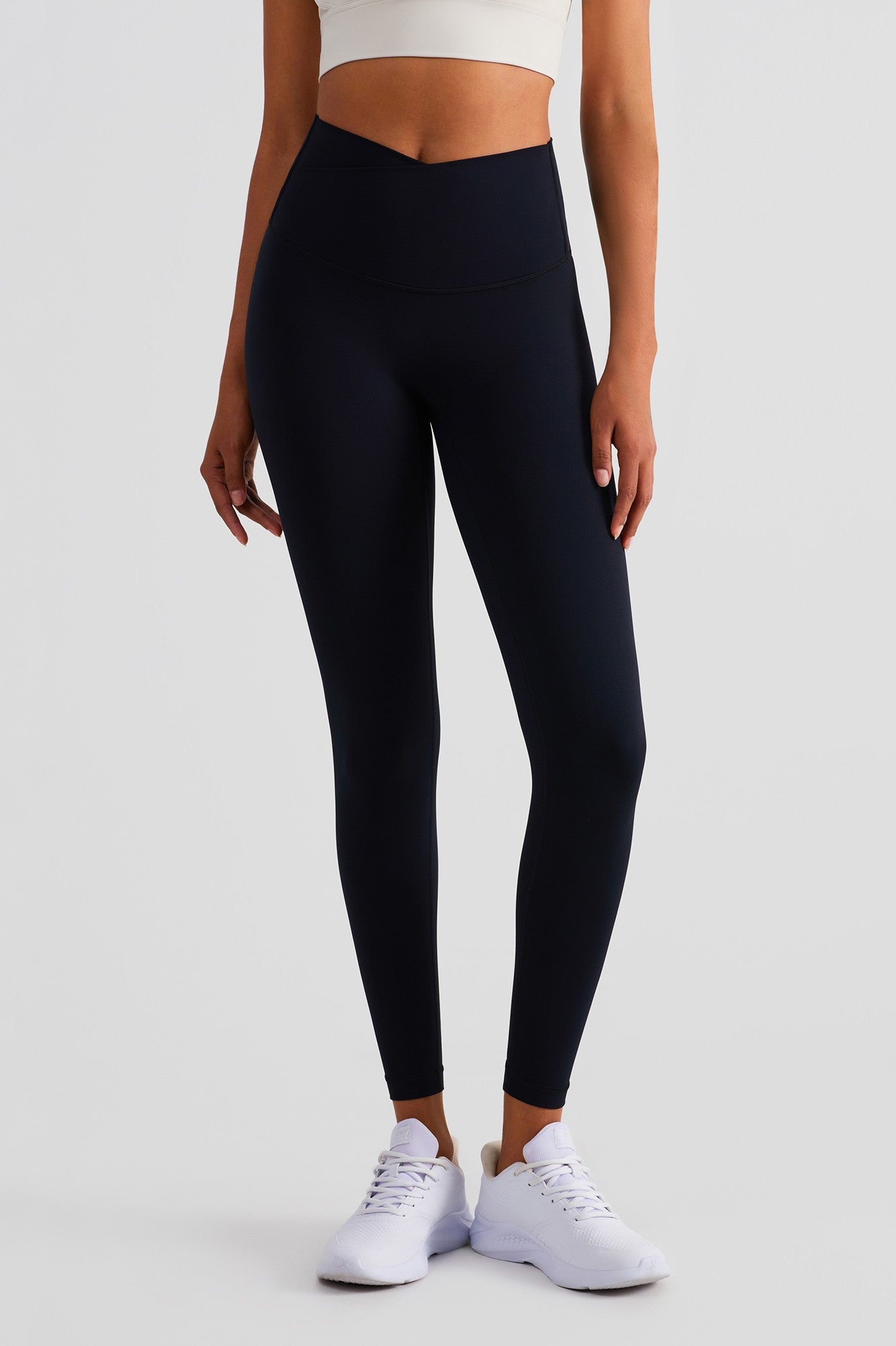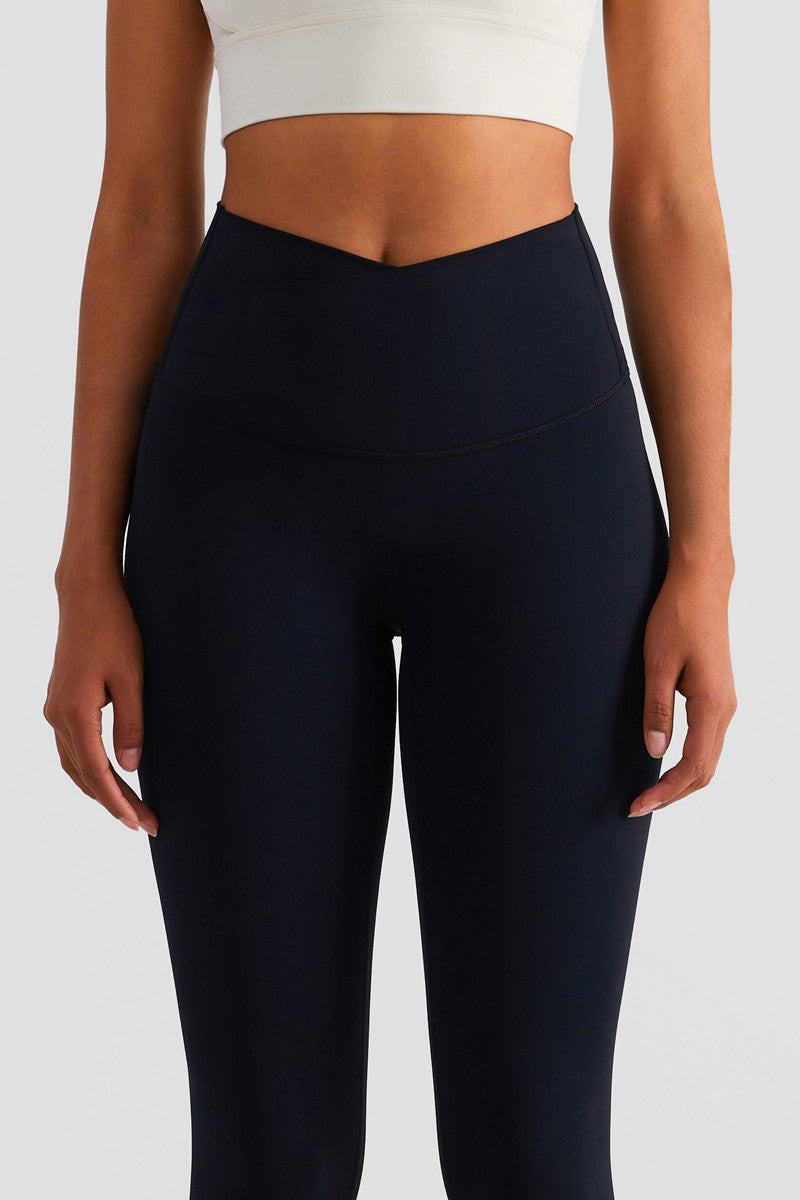 These high rise leggings featuring a flattering V cross waistband with overlapping panels at the front. The wide, elasticated waistband cinches in your waist while providing a compressive fit that will stay put while you exercise. Ideal for any exercise, they are formulated in buttery soft naked sensation fabric. you'll forget you're wearing to exercise leggings next-to-nothing sensation when you move.