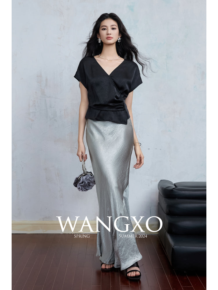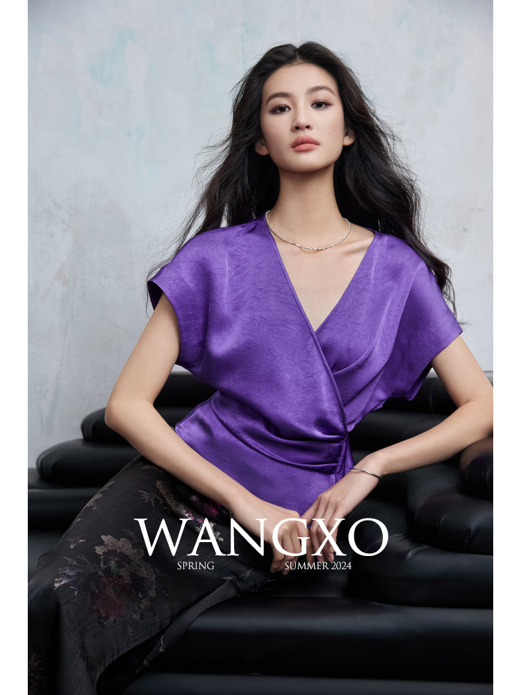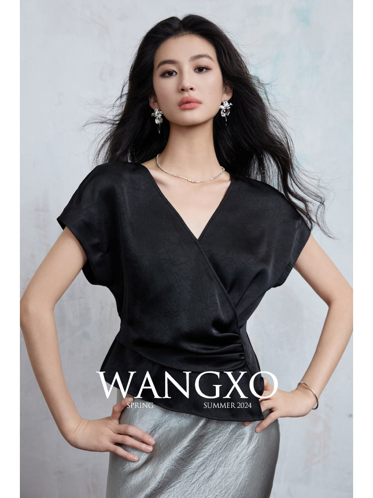 Elegant Embossed V-Neck Satin Blouse