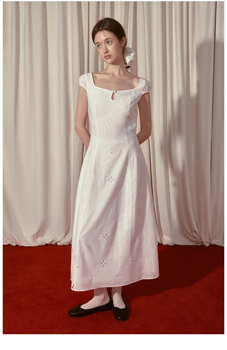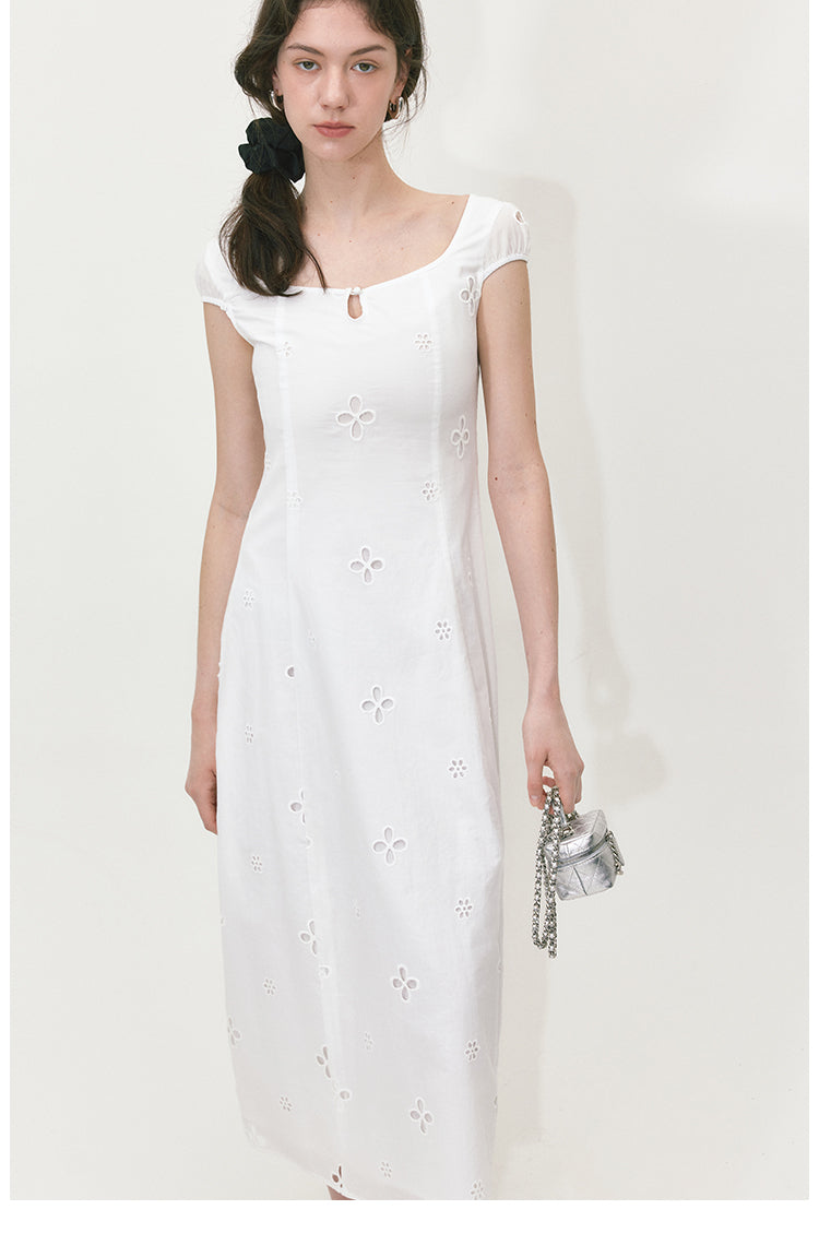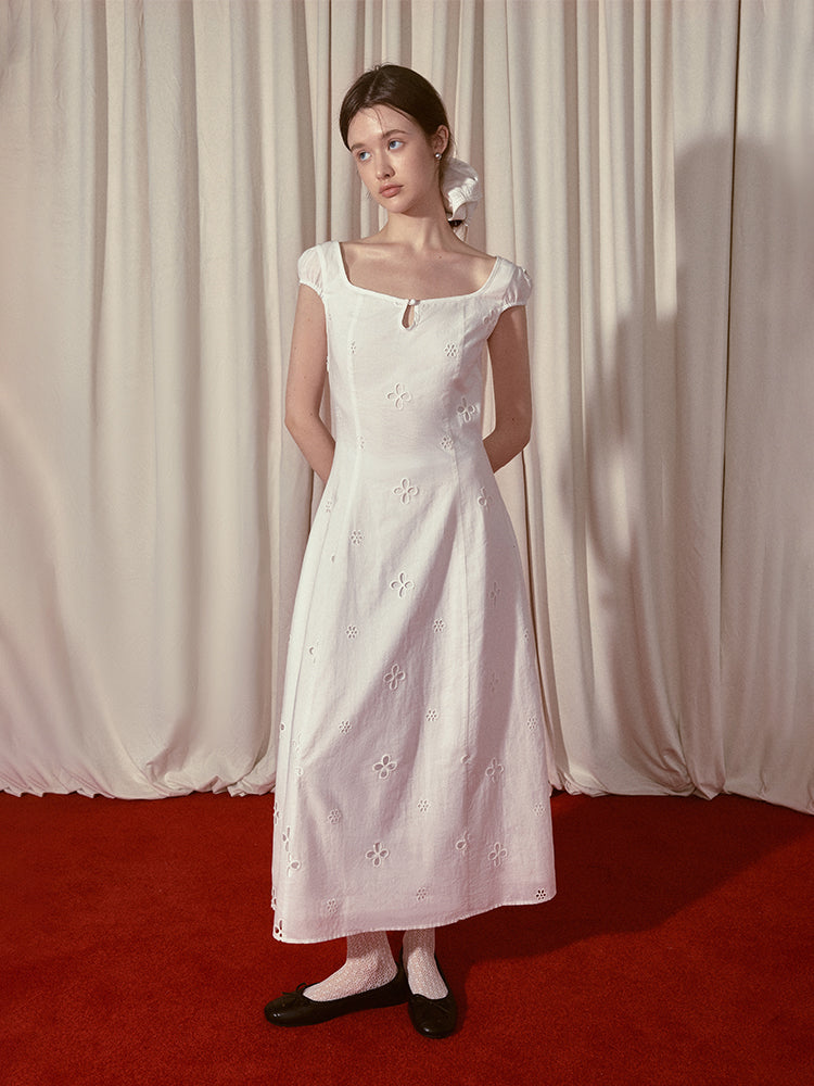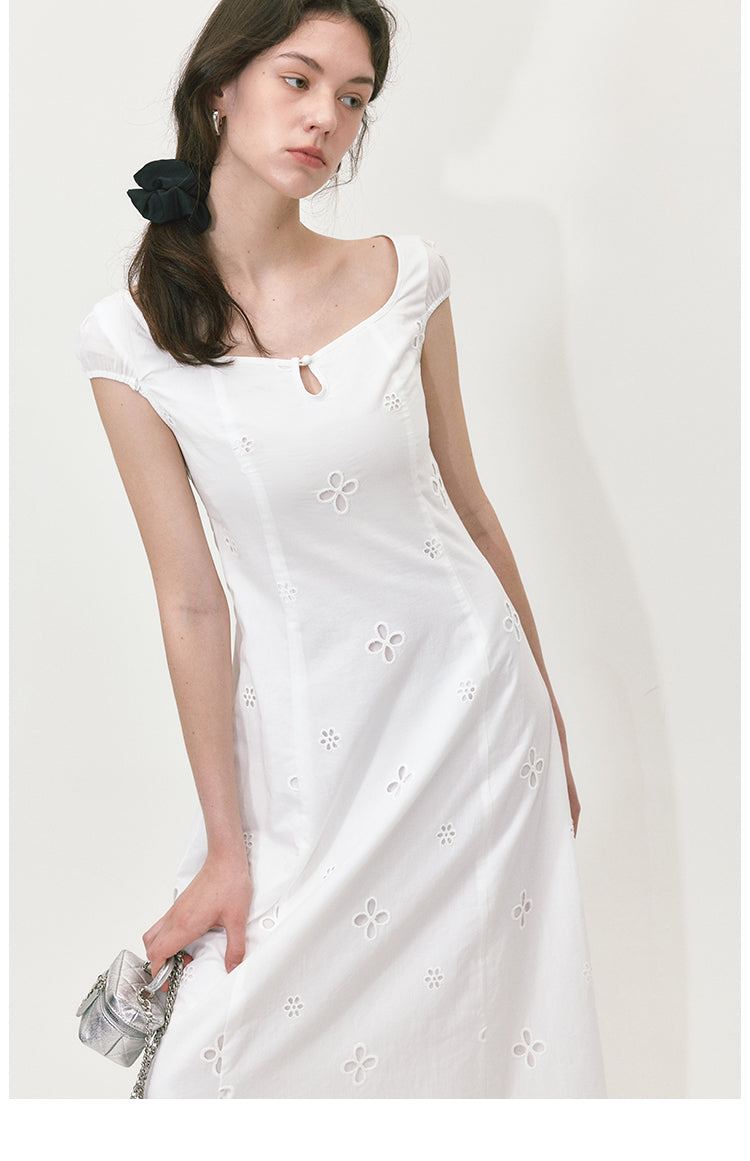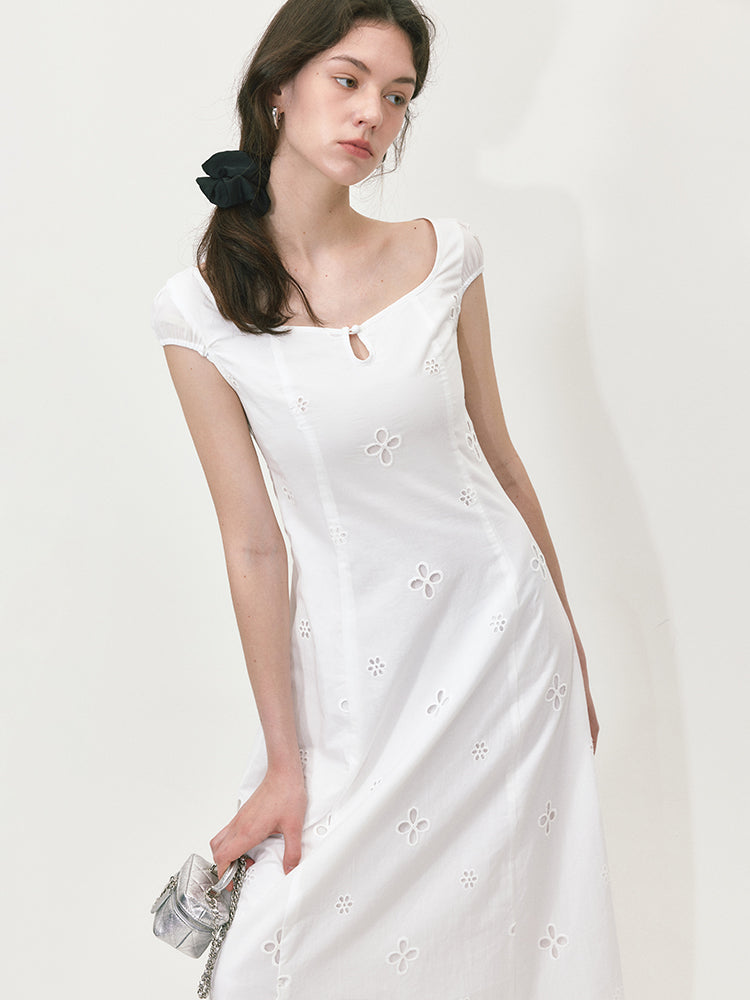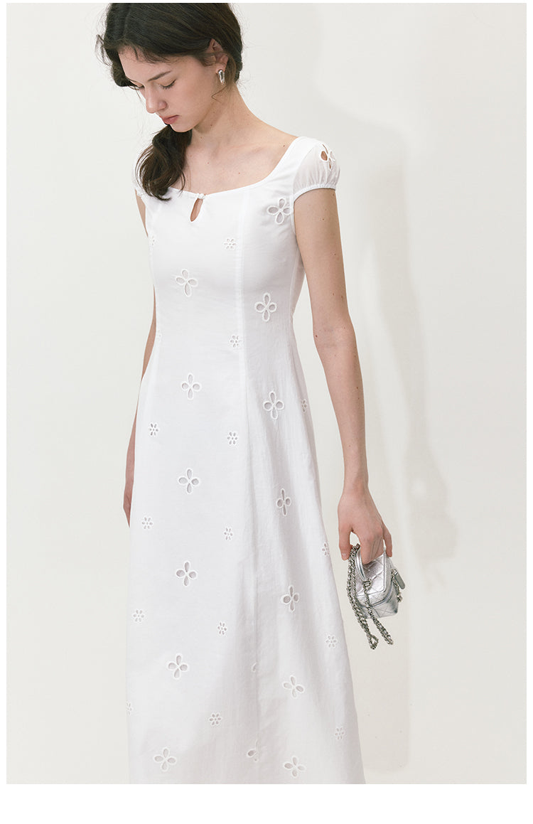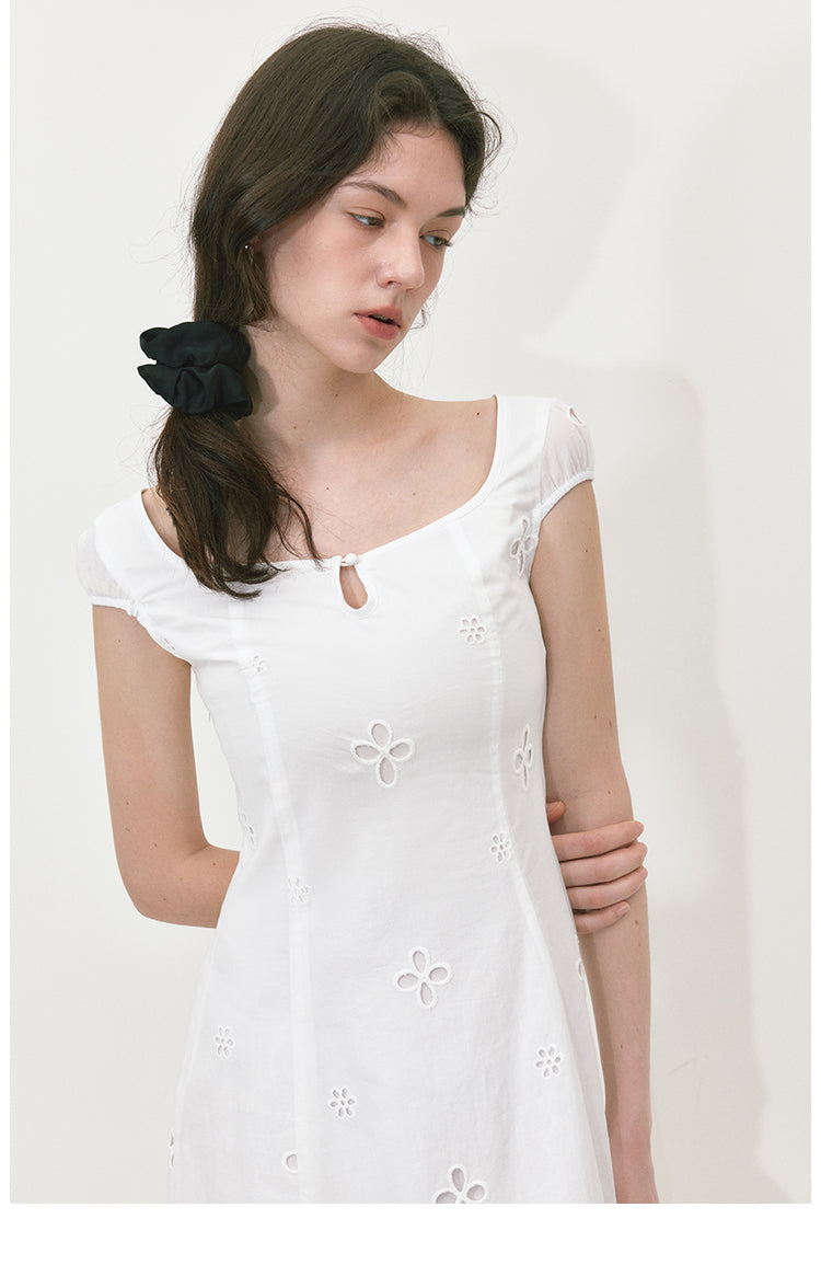 Embroidered A-line Short Sleeve Dress