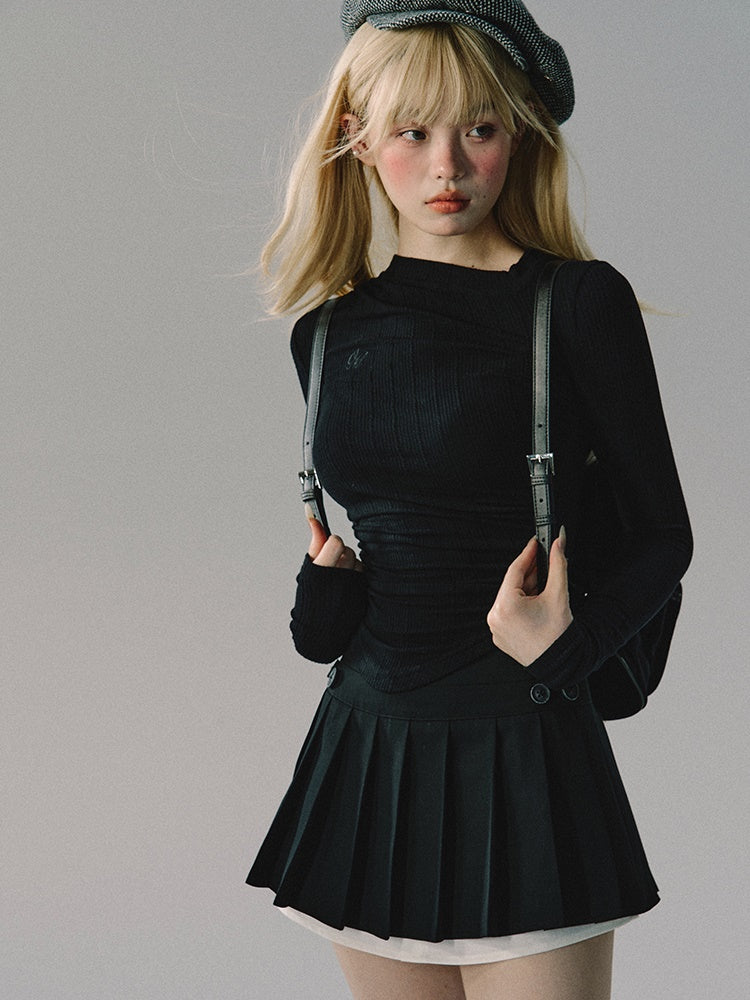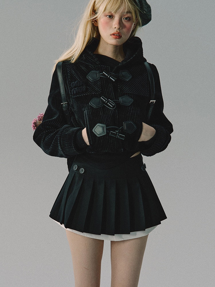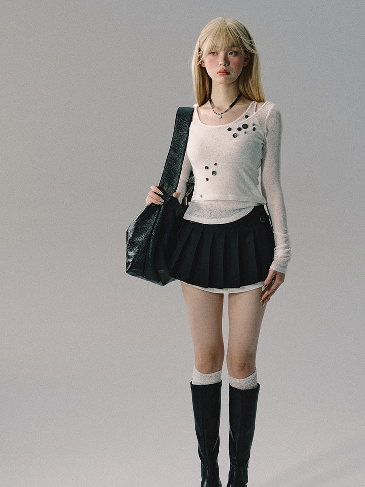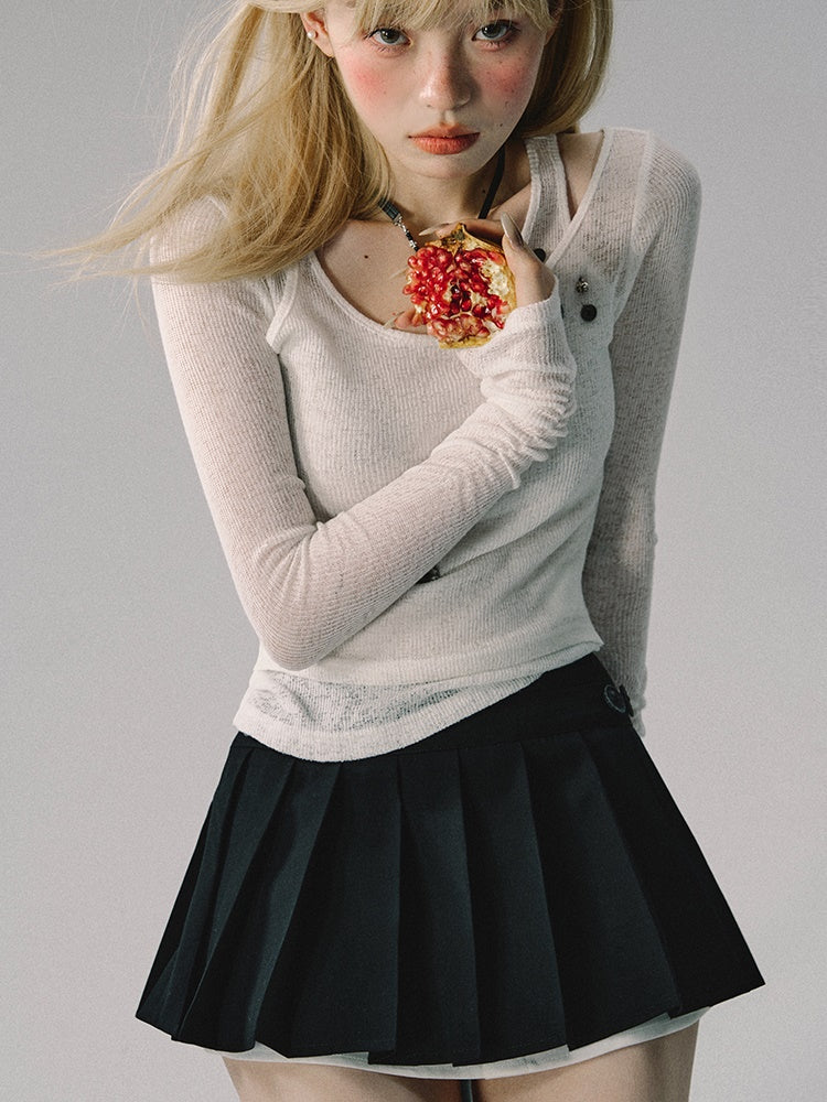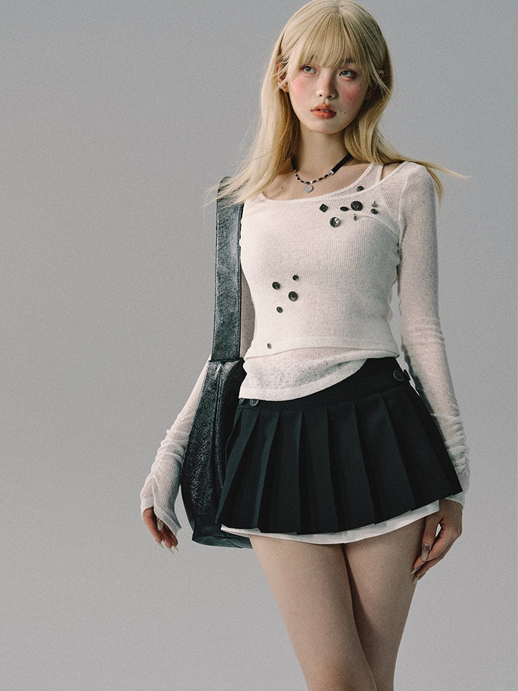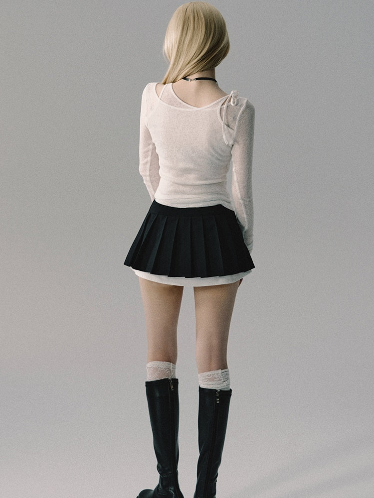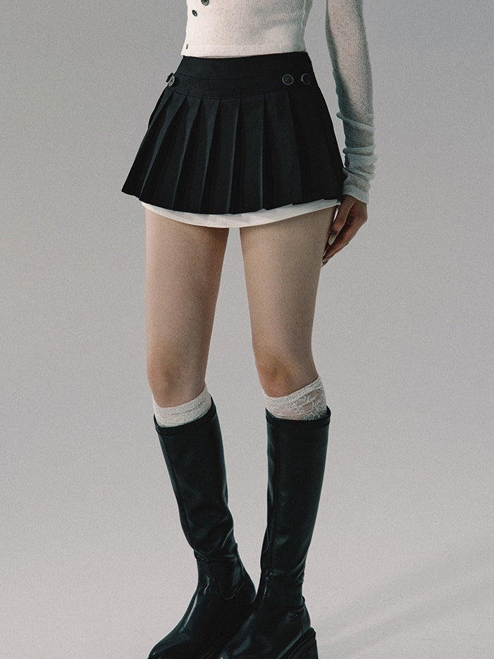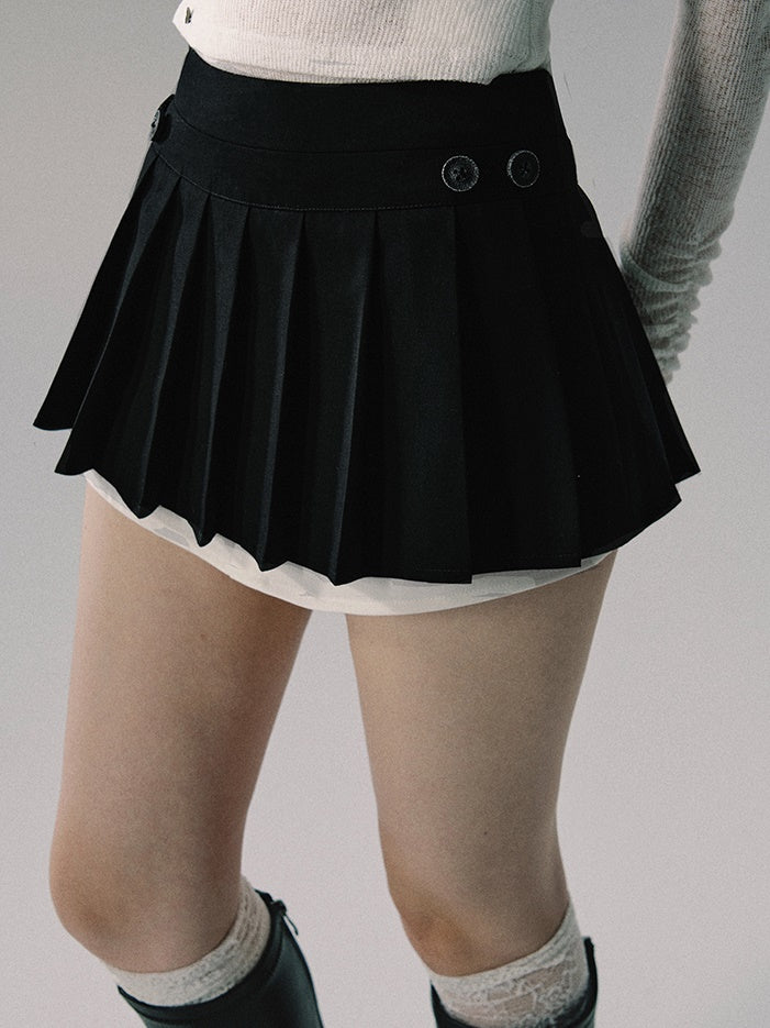Fake-Layered Pleats Short Flare Micro-Mini Skirt