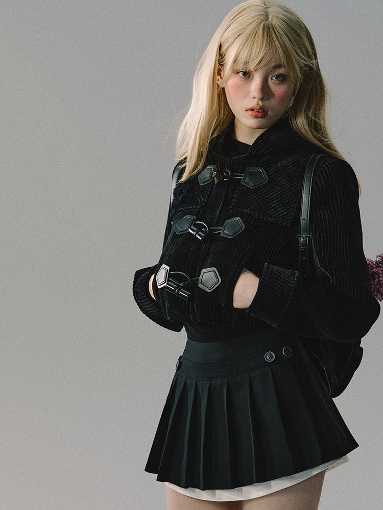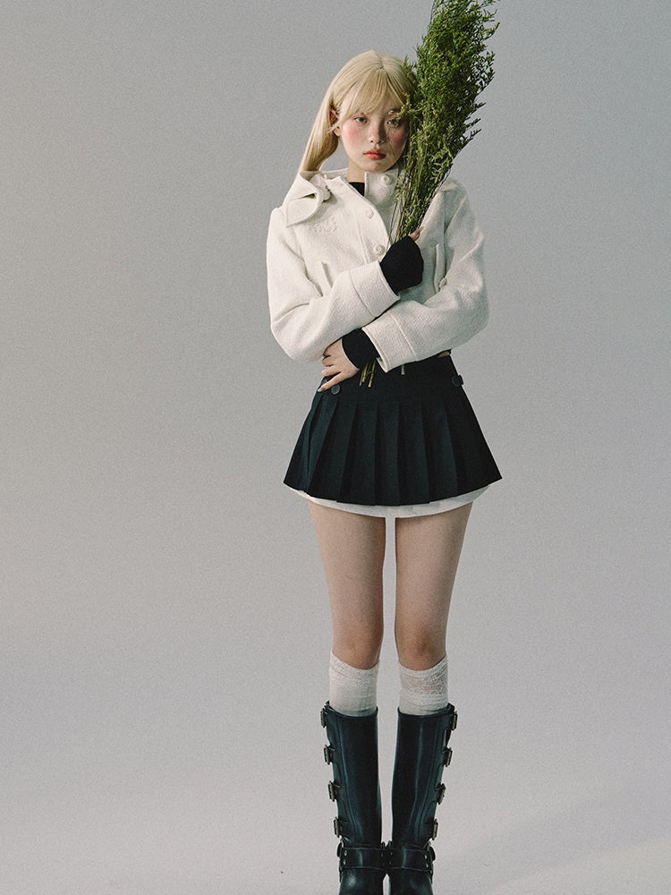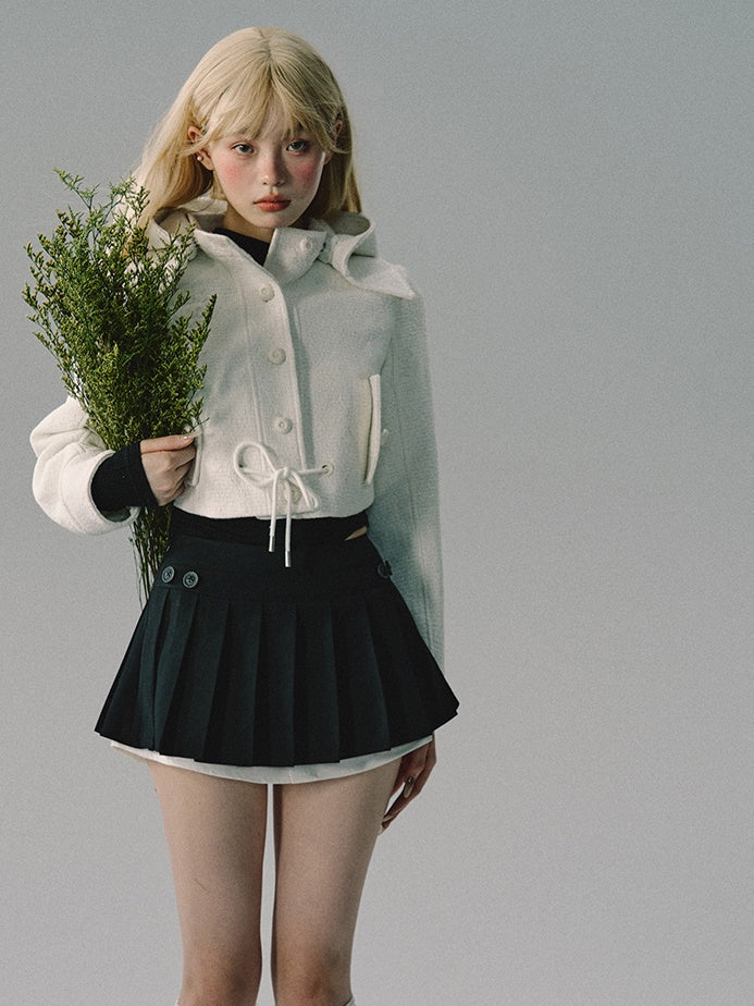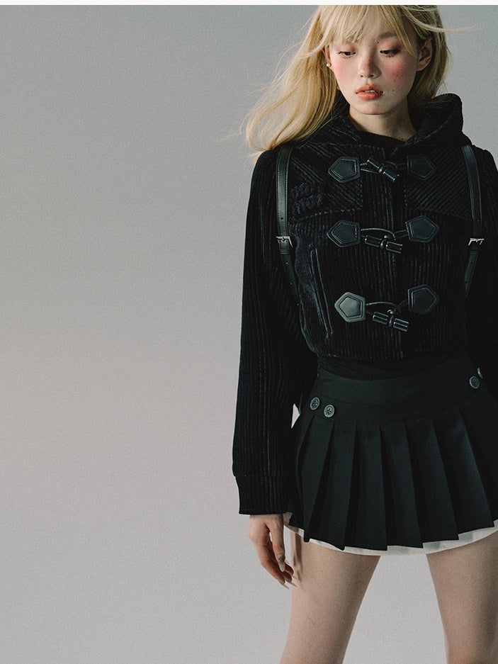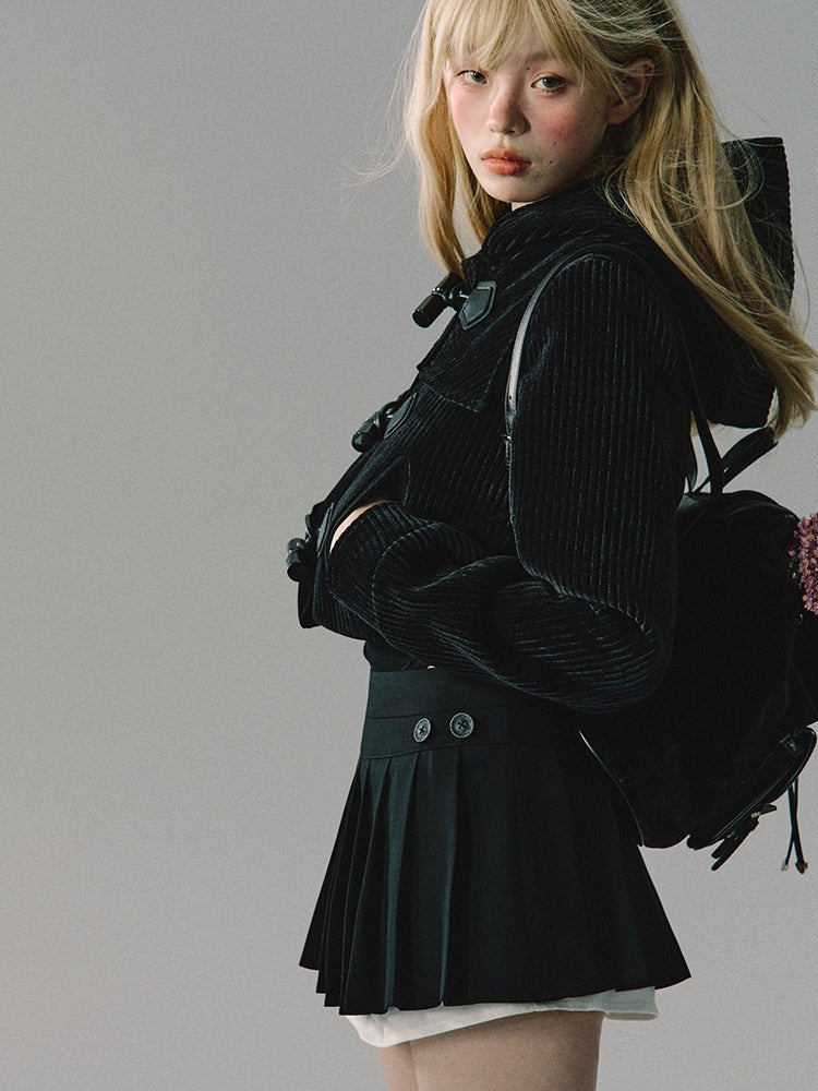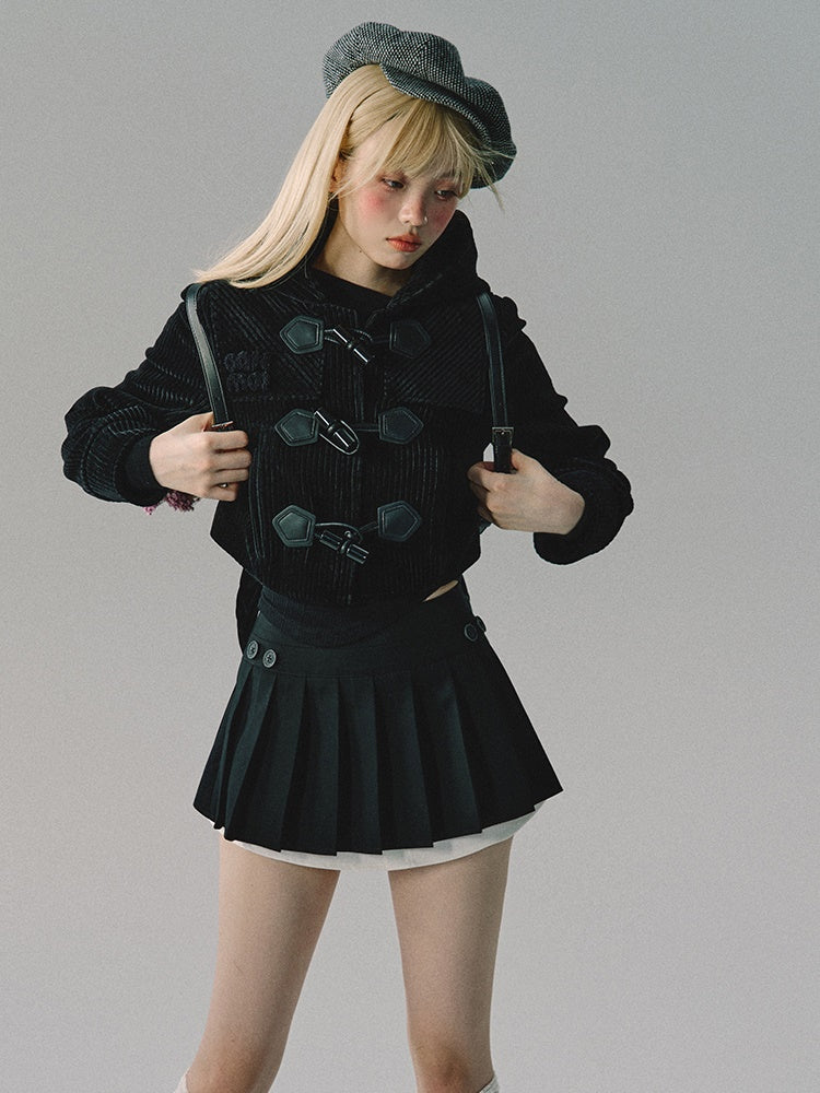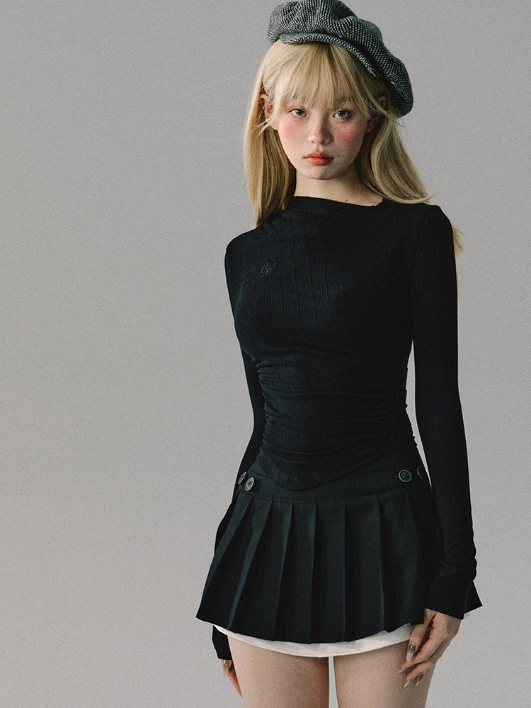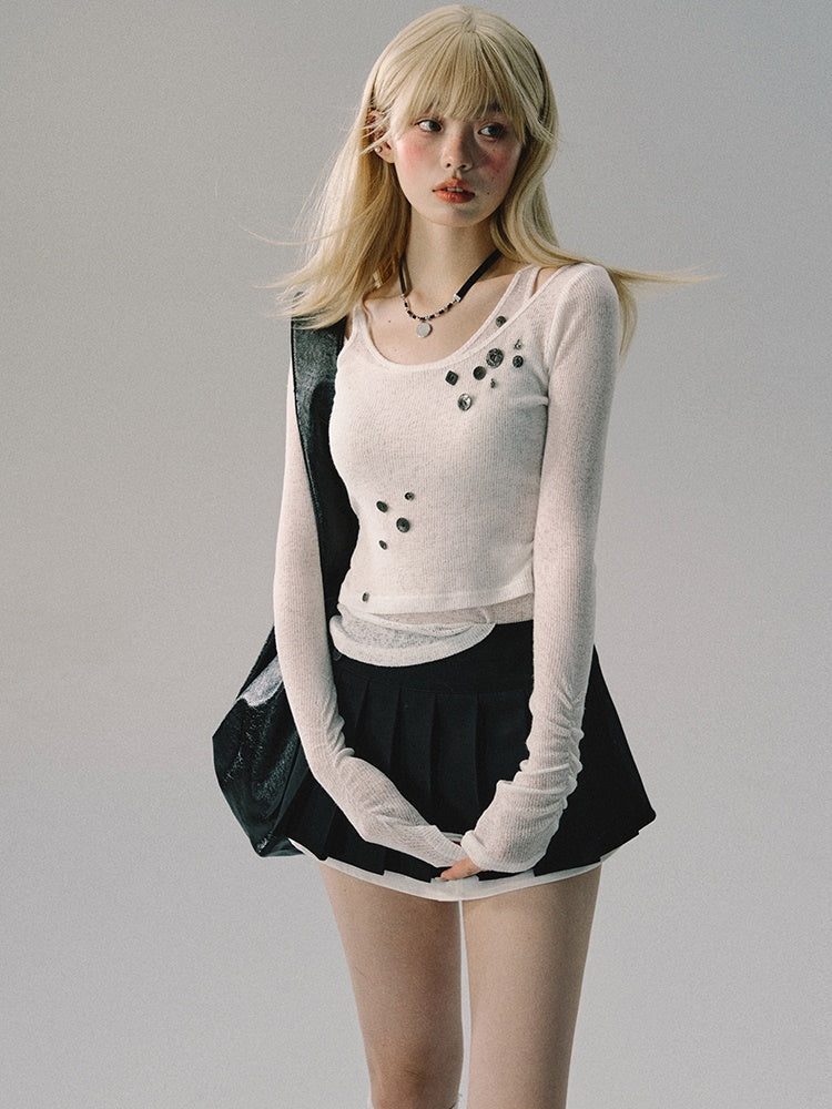 Fake-Layered Pleats Short Flare Micro-Mini Skirt