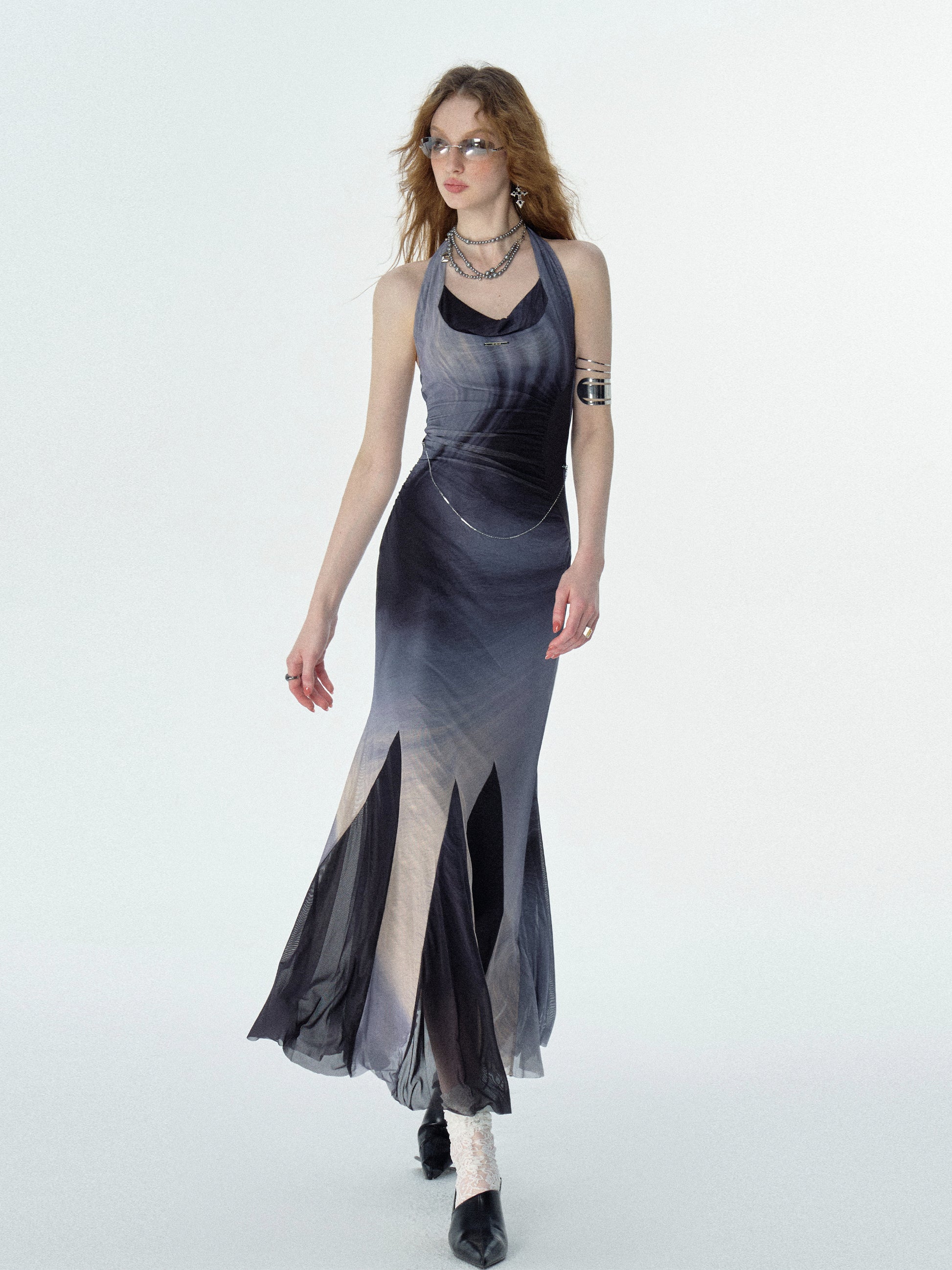 “Fatal Mermaid” Halter Neck Print Mermaid Dress