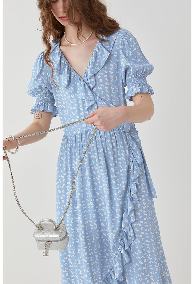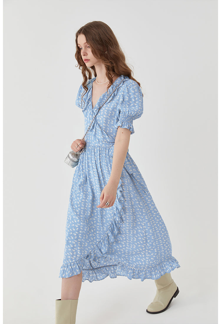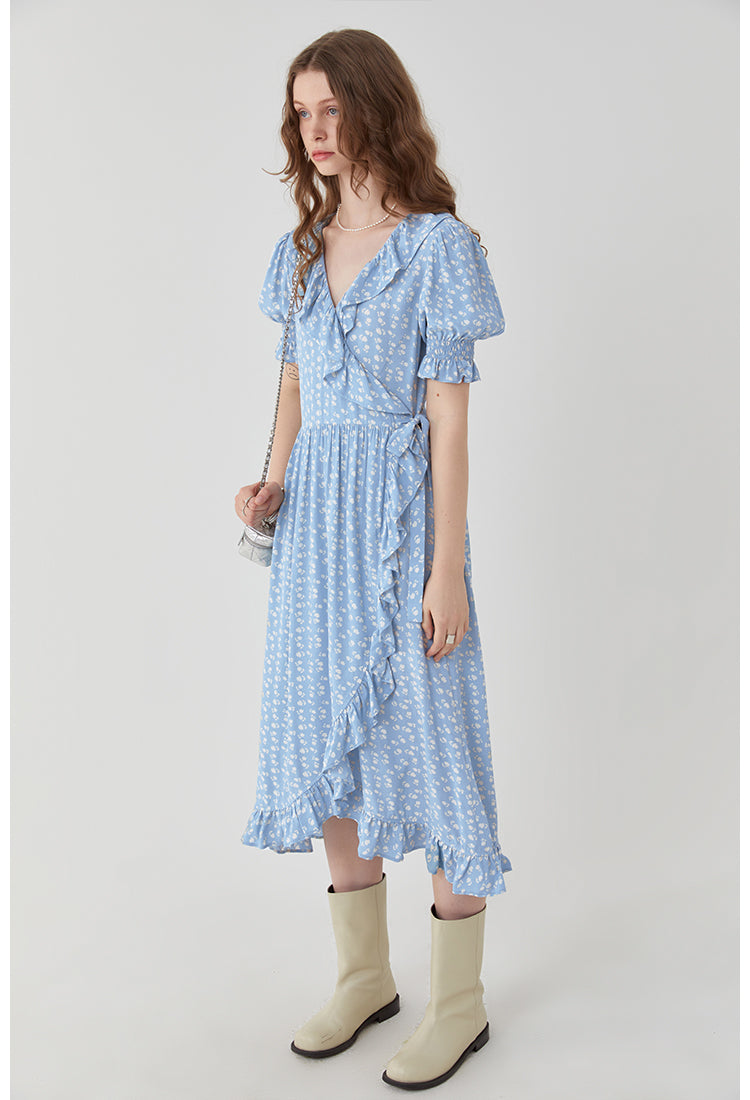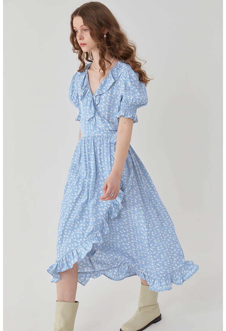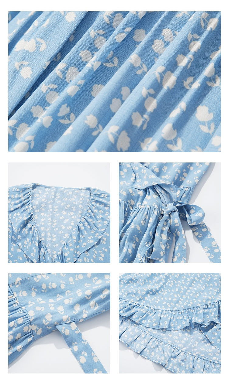 Floral Waist-Cinching Bubble Sleeve Maxi Dress
