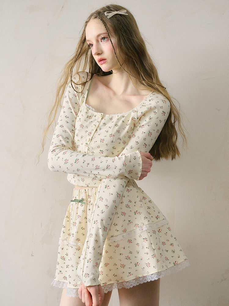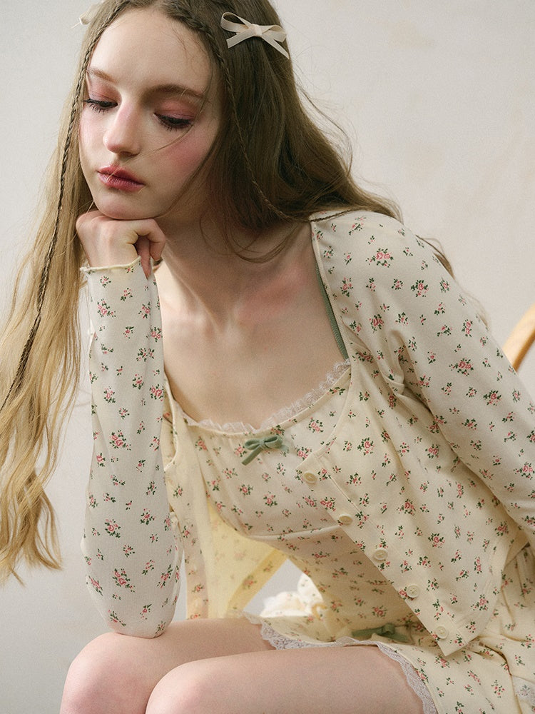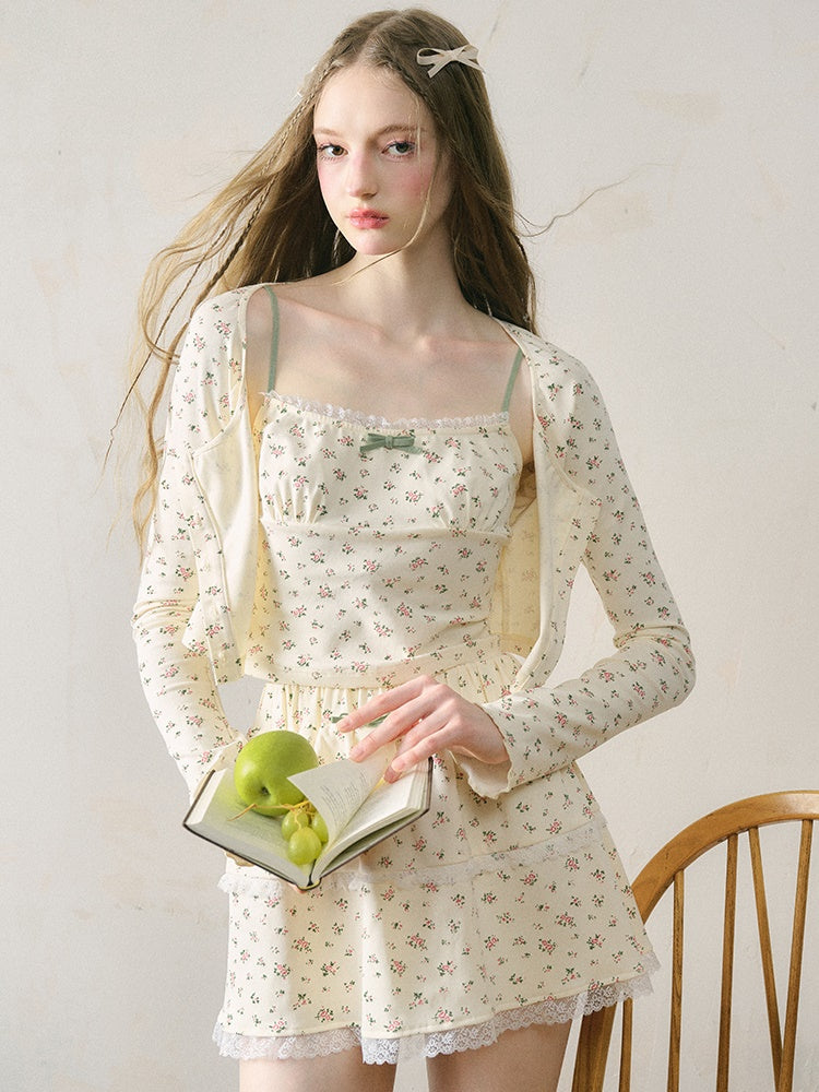 French Floral Girly Camisole & Cropped Cardigan & Skirt