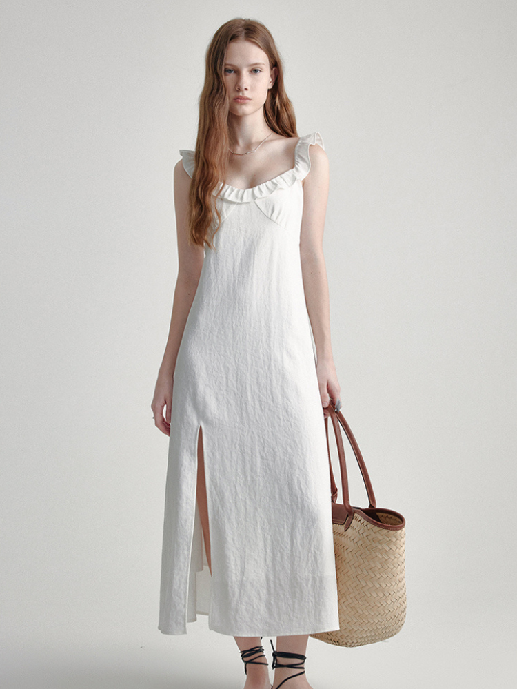 French Ruffle Split Maxi Dress