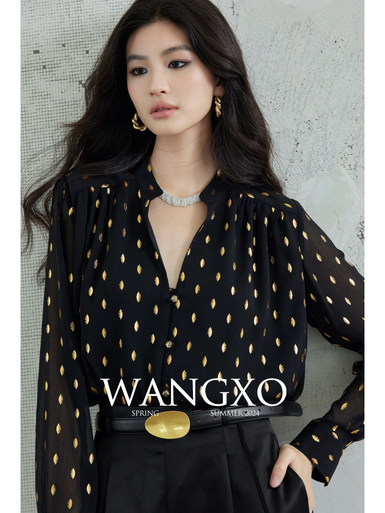 Gold Leaf Chiffon Blouse