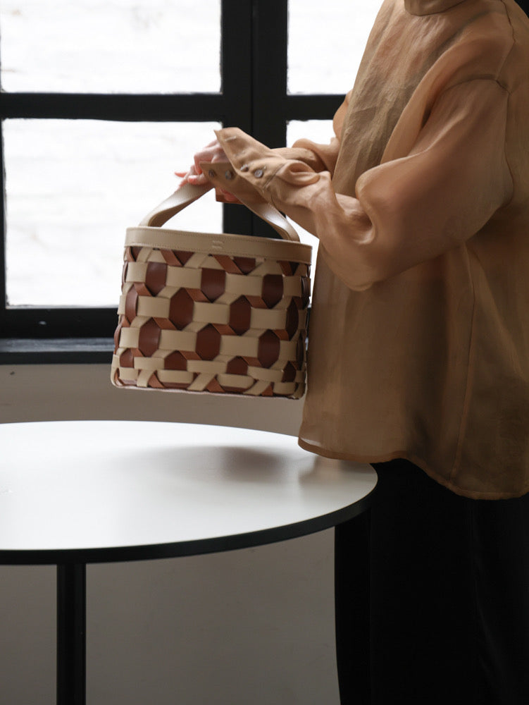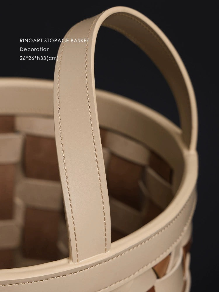 Hand-Woven Two-Tone Top-Layer Saddle Leather Dirty Clothes Storage Basket