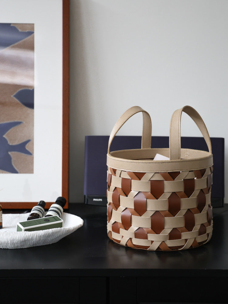 With its high capacity, this product is not only a storage basket or a laundry hamper, it can also function as a handbag, a short-trip travel bag, or even a shopping tote. Designed with first-class top-layer saddle leather and a meticulous weaving process, it ensures durability while adding a sophisticated touch to your style.
