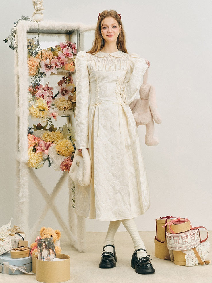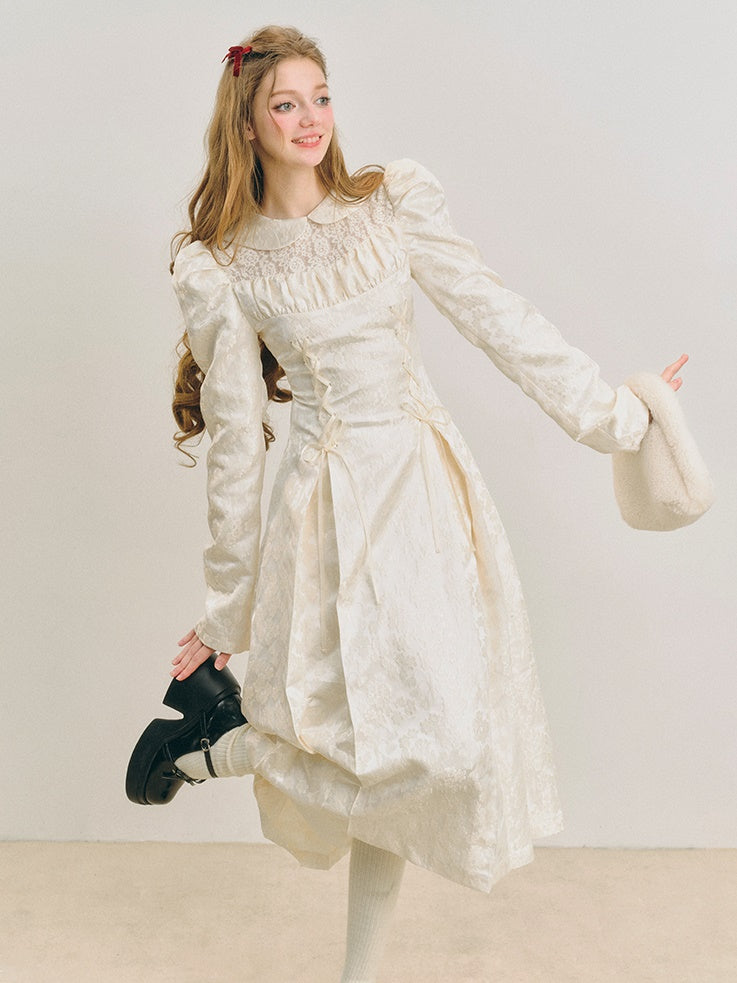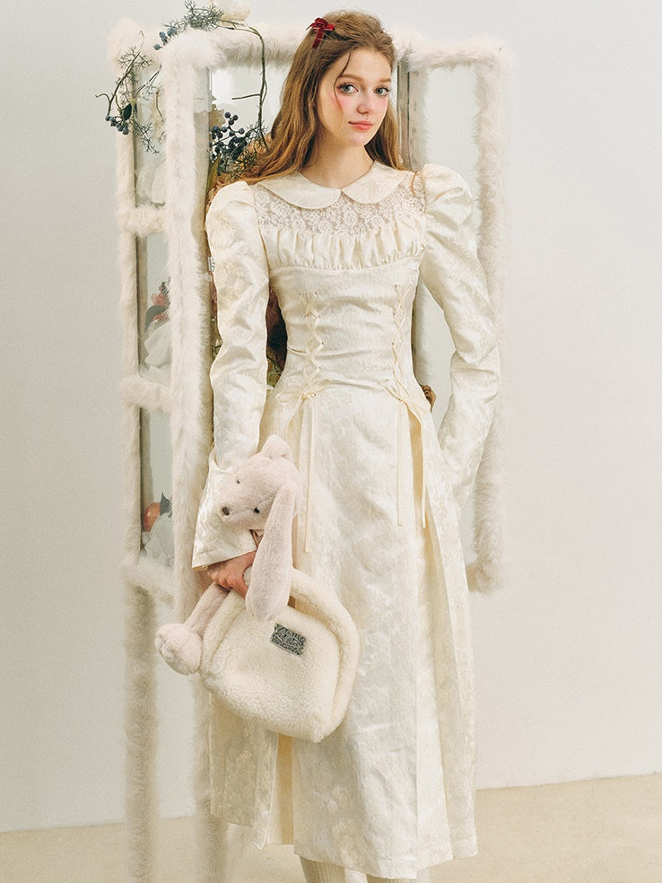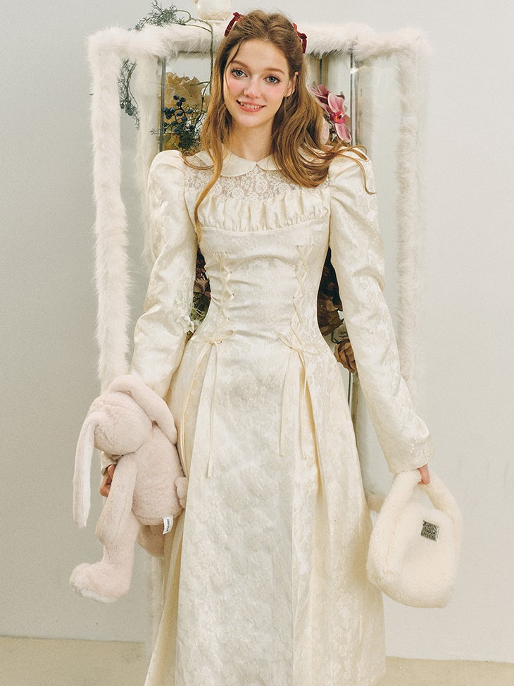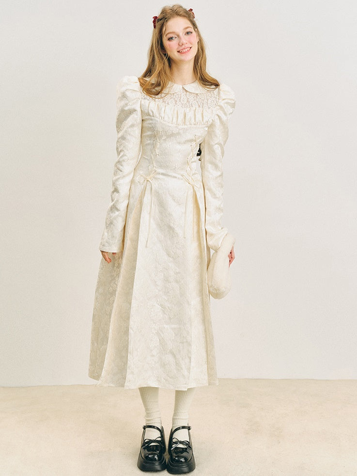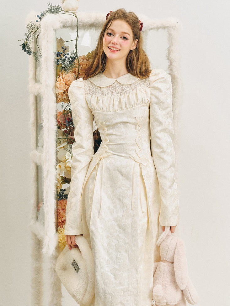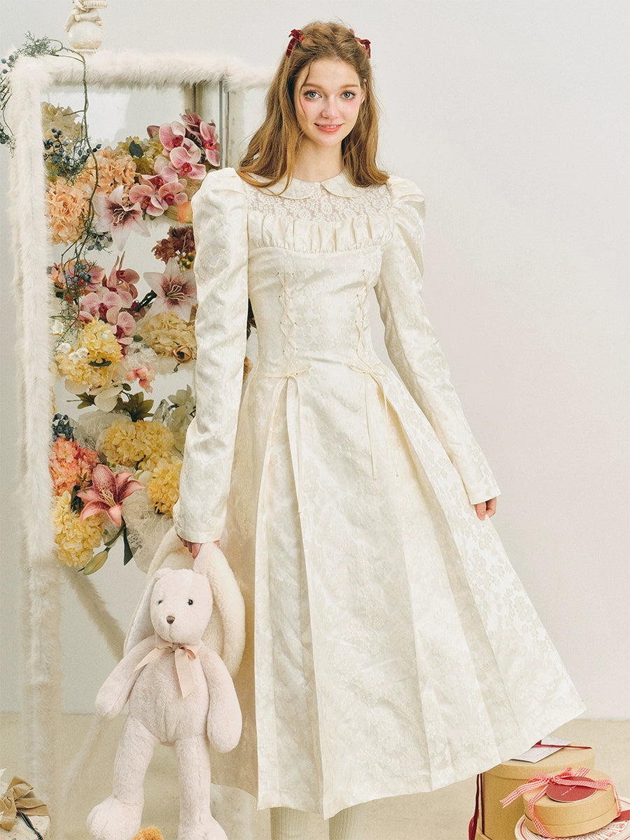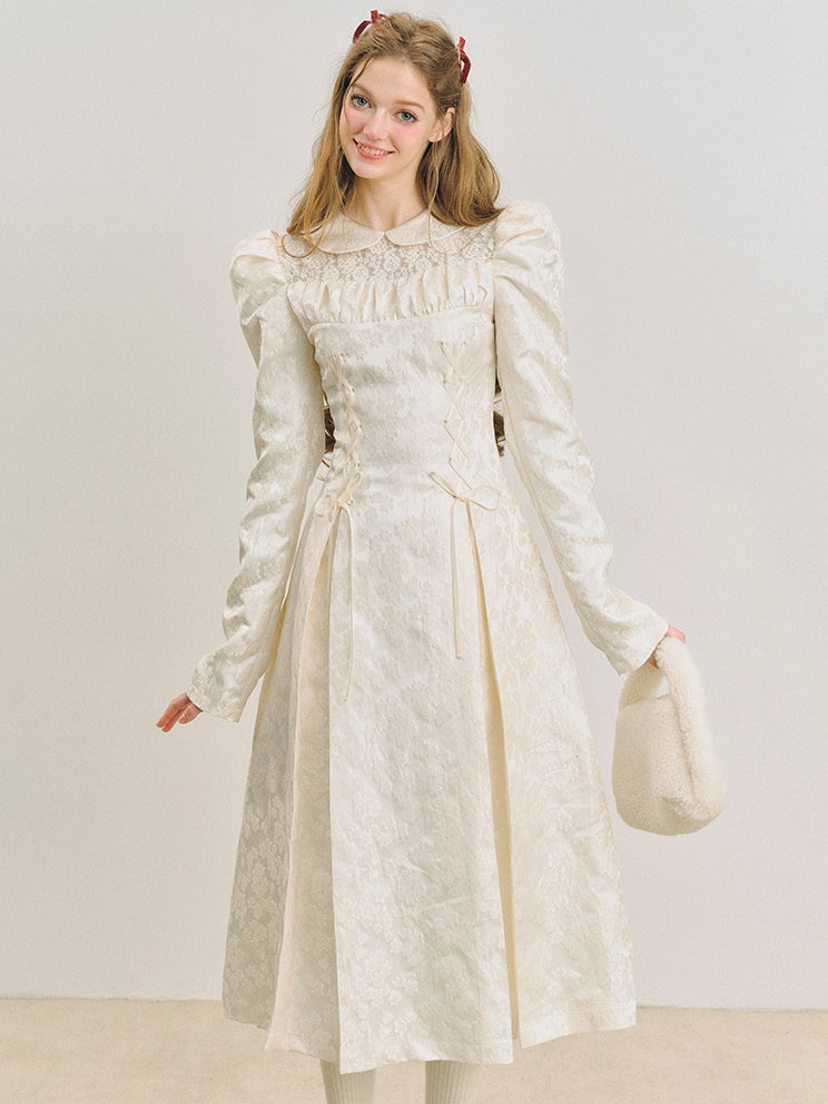 Jacquard Lace-Up Tuck Pleated Dress