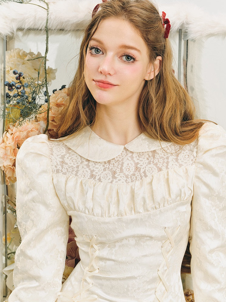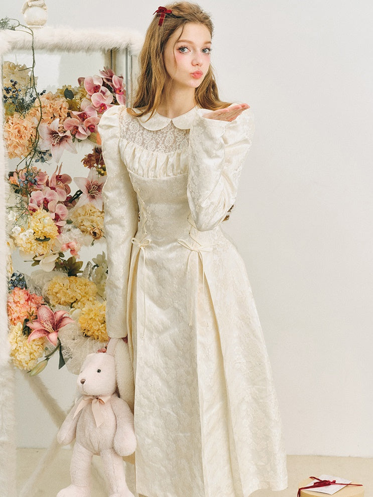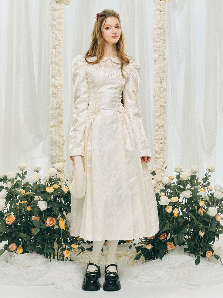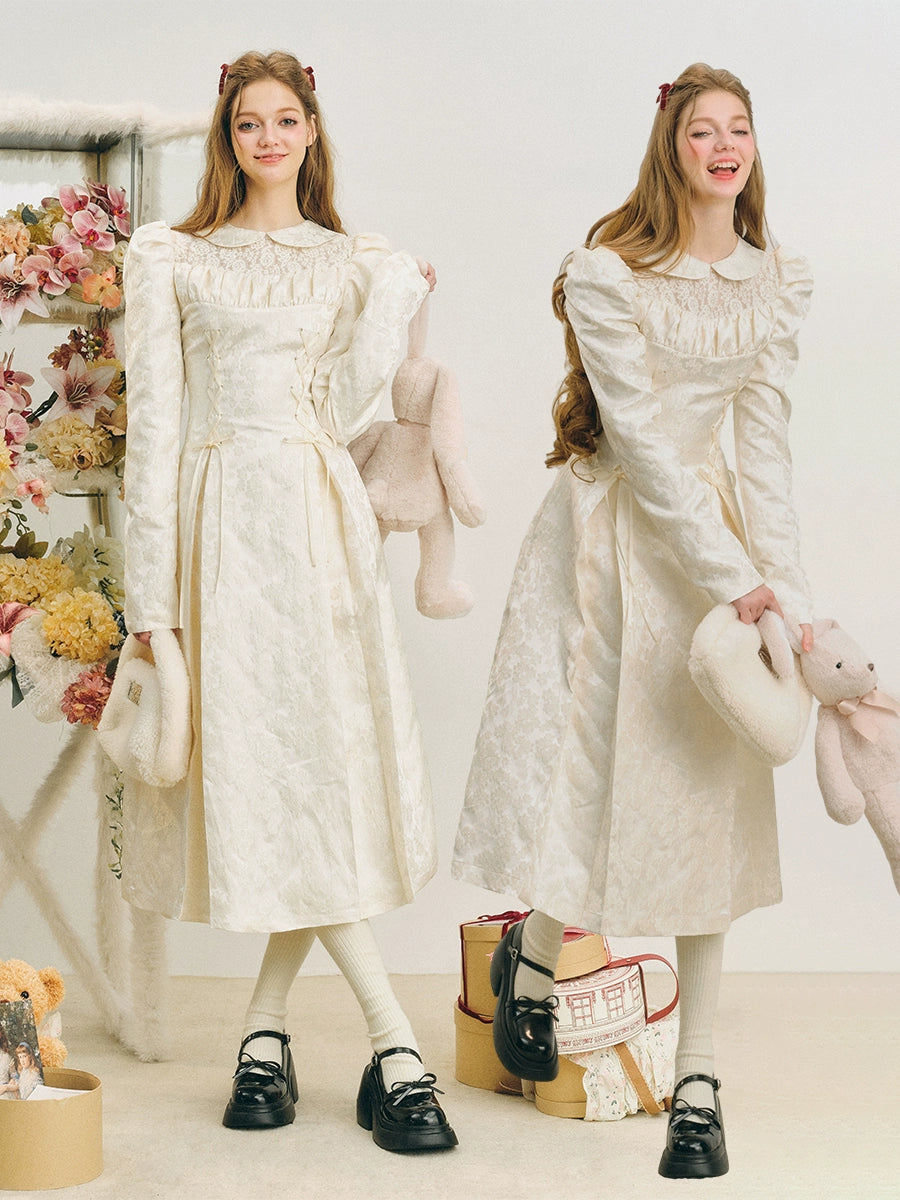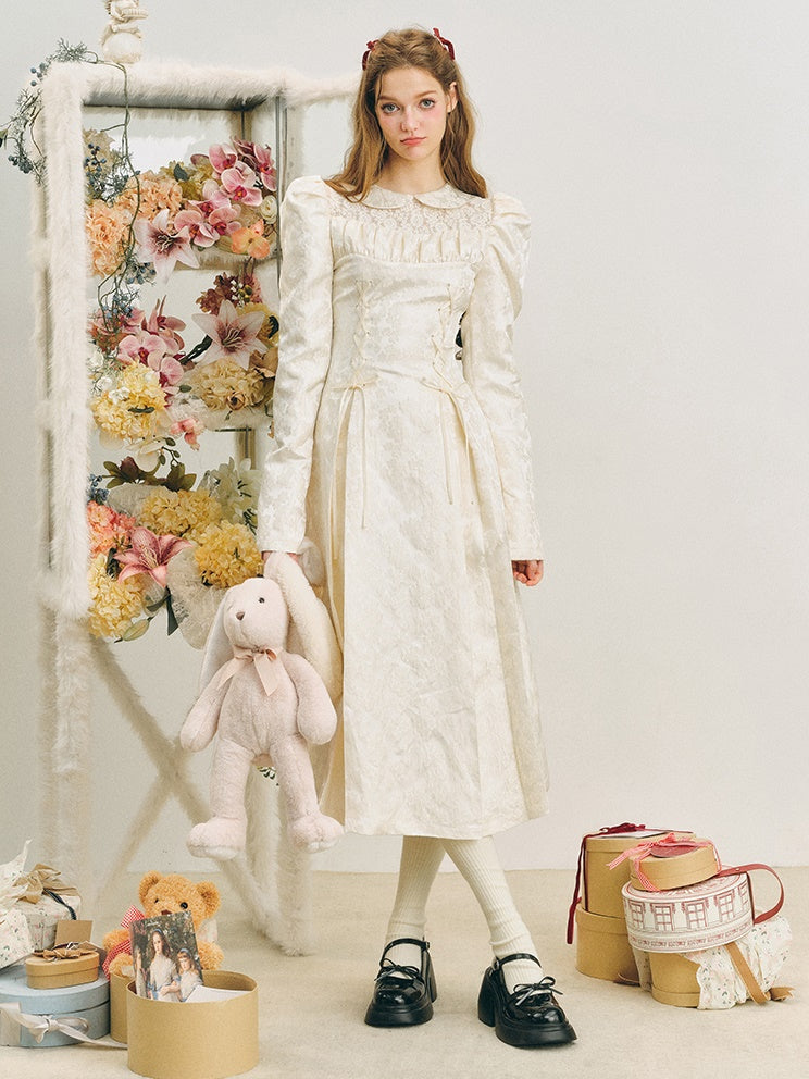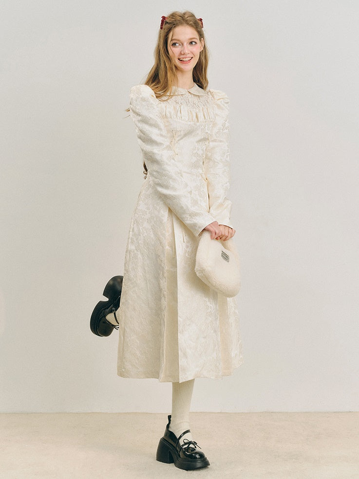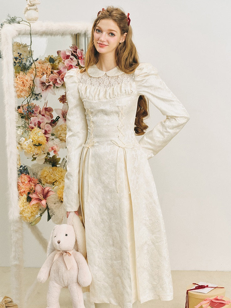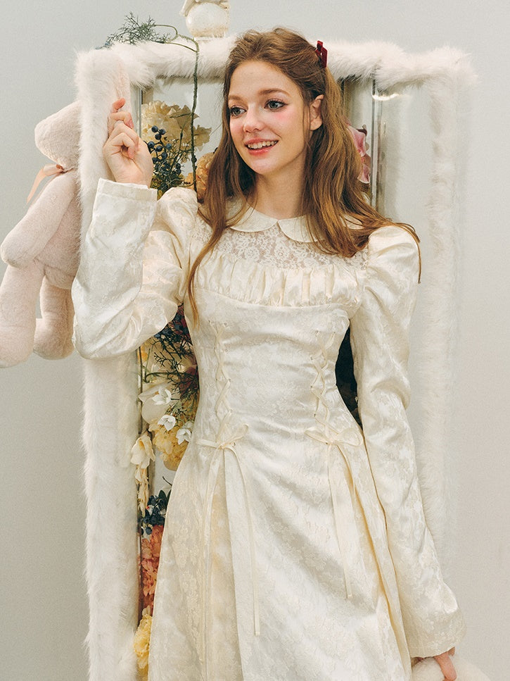 Jacquard Lace-Up Tuck Pleated Dress