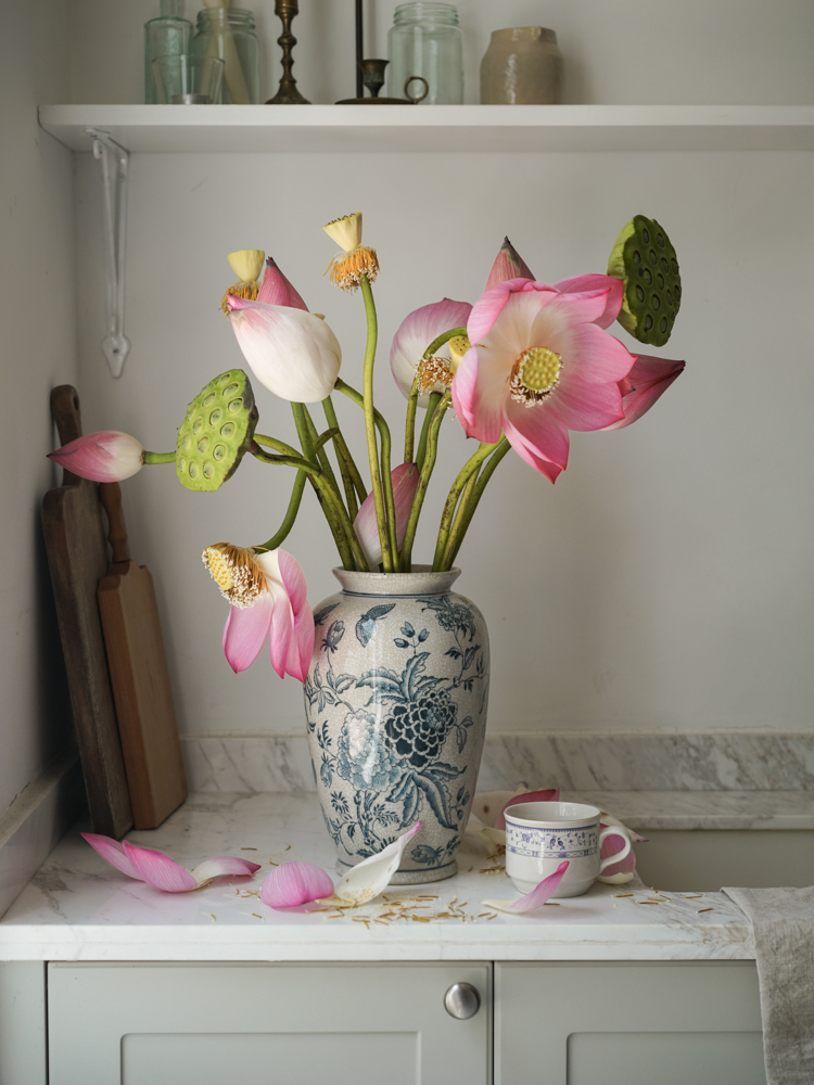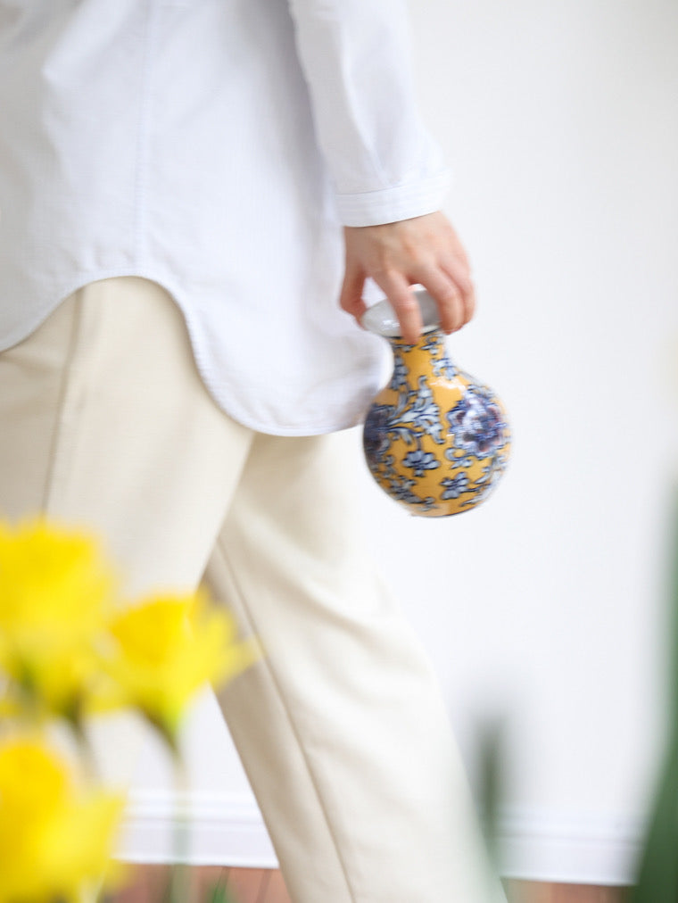 Inspired by the home of Valentino's founder, this piece embodies his fascination and longing for the East, evident in his extensive collection of blue and white porcelain artifacts.