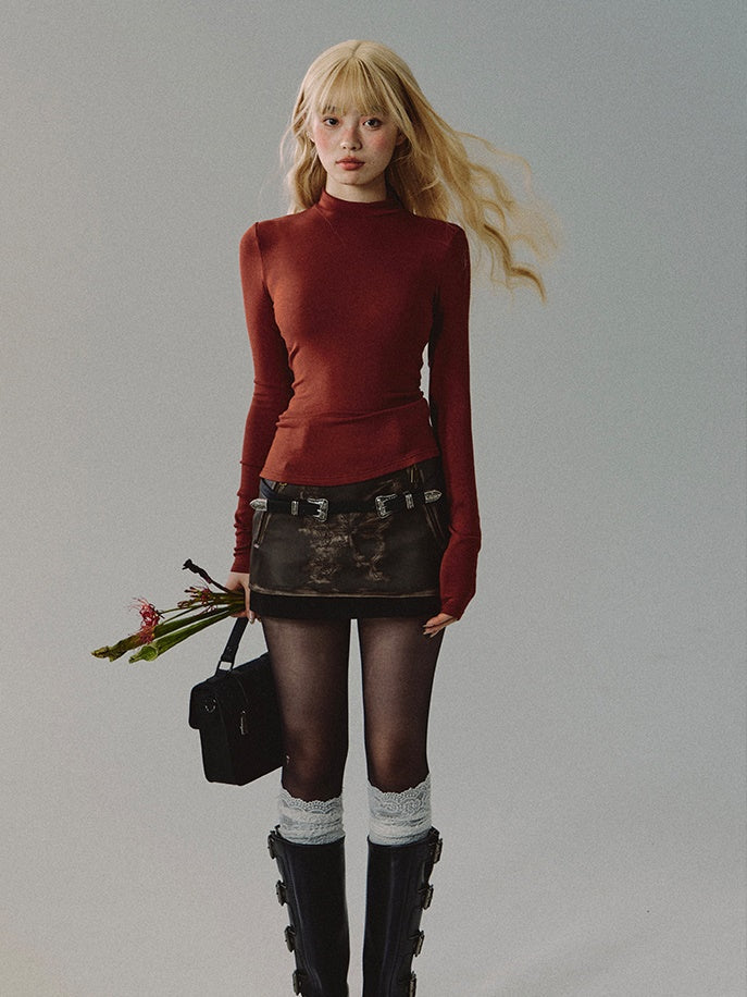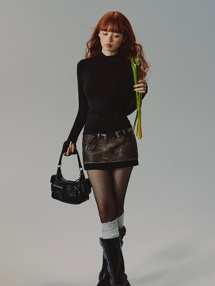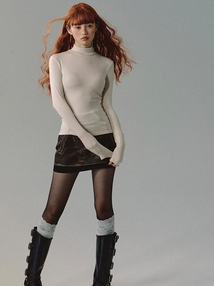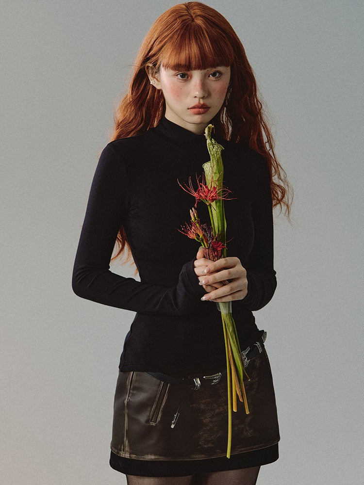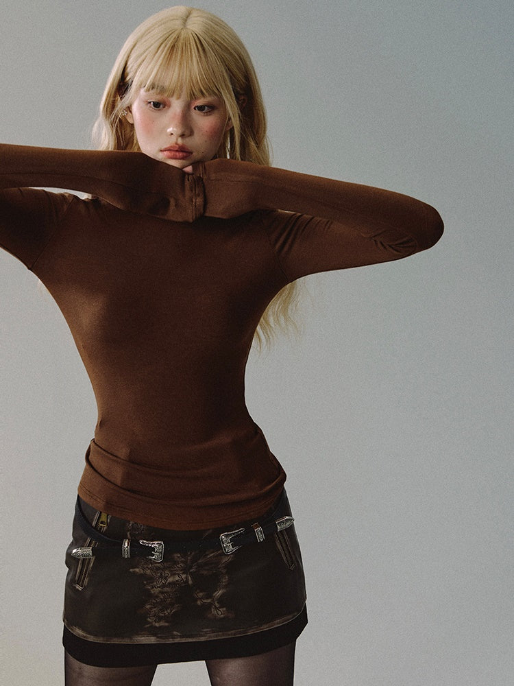 Knit Bottle-Neck Thin Simple Plain Simple Cutsew