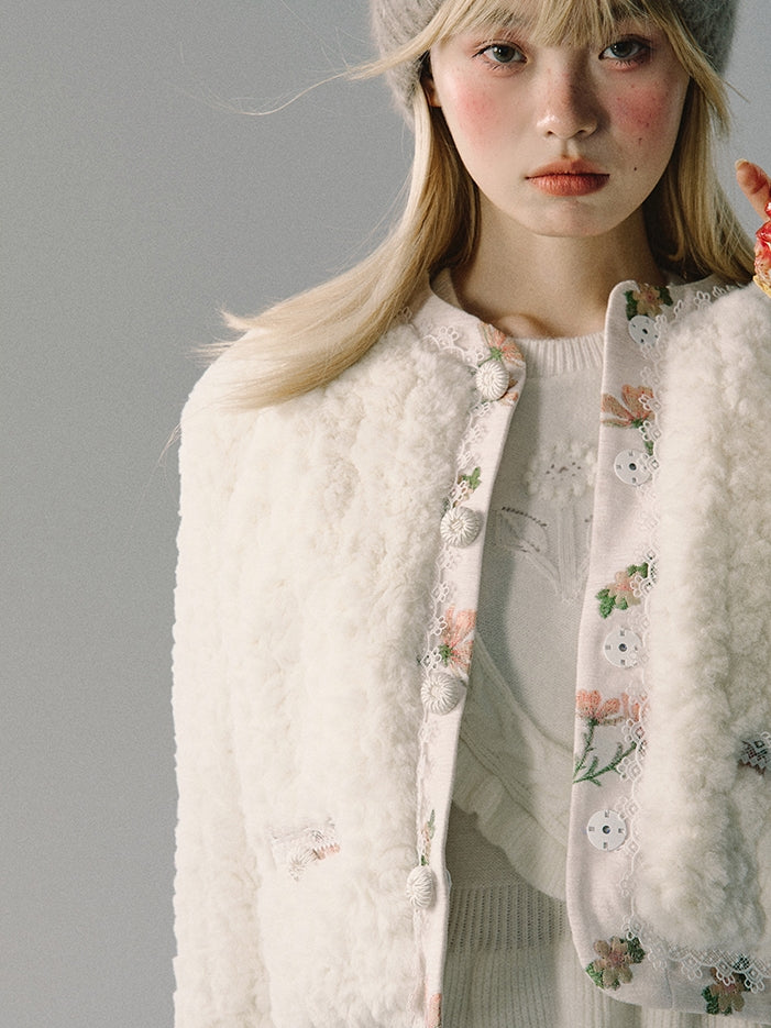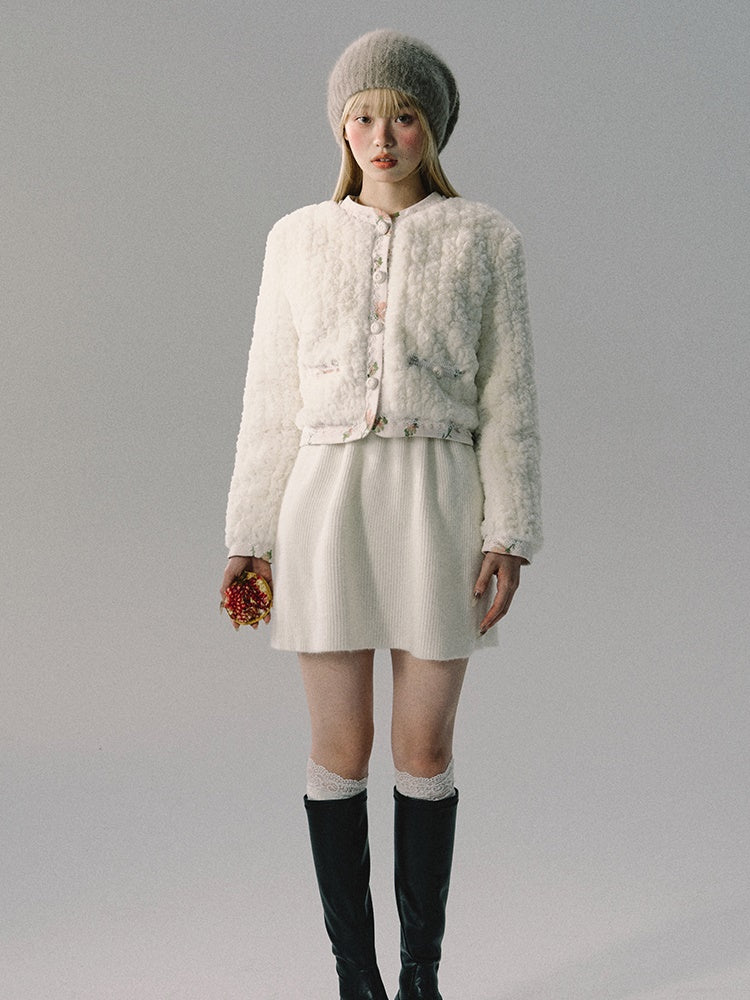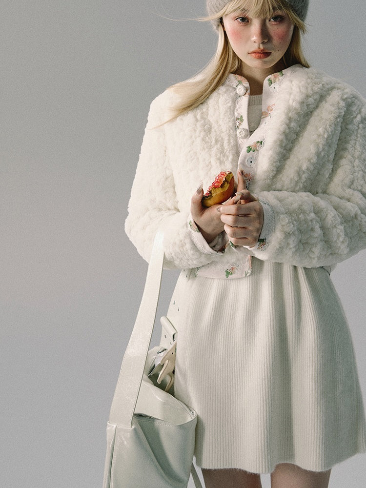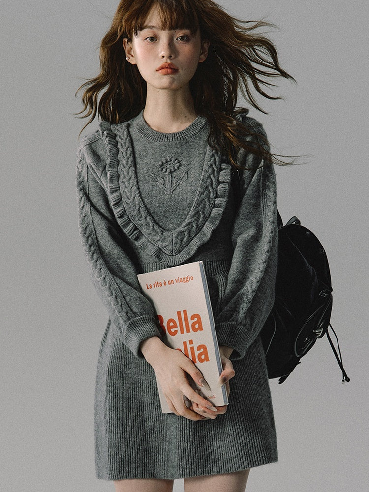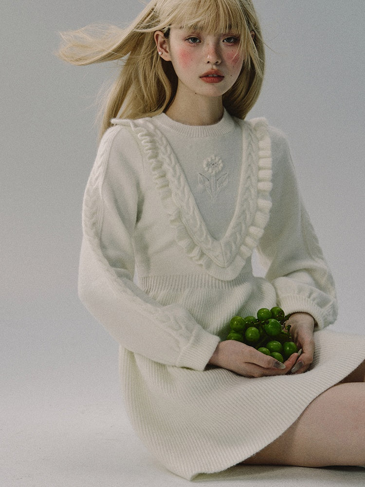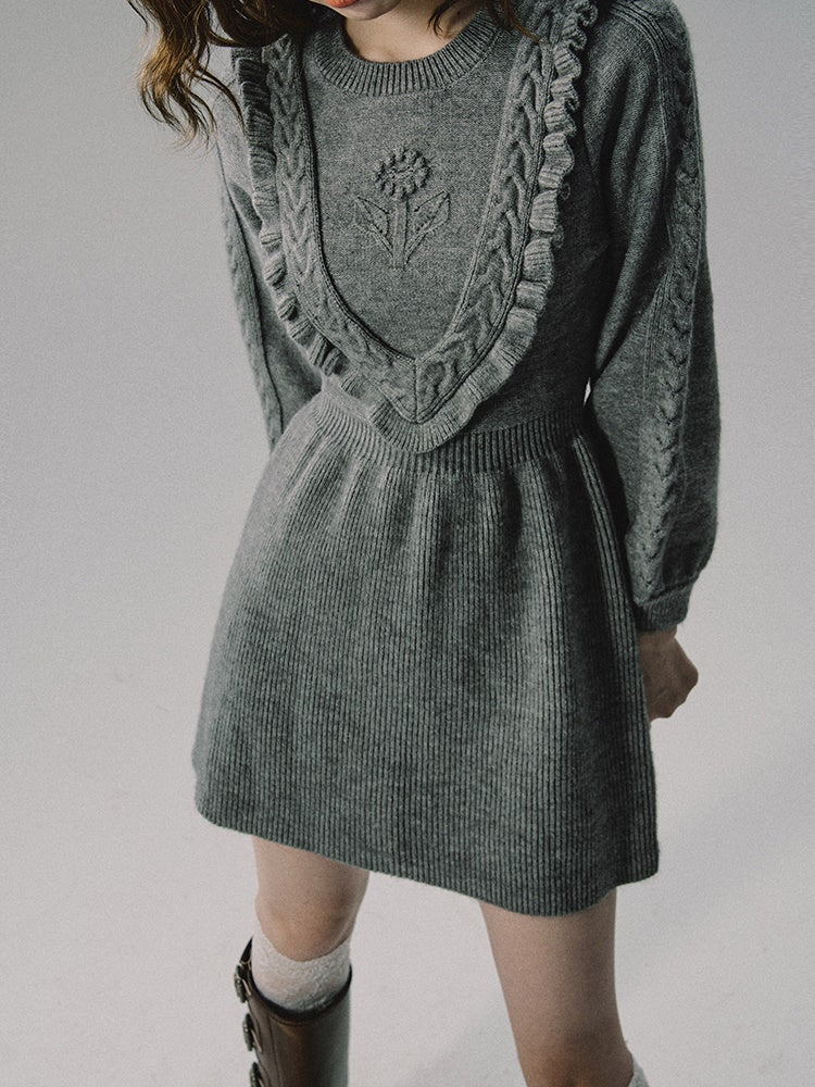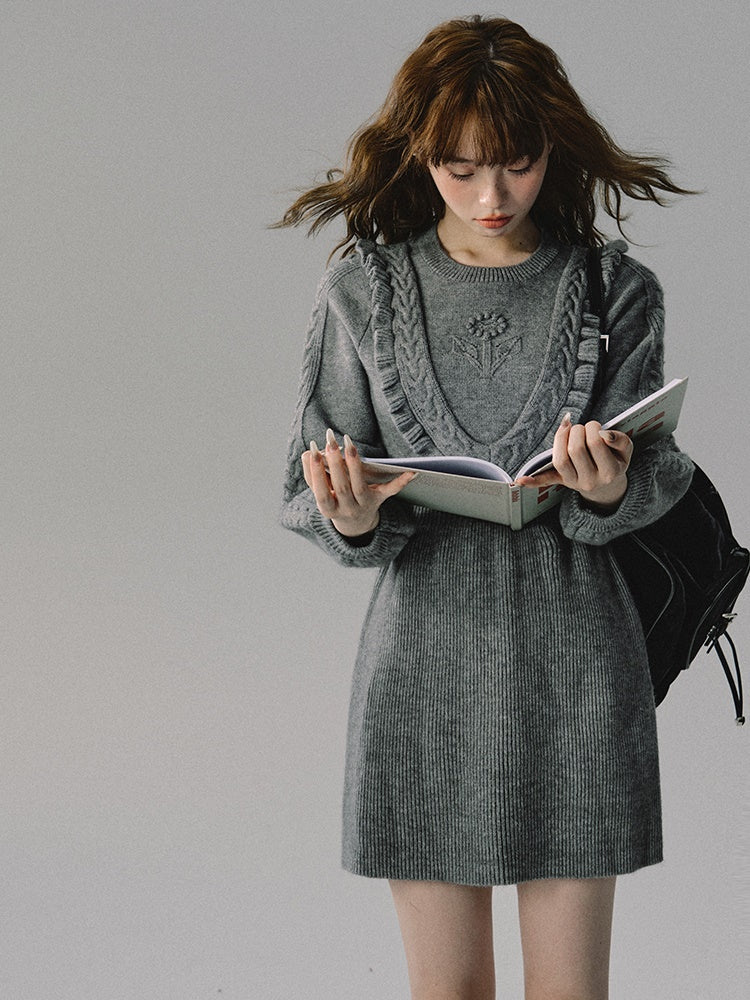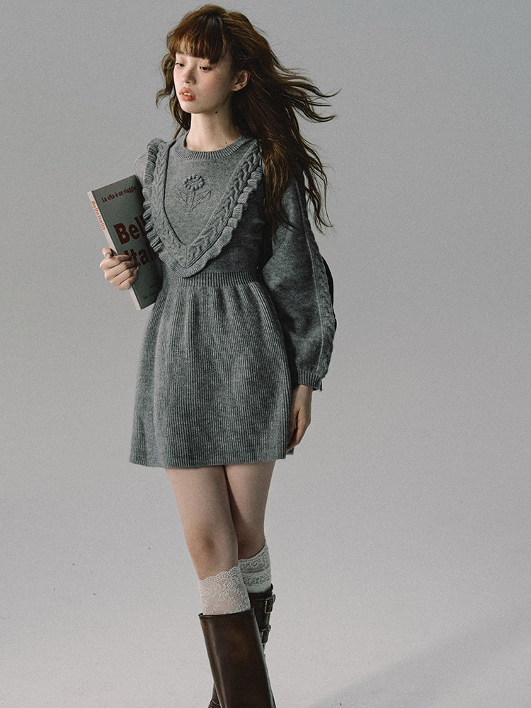 Knit Frill Retro Balloon-Sleeve One-Piece