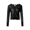 Kroche Lace Edge Patchwork Knitted Cardigan Black