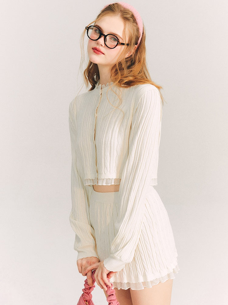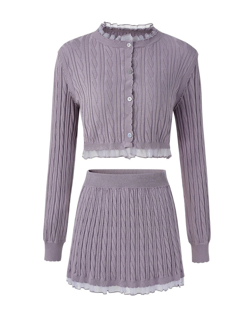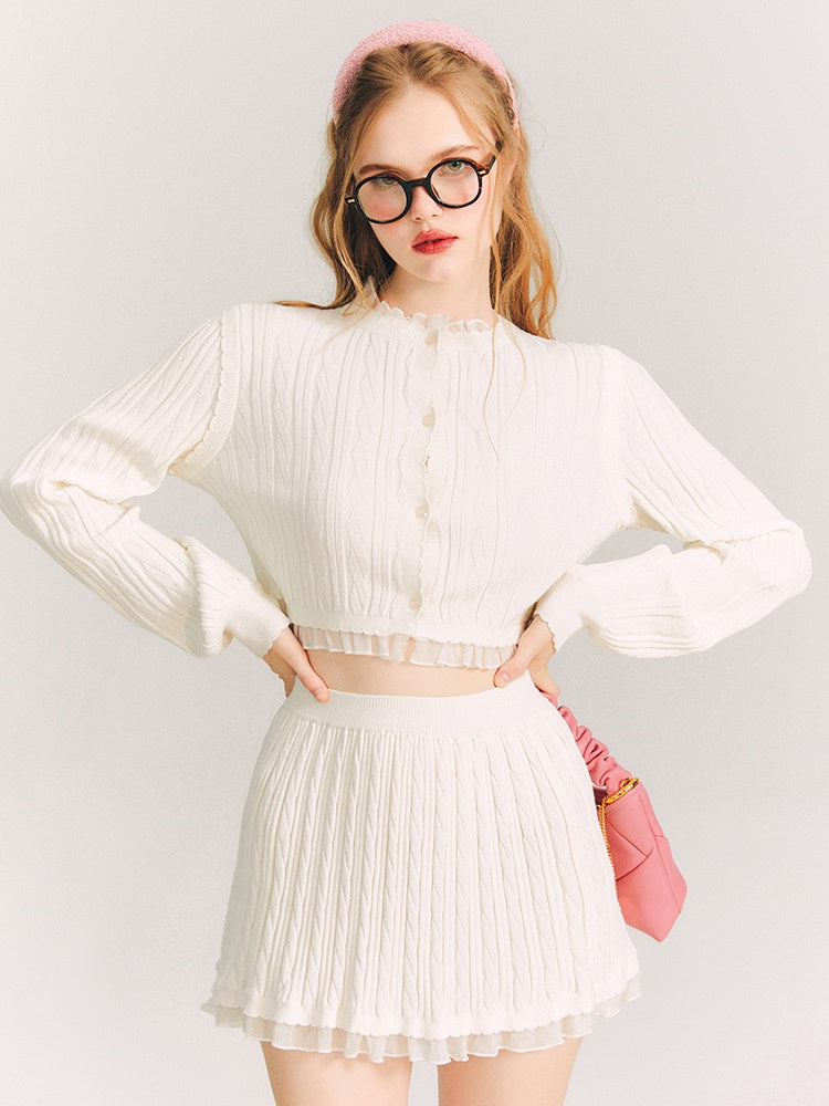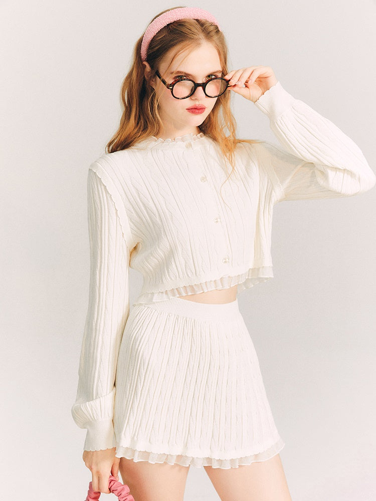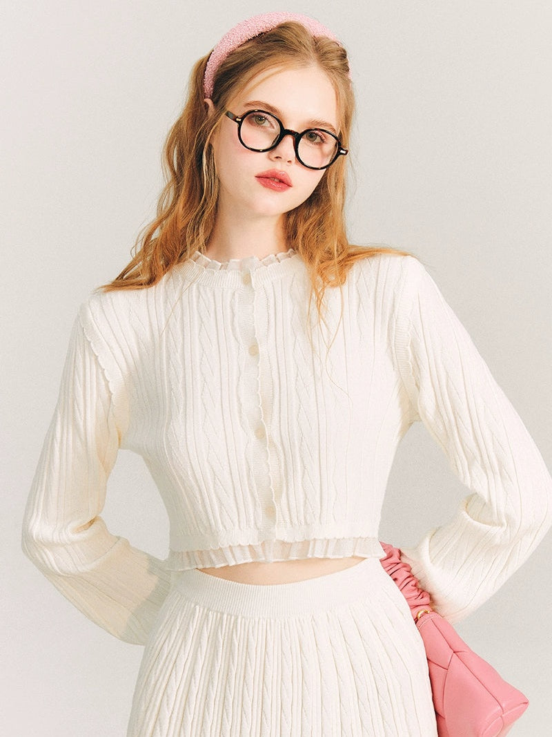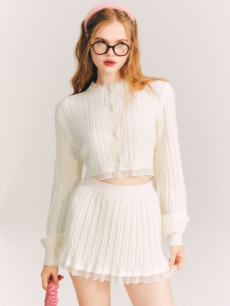 Lace Trim Cable Knit Cardigan & Skirt