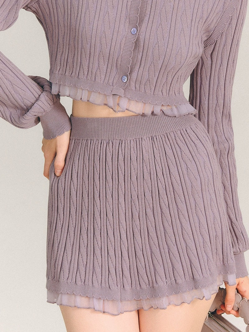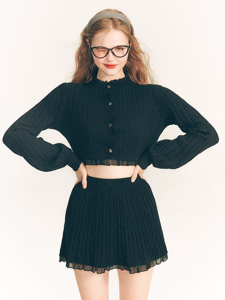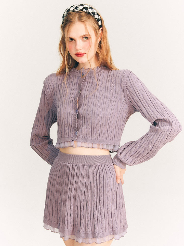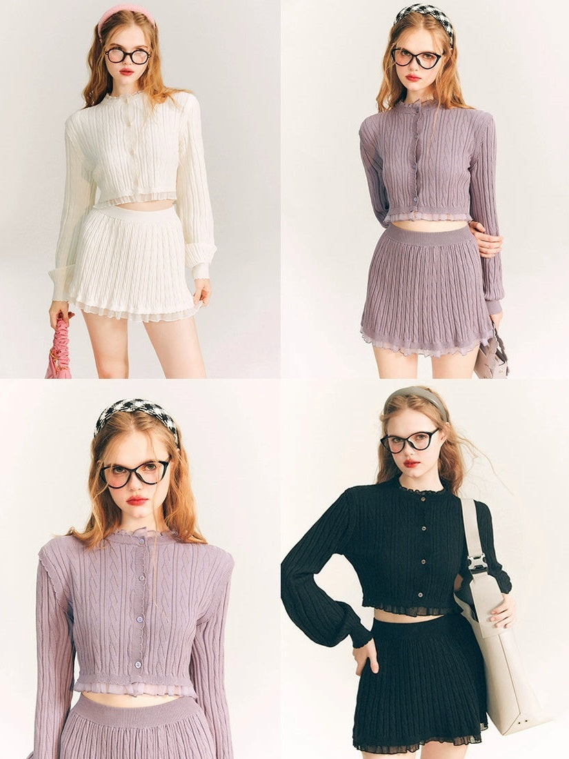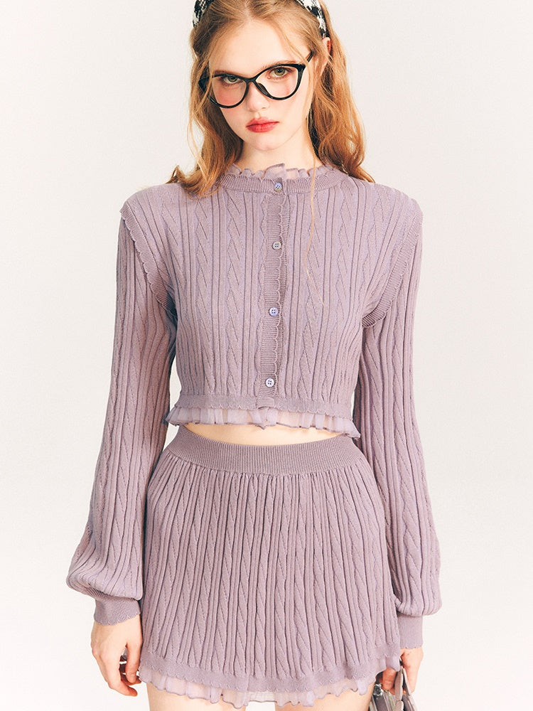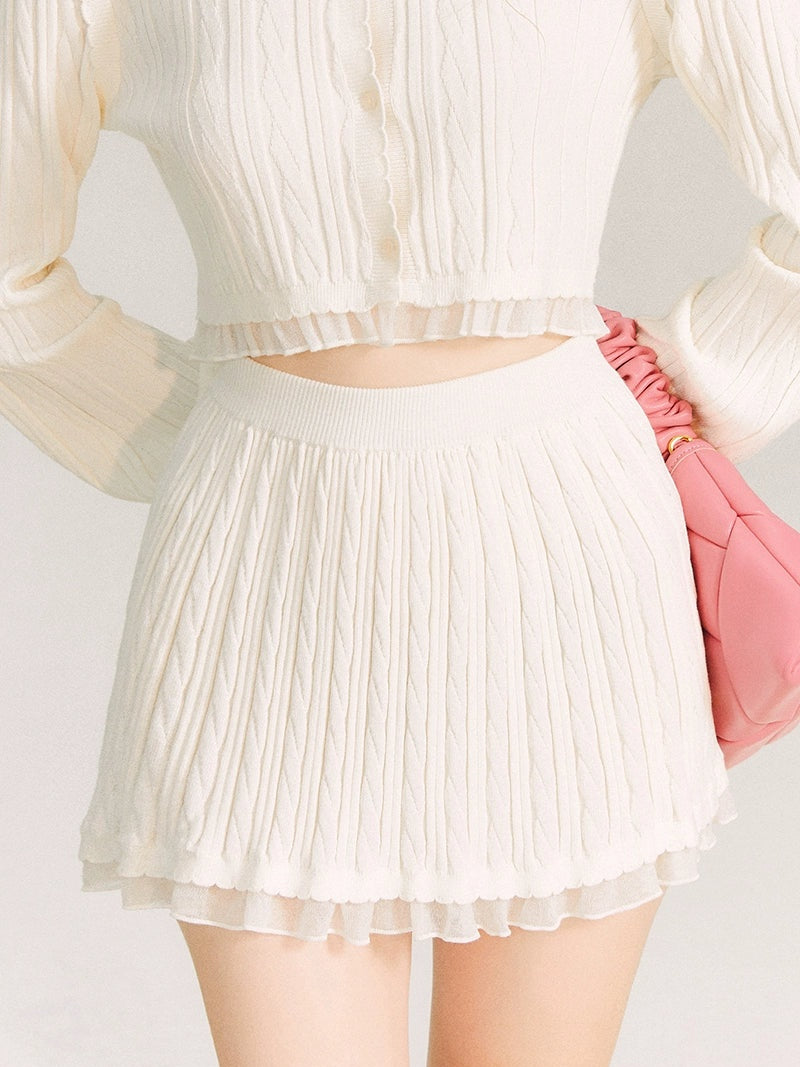 Lace Trim Cable Knit Cardigan & Skirt