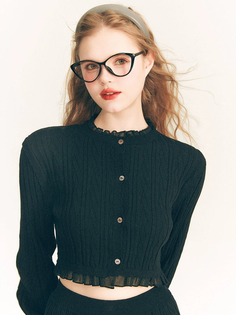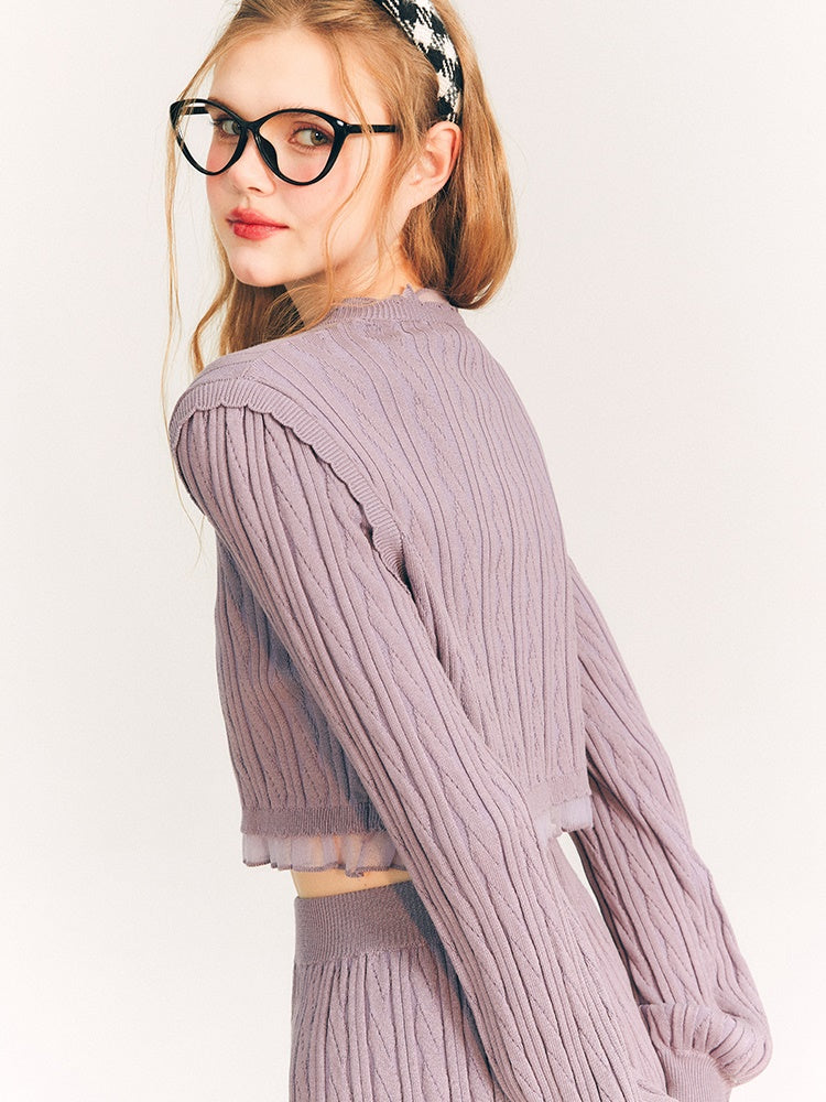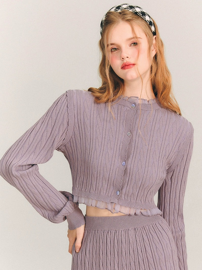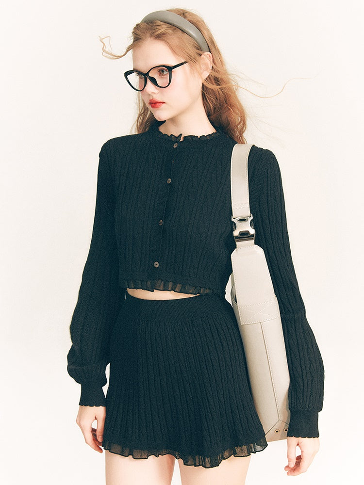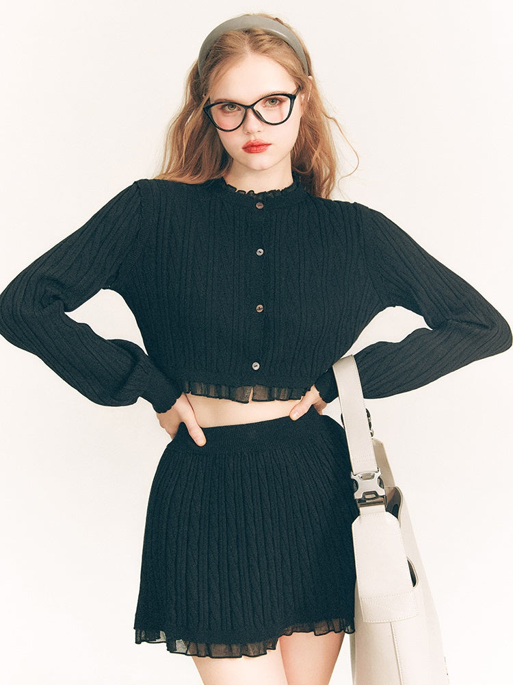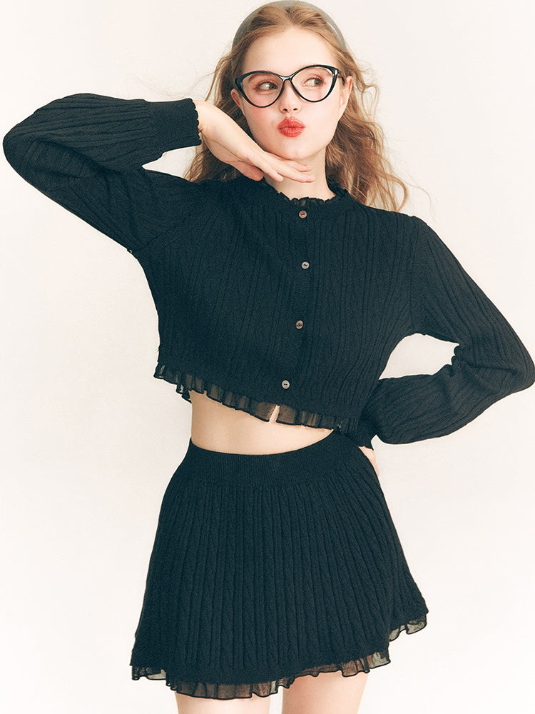 Lace Trim Cable Knit Cardigan & Skirt