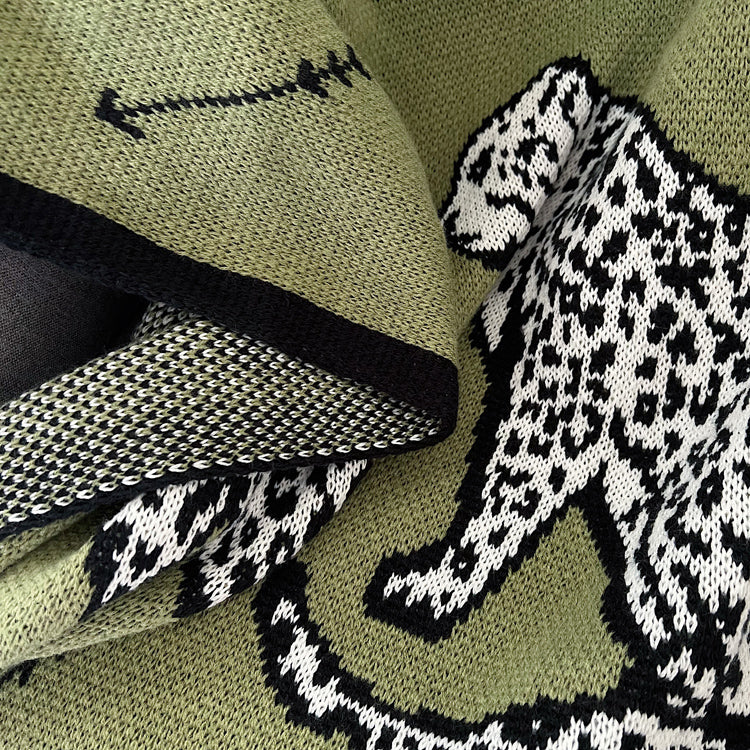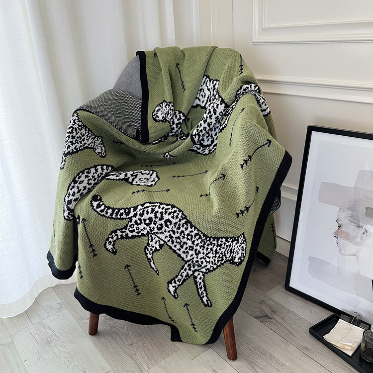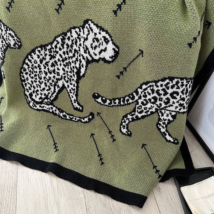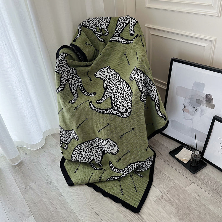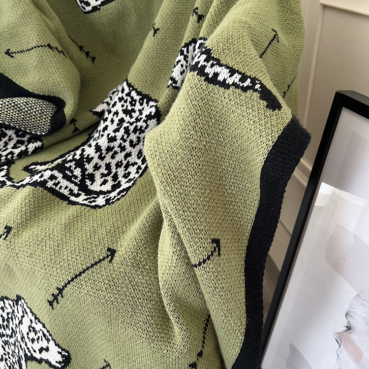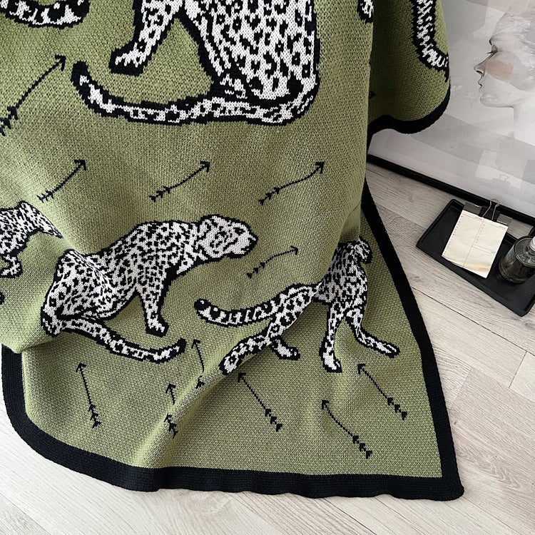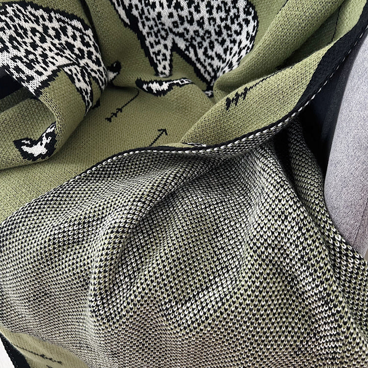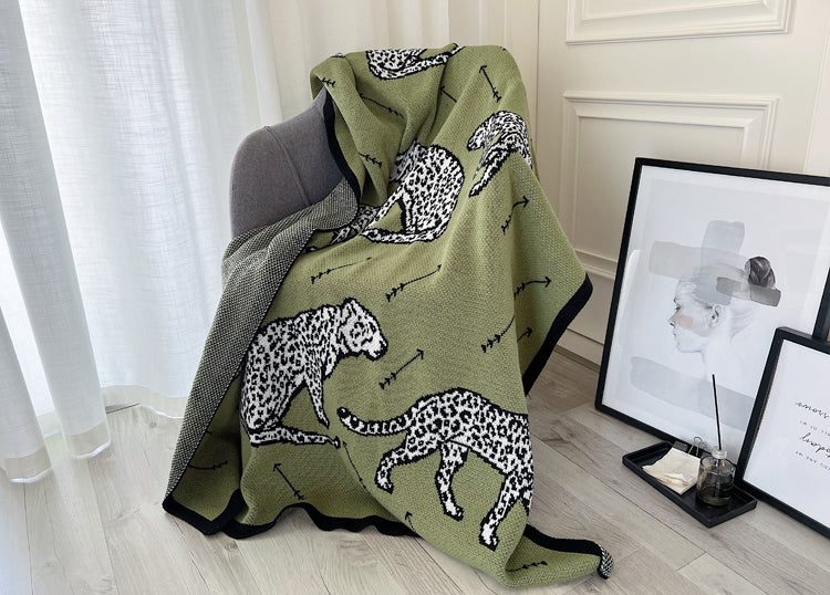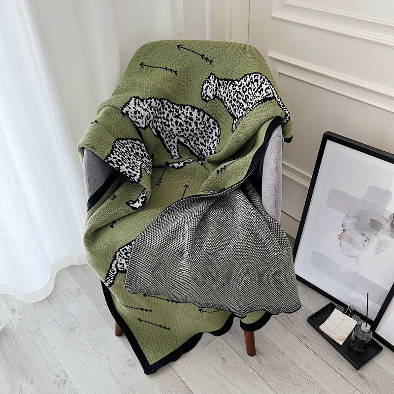 Add a touch of sophistication to your home with our Leopard Jacquard Knit Blanket. Made from premium acrylic fibers, this luxurious blanket features a distinct leopard pattern woven into its fabric.