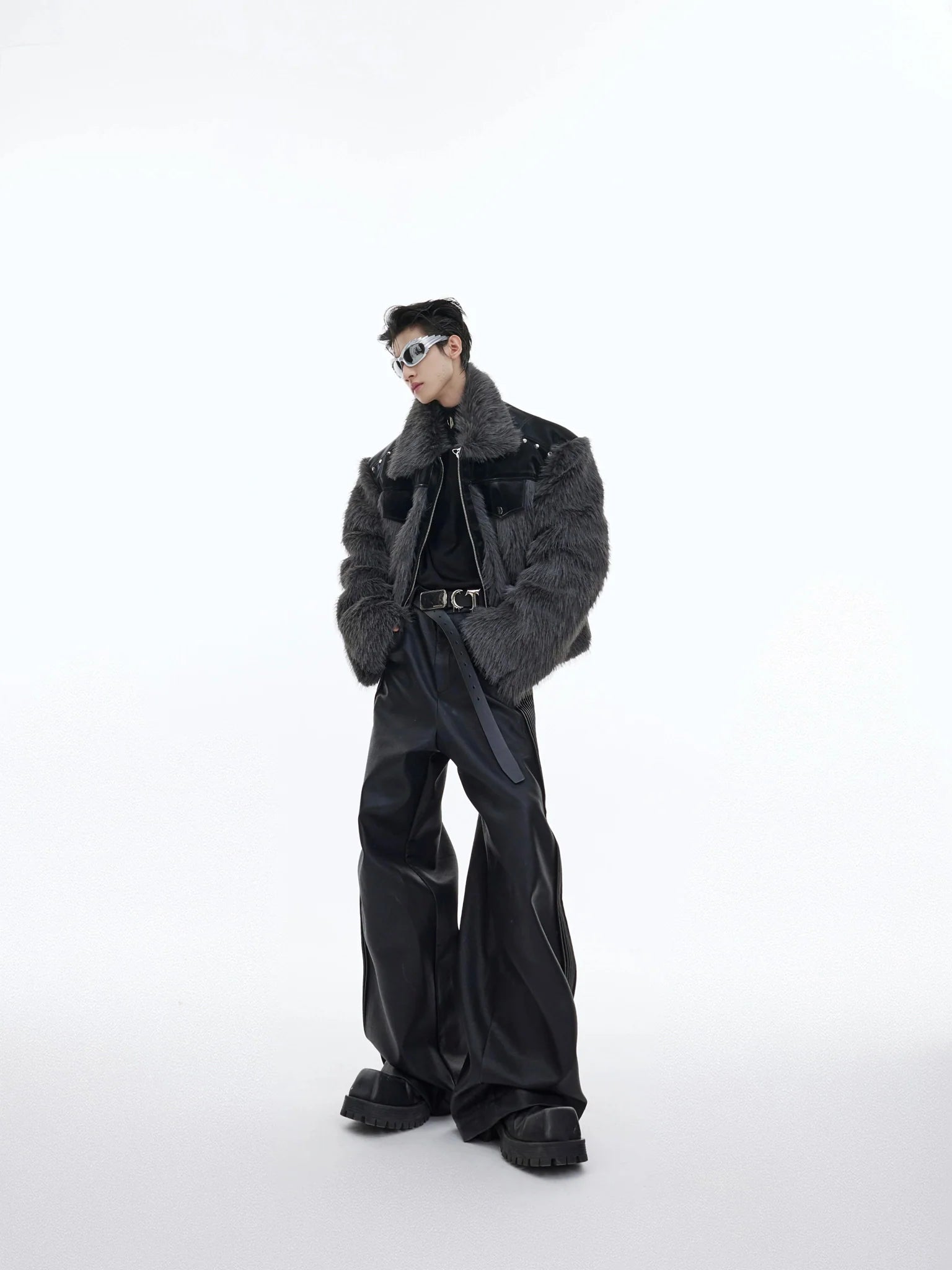 Luxe Faux Leather & Faux Fur Jacket | Chic Short Coat with Metal Accents