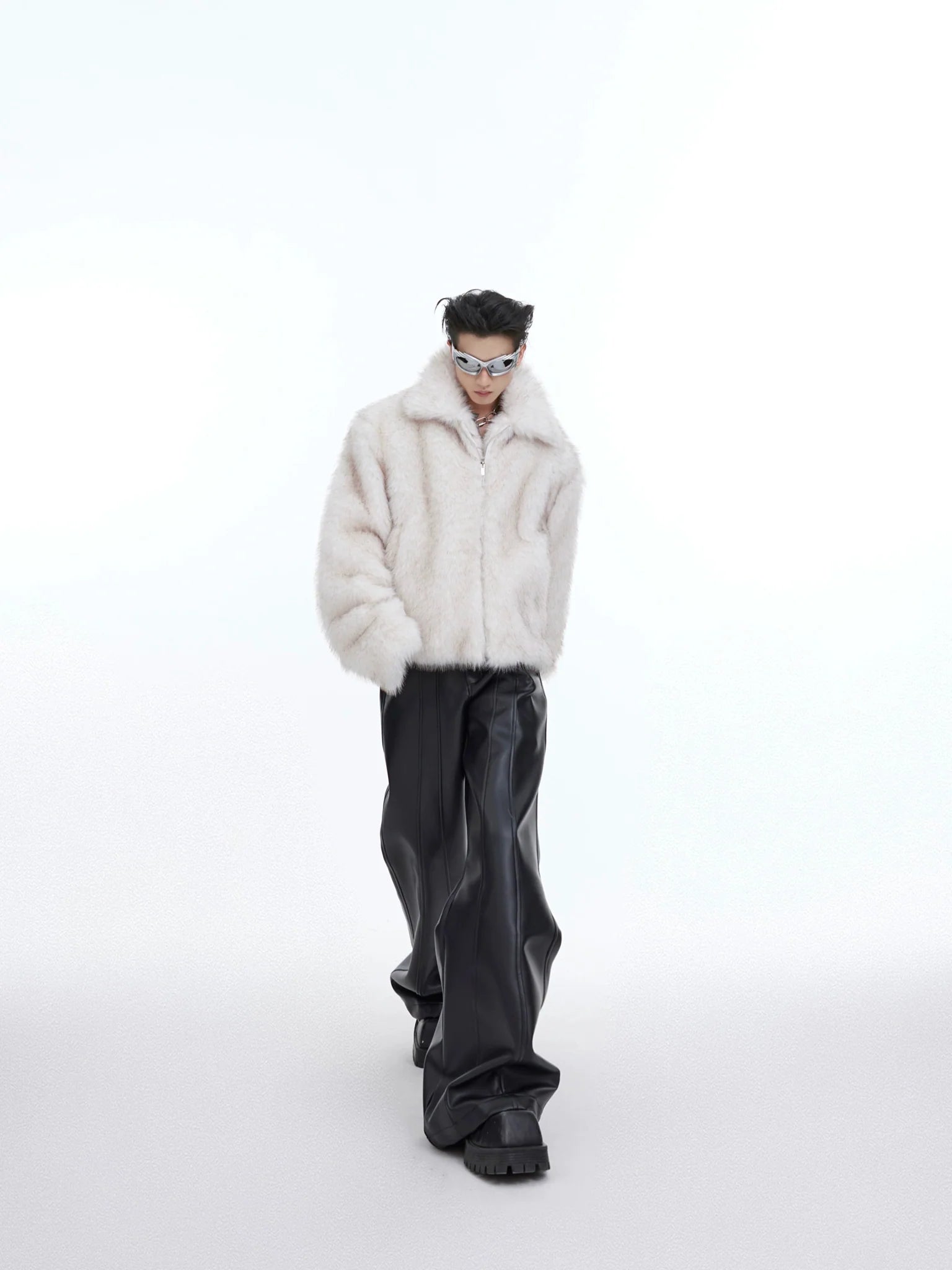 Luxurious Faux Fur Jacket with Deconstructed Collar | Avant-Garde Short Coat
